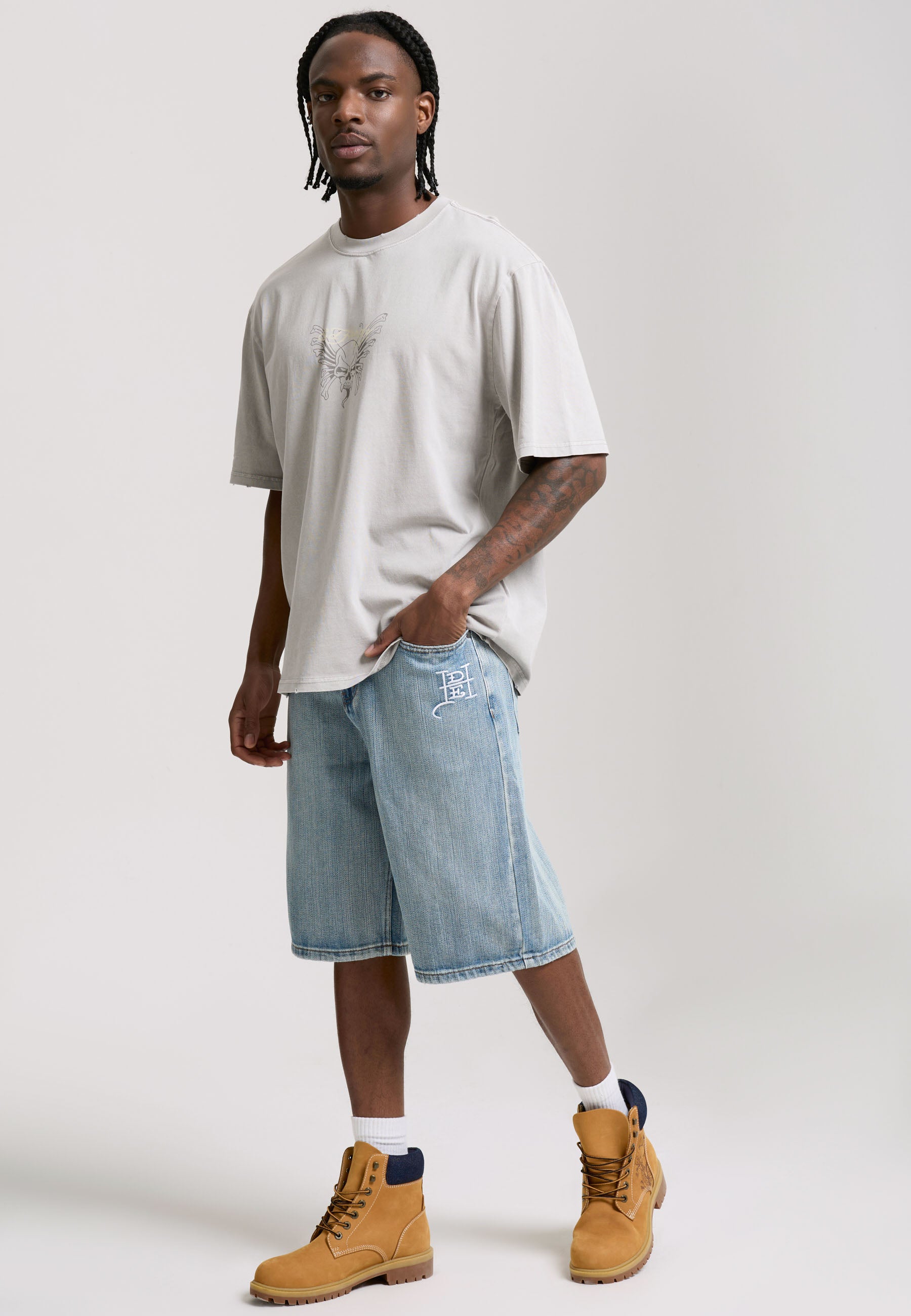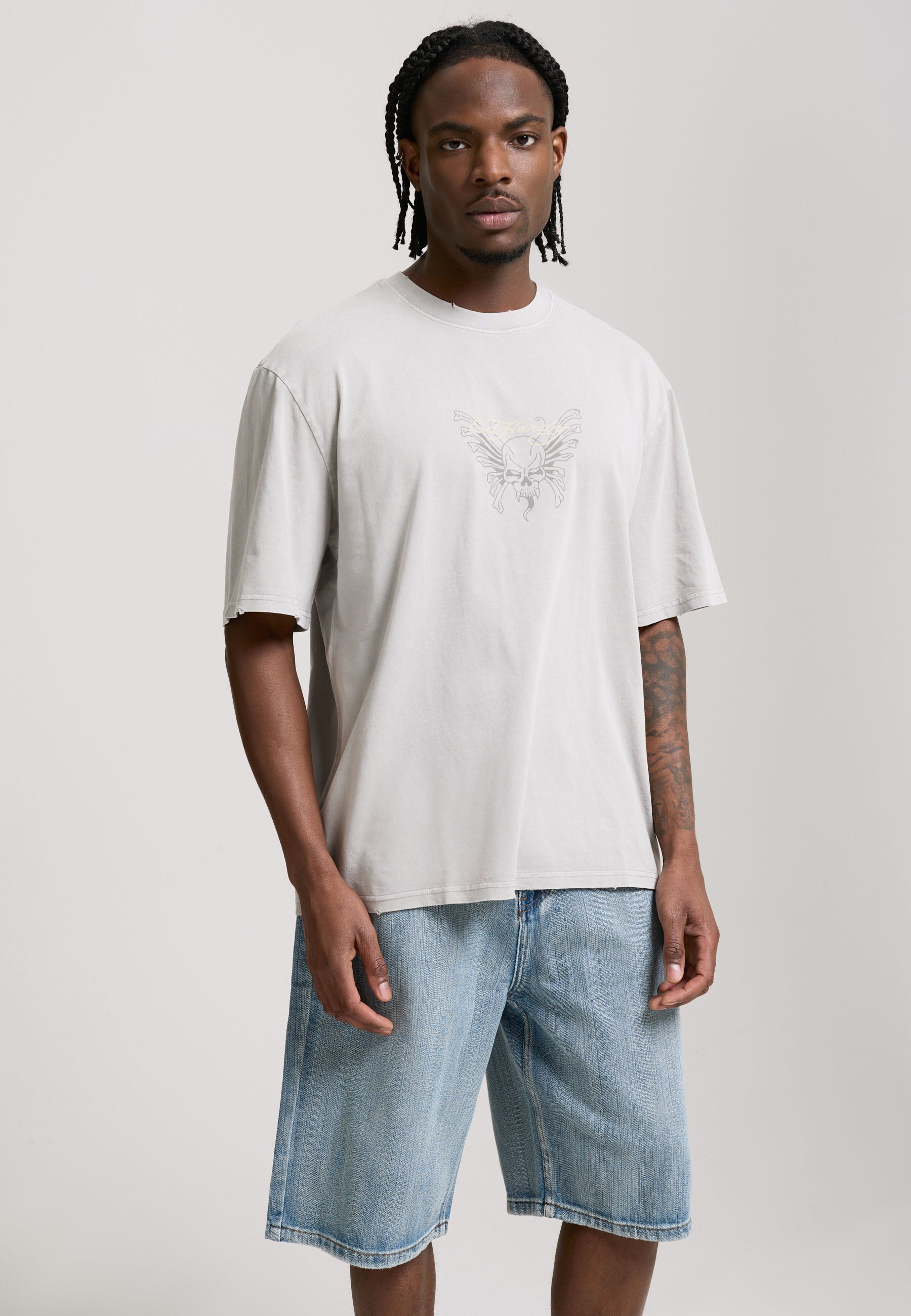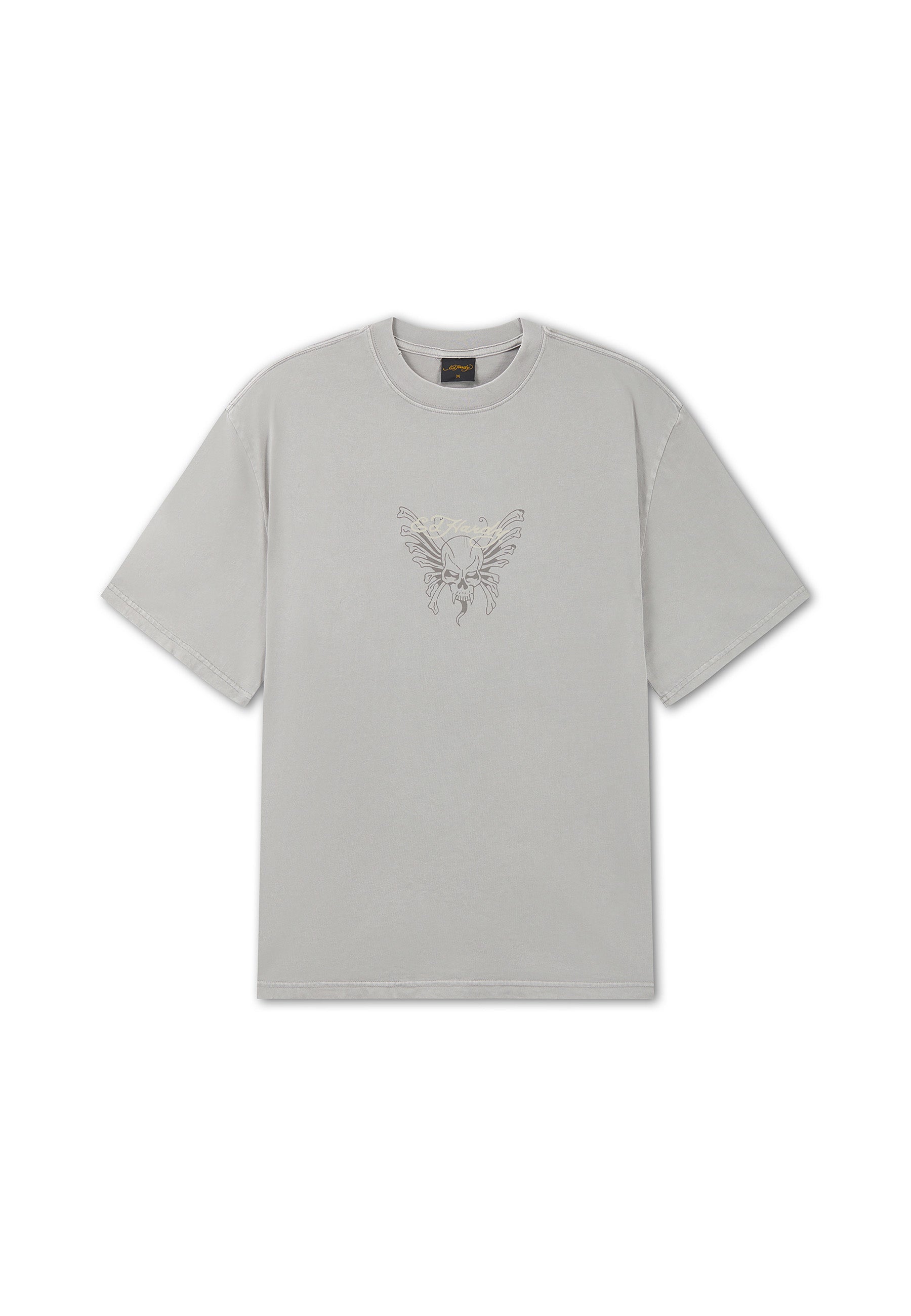 100% COTTON 180GSM ACID WASH SKULL PRINTED GRAPHIC LIGHT DISTRESSING DETAIL CREW NECK