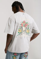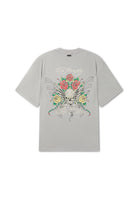 Mens Skull Rose Graphic Relaxed T-Shirt - Grey