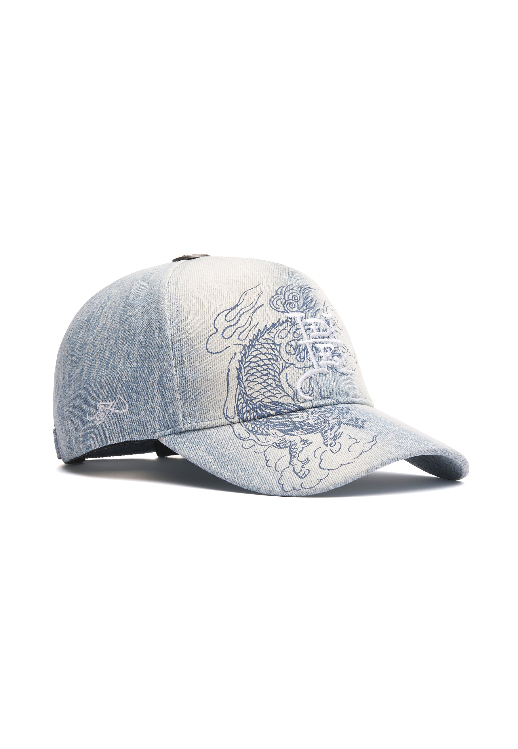 Unisex Crawling Dragon Washed Denim 5 Panel Cap - Bleach
