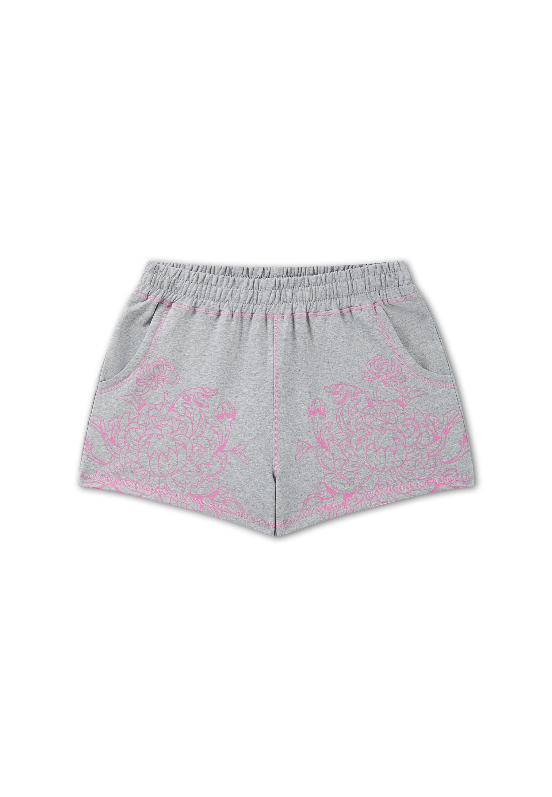 Womens Applique Tattoo Sweat Fitted Shorts - Grey Marl