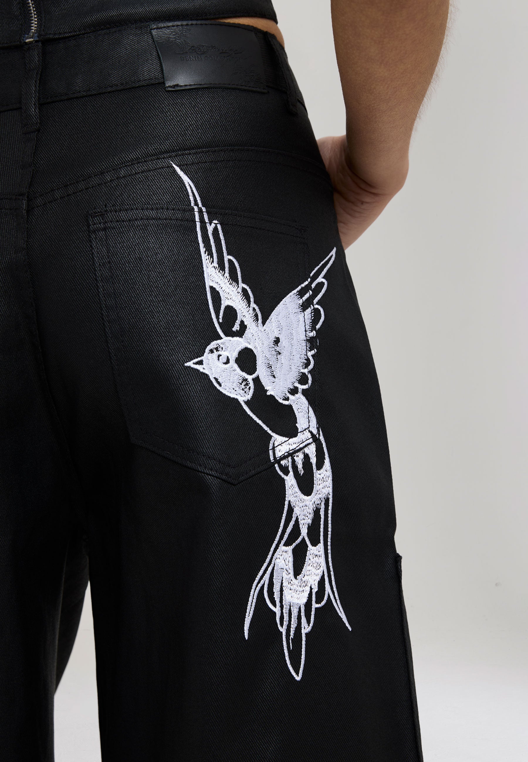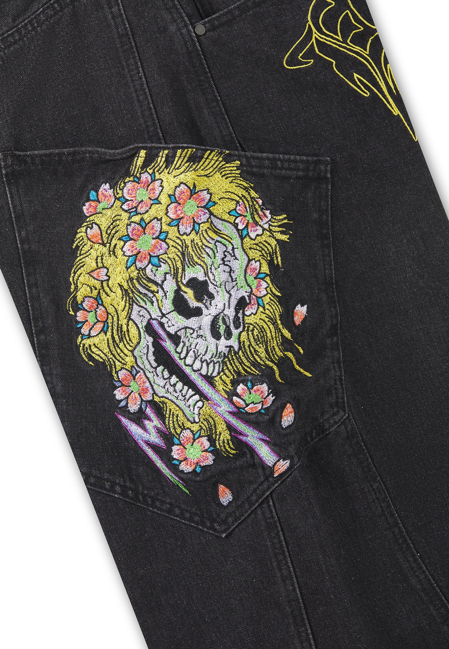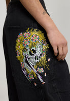 Womens Gothic Skull Relaxed Balloon Jeans - Black