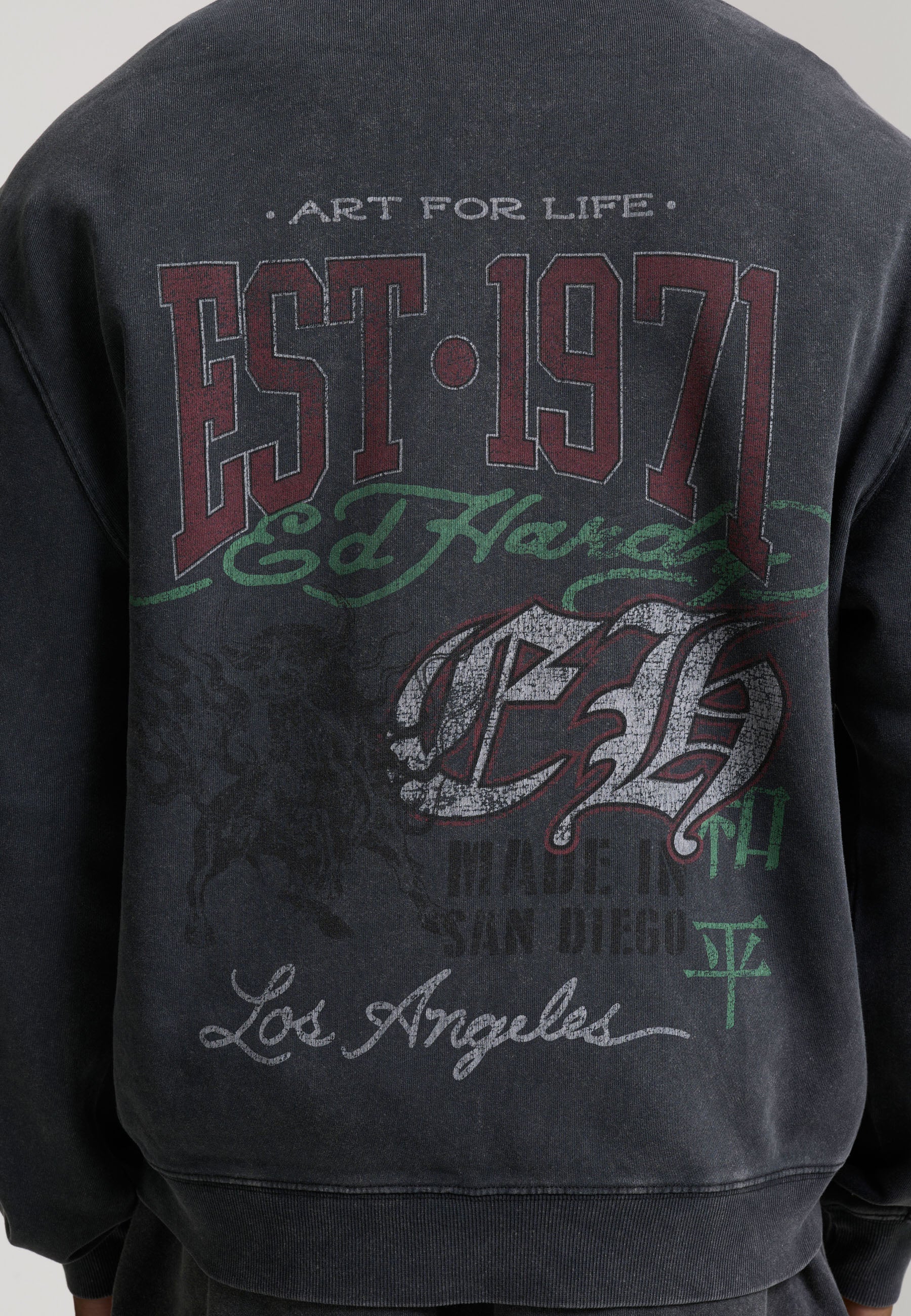 Mens La Tiger Vintage Diamante Crew Neck Sweatshirt - Black