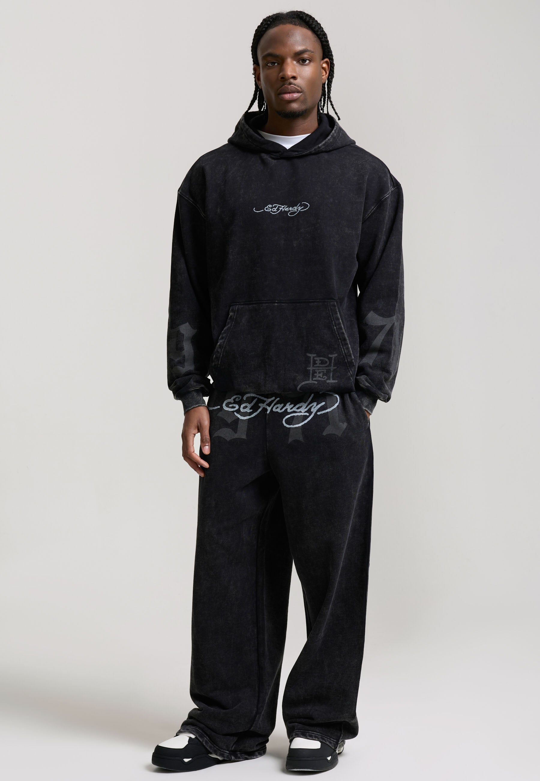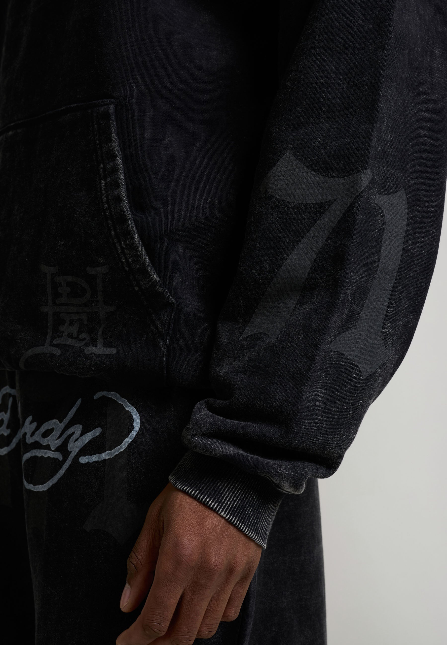 Mens Ed Hardy Gothic Cross Hoodie - Indigo