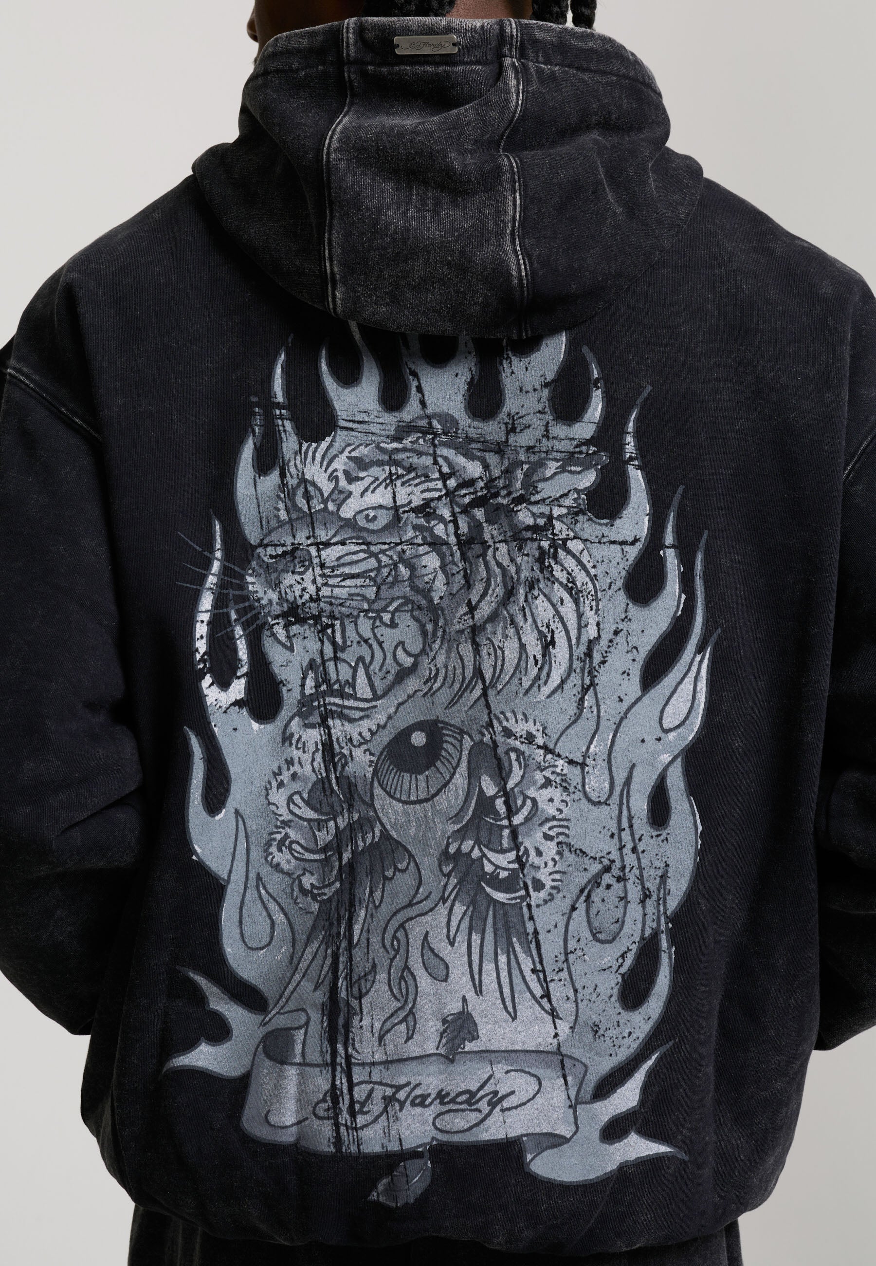 Mens Flaming Tiger Relaxed Hoodie - Black