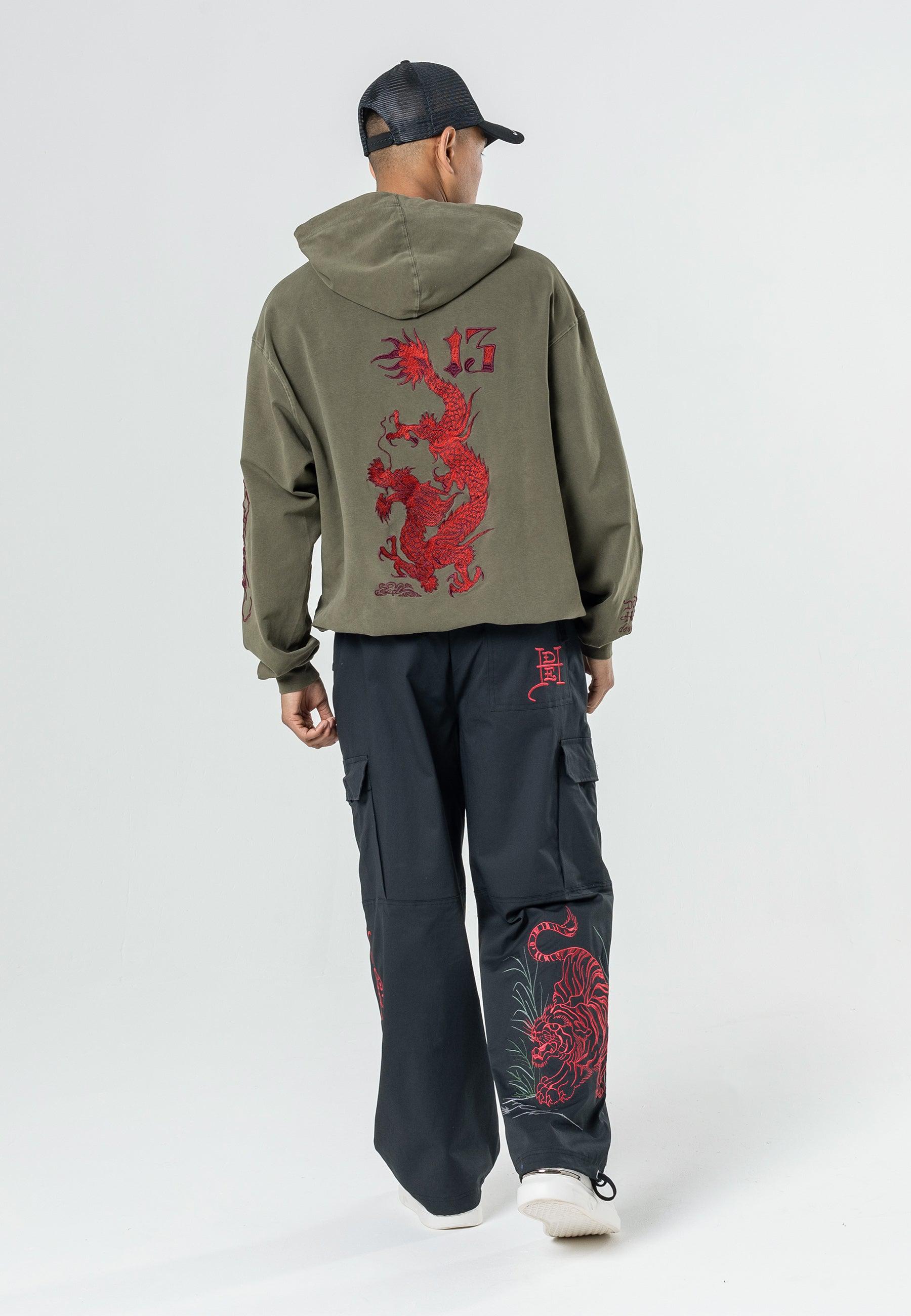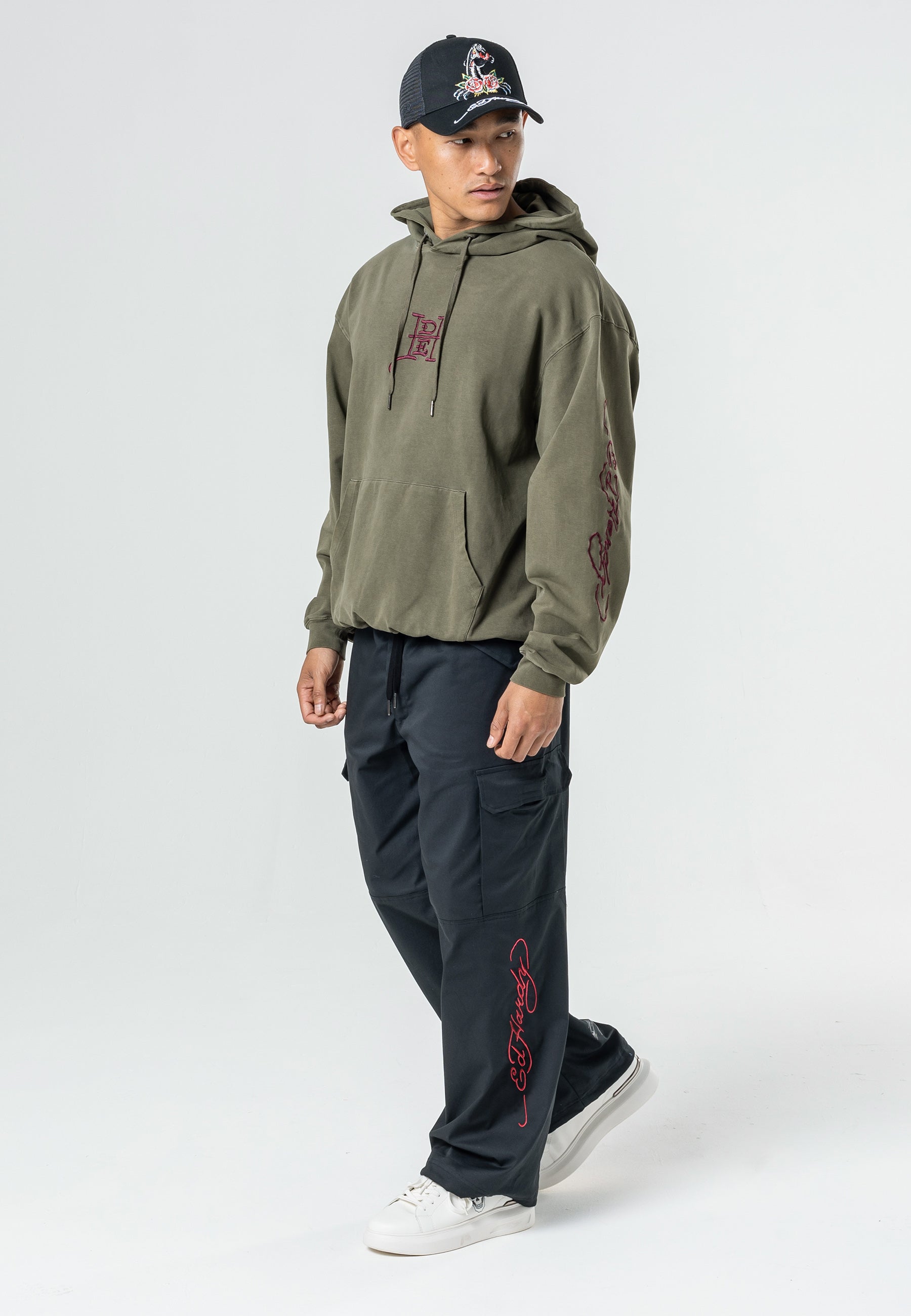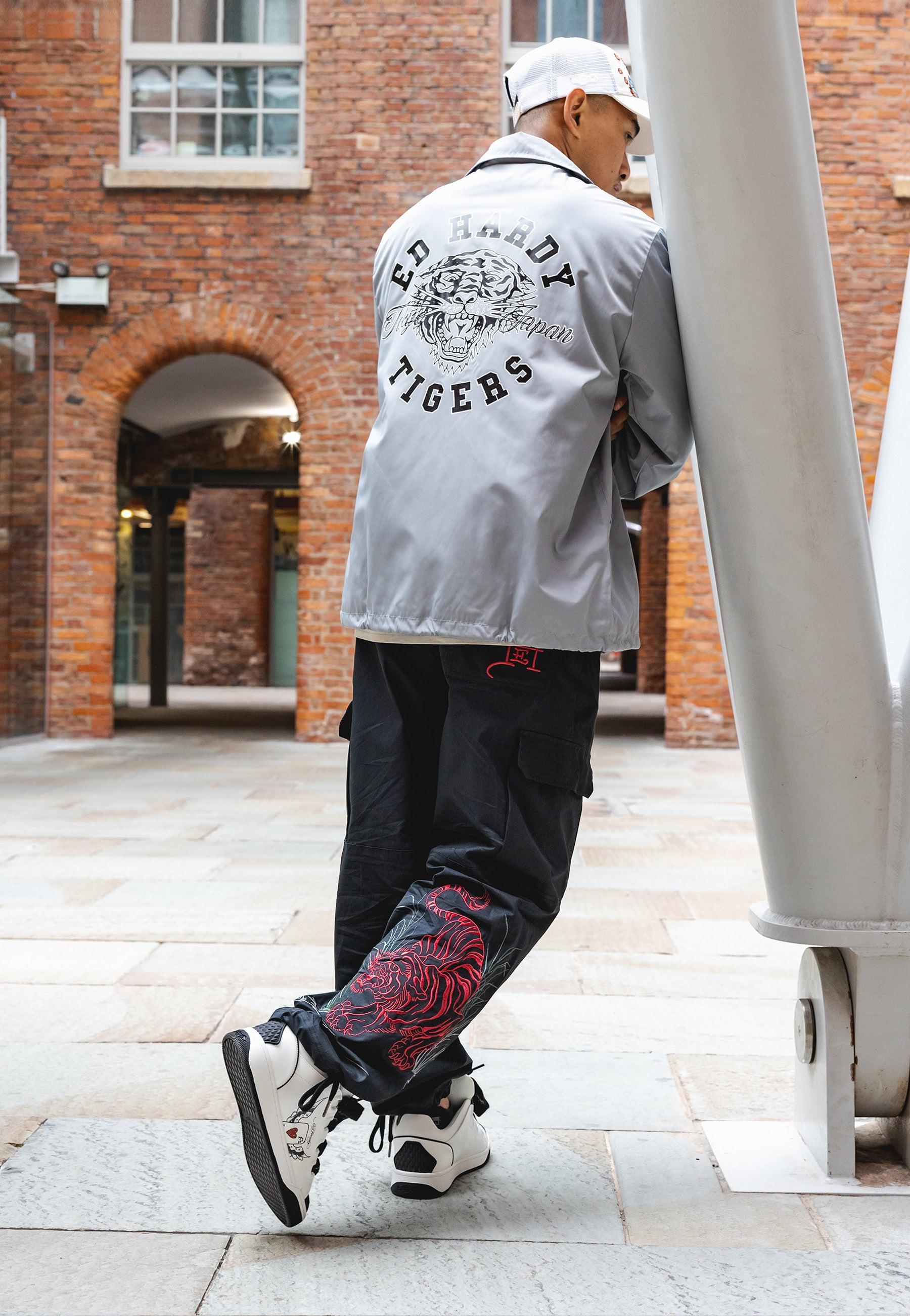 Disse Jungle Tiger Cargo Pant-Washed Black har det beryktede Eds-arkivet med høyoppløselig brodert Tiger på nedre ryggbena, samt den broderte Ed Hardy-logoen på glidelåslommen bak. Disse komfortable lastene er perfekte for chill, dag og natt.