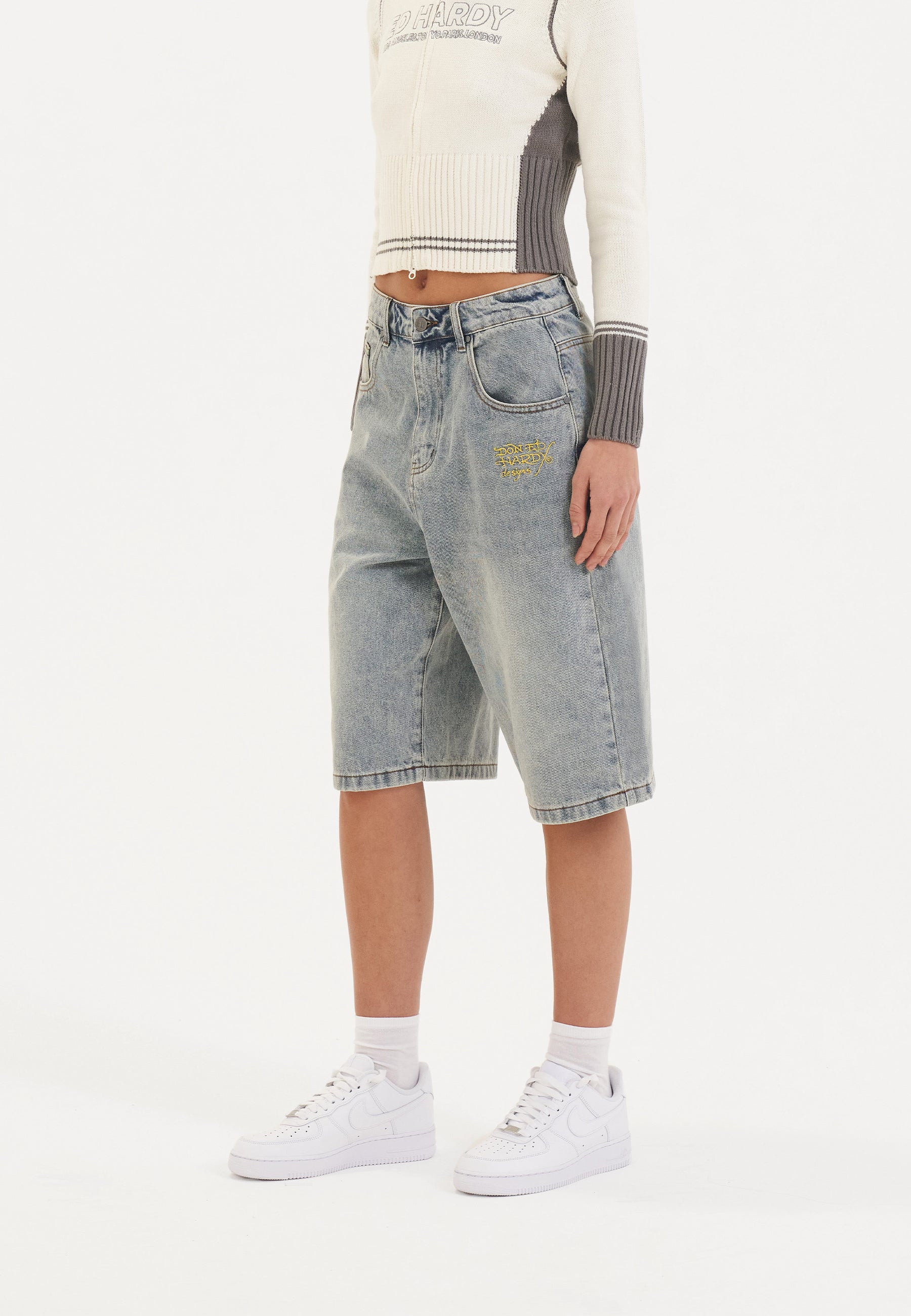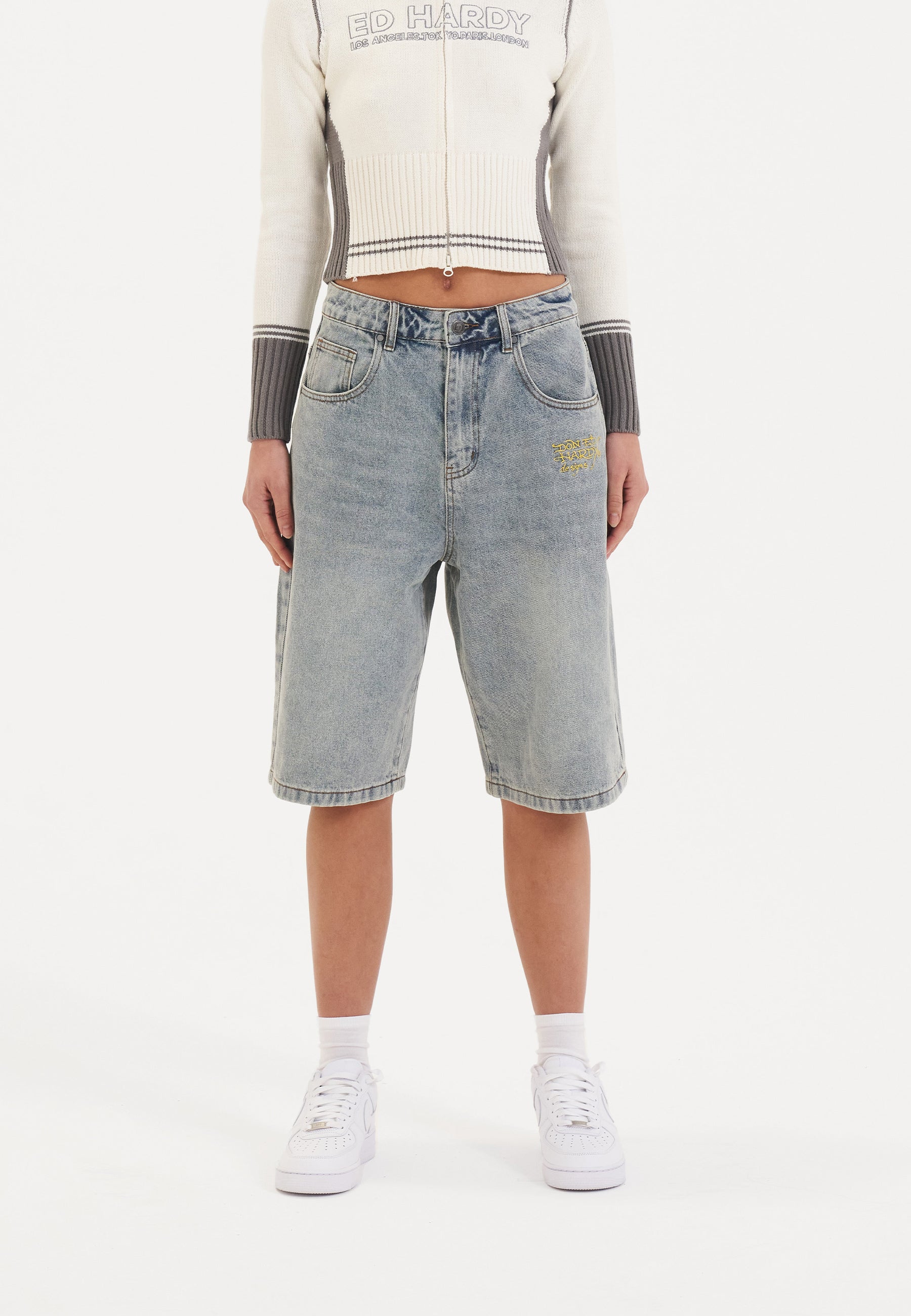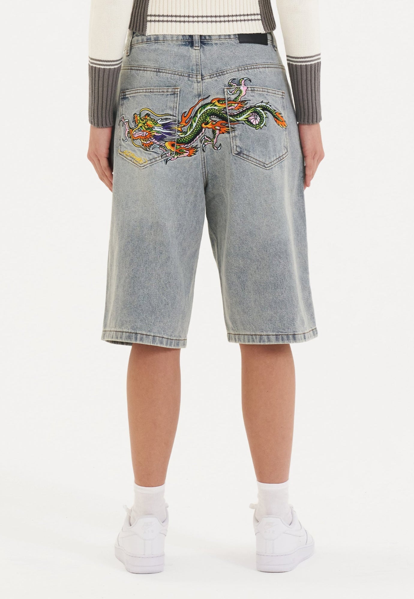 Dame Dragon Crawl Relaxed Denim Jorts Shorts - Blå