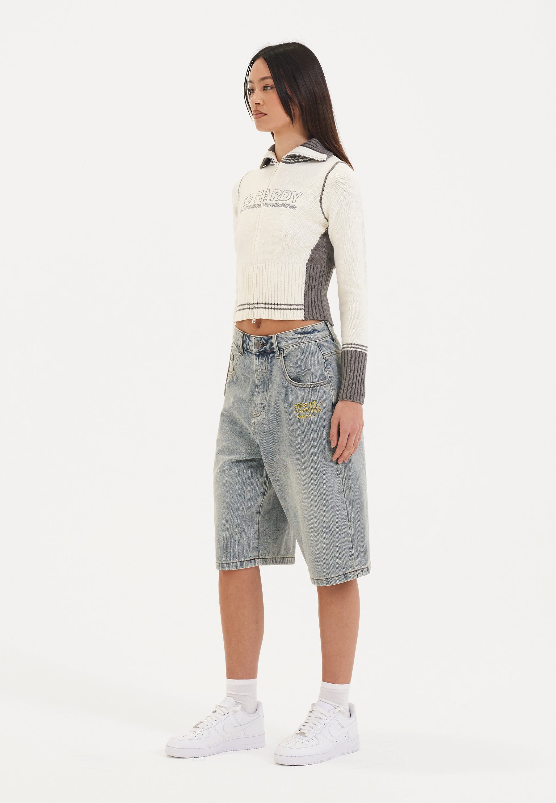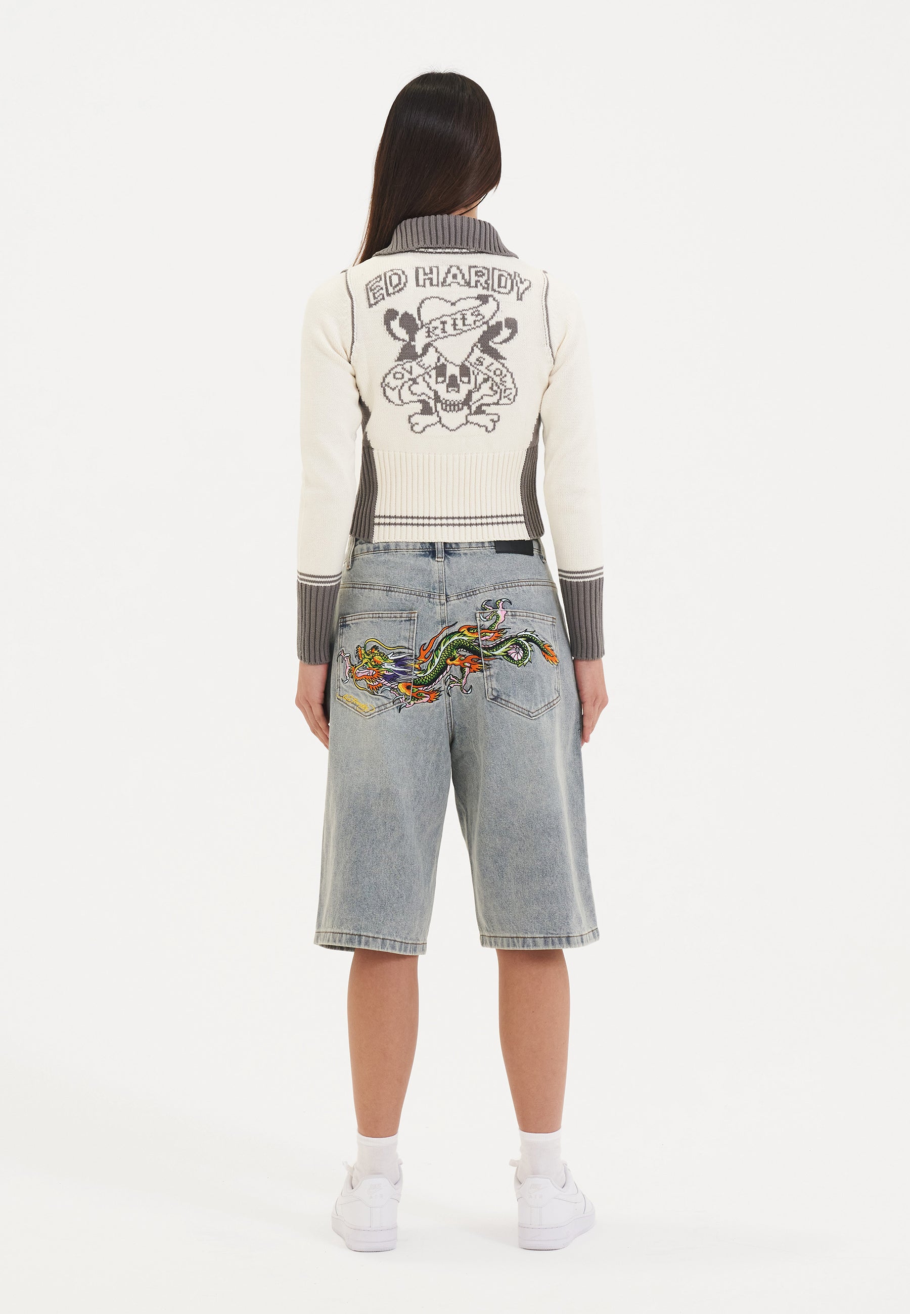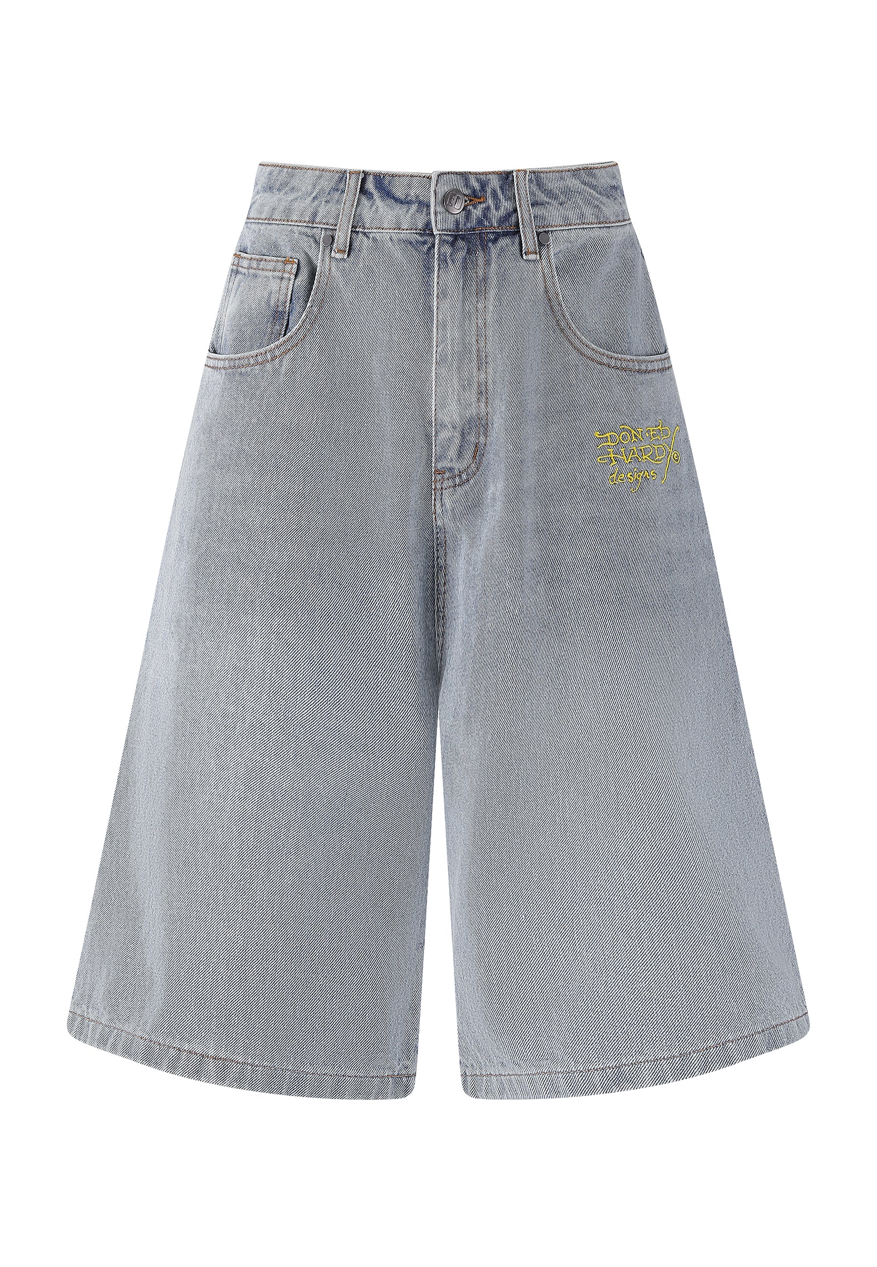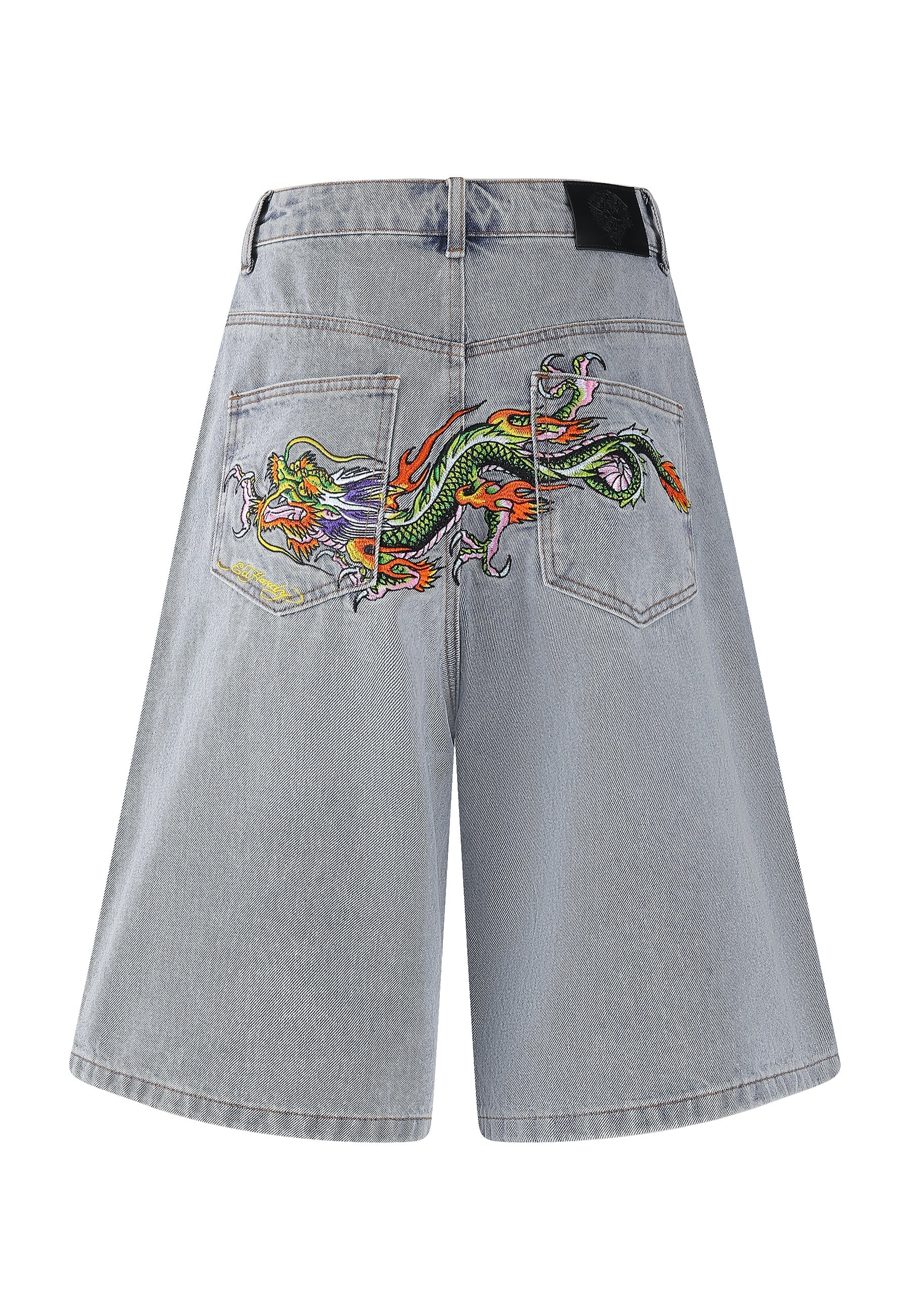 Dame Dragon Crawl Relaxed Denim Jorts Shorts - Blå