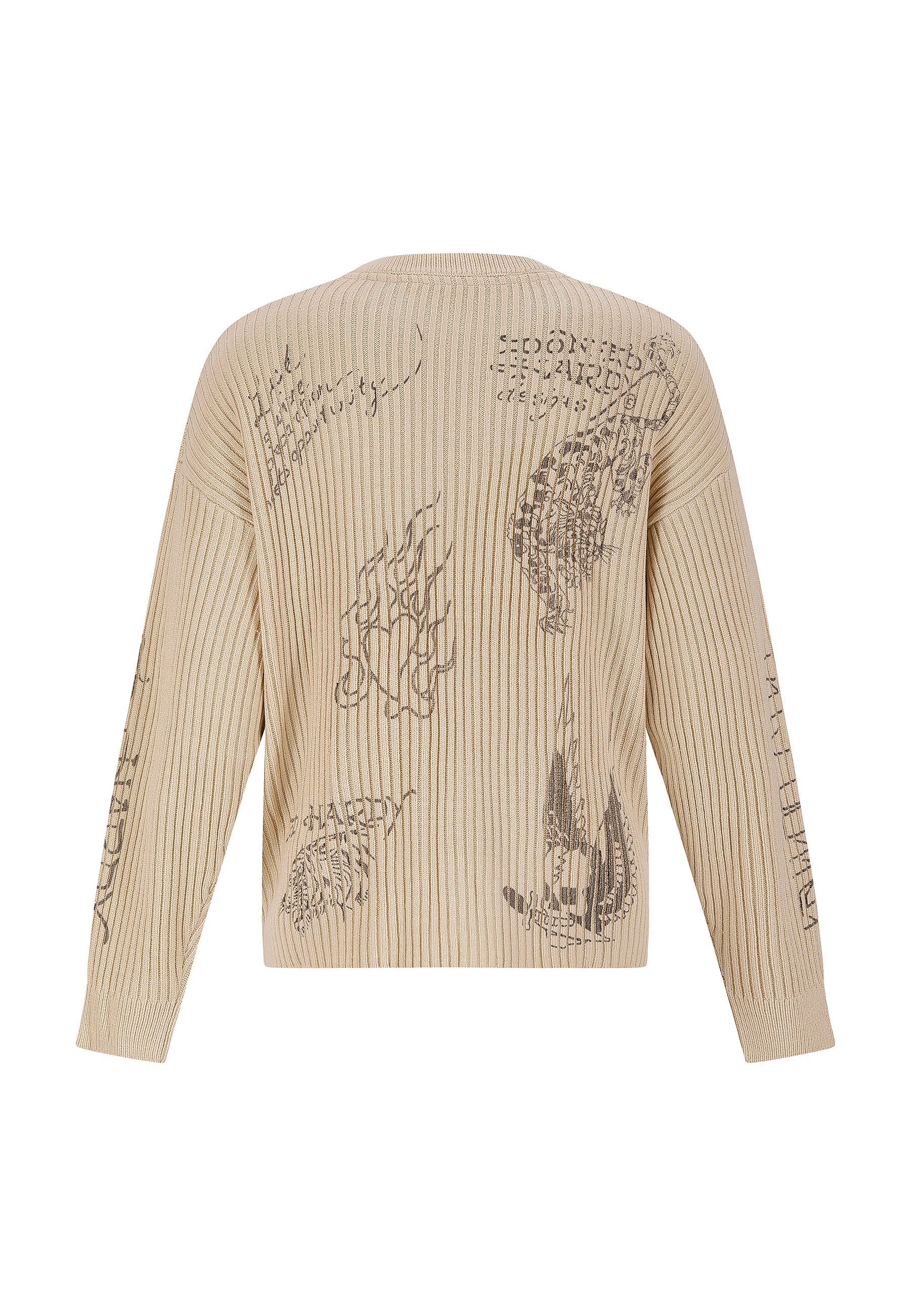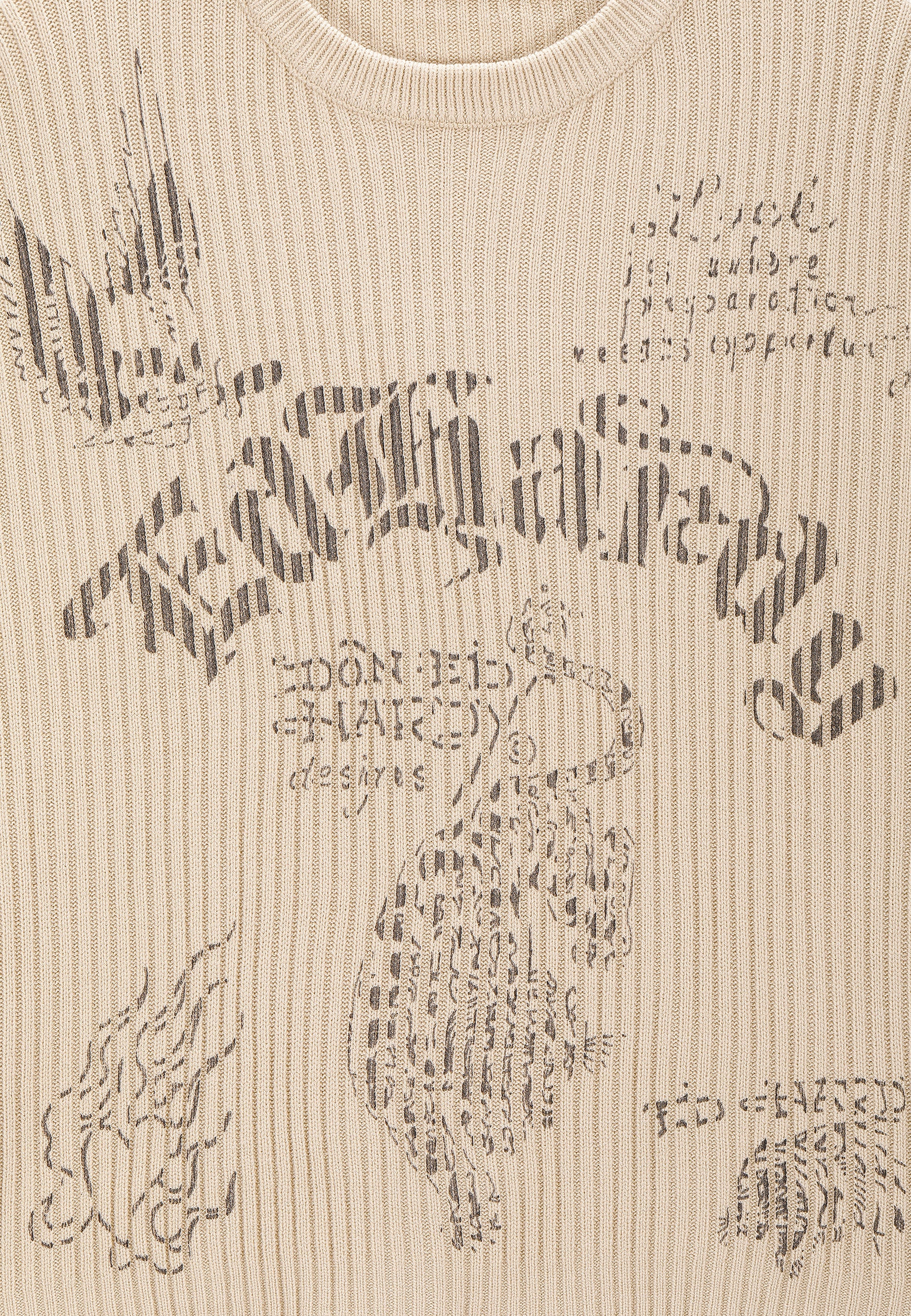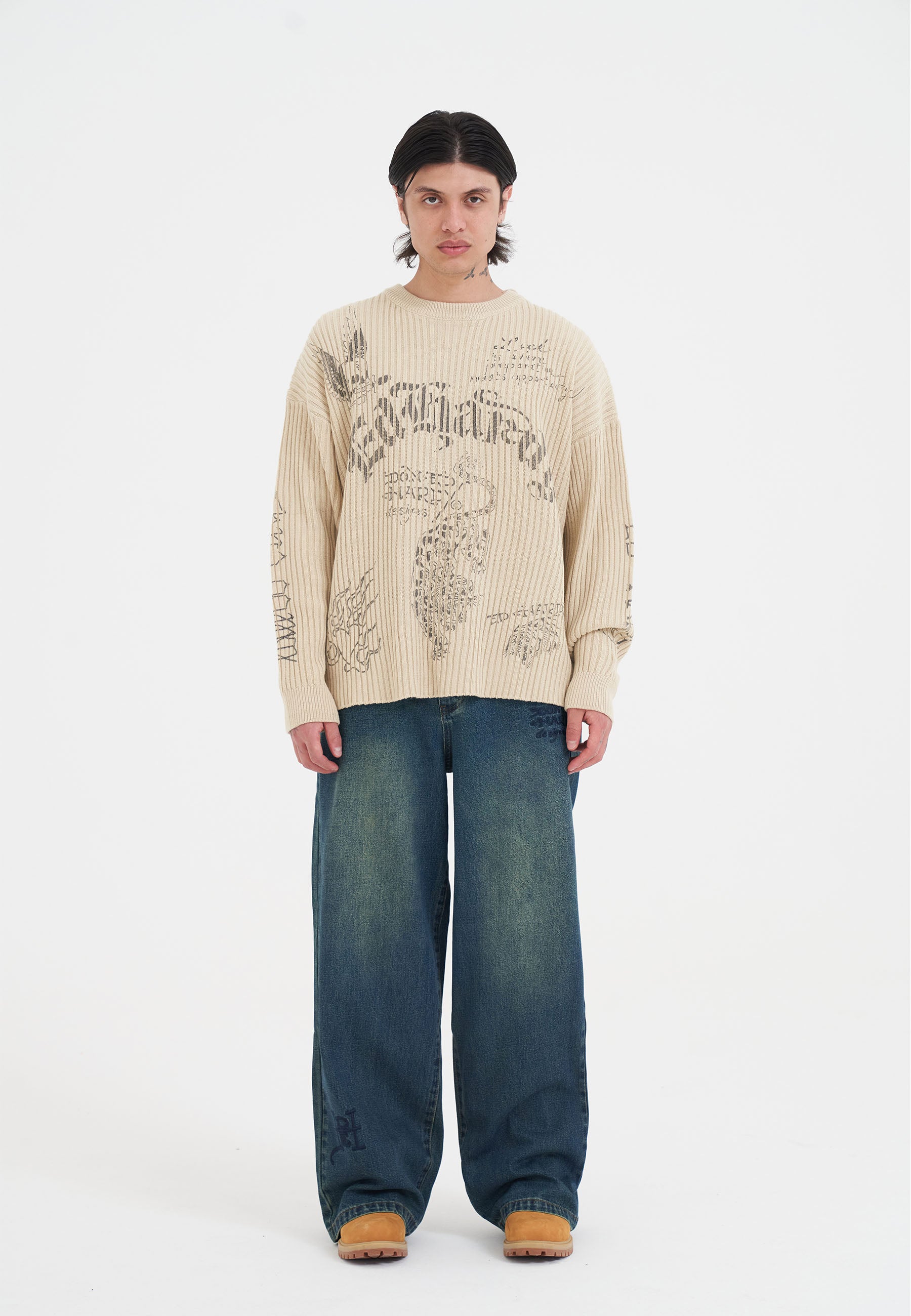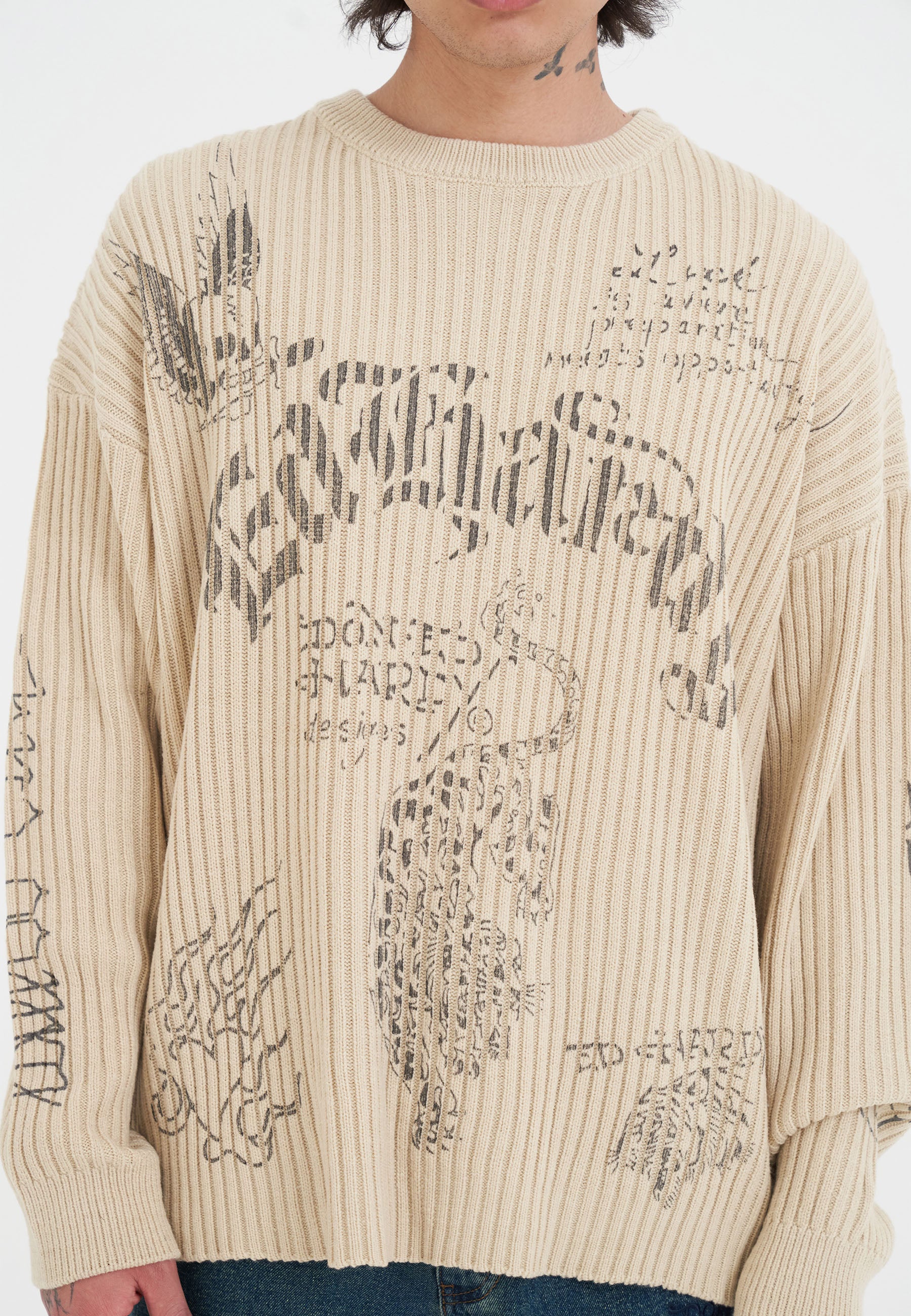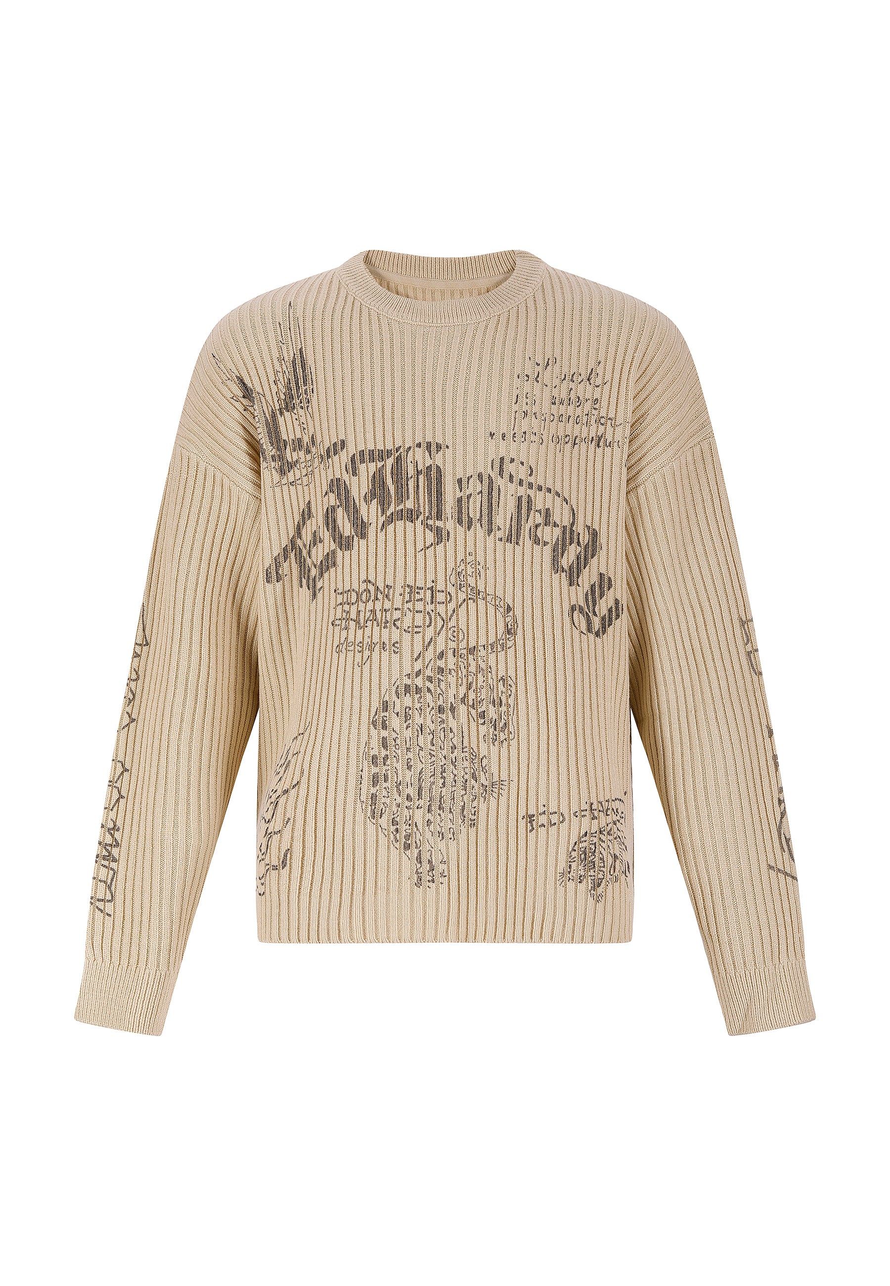 MENS GOTHIC RIBBED KNIT CREW JUMPER in Beige
