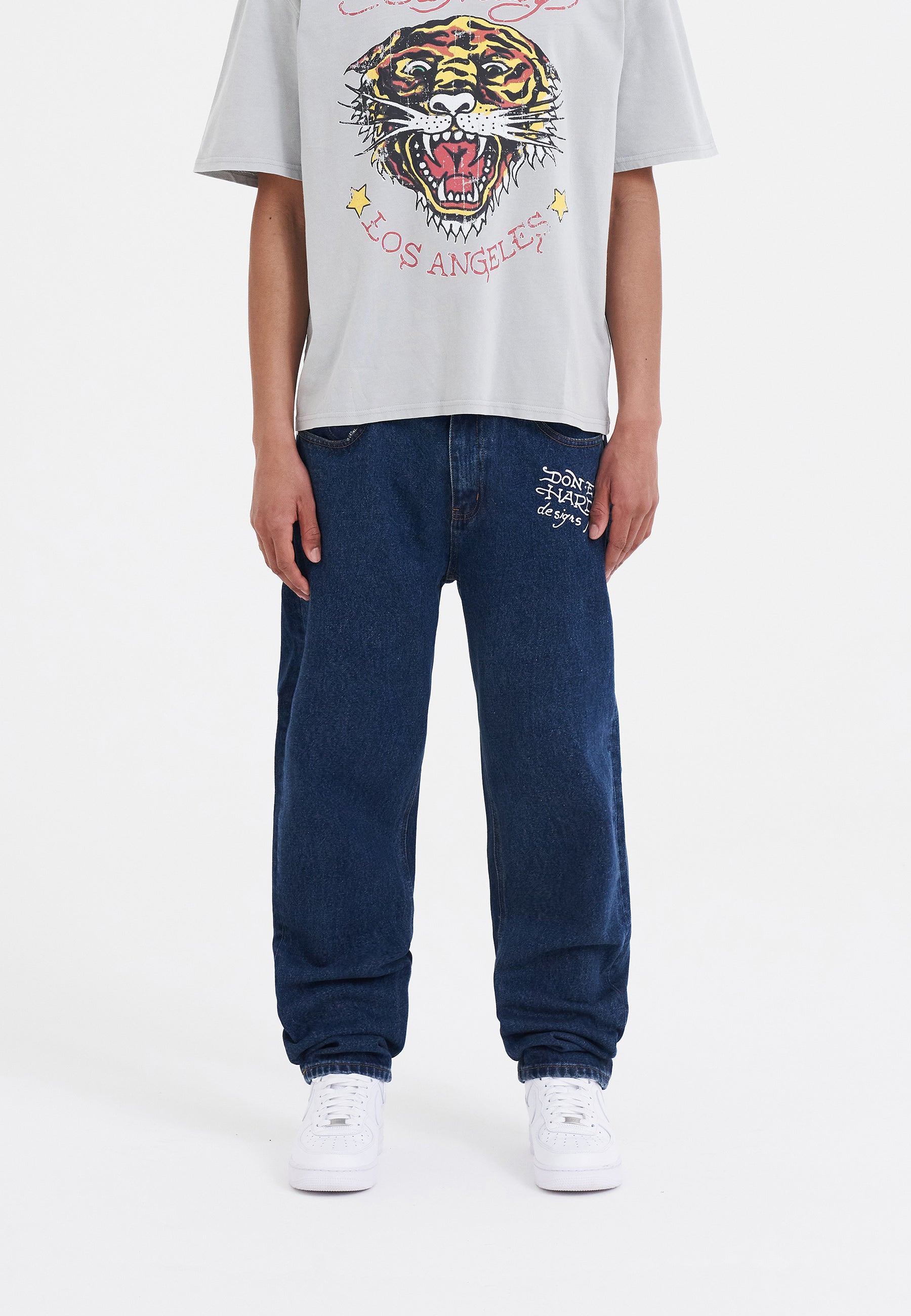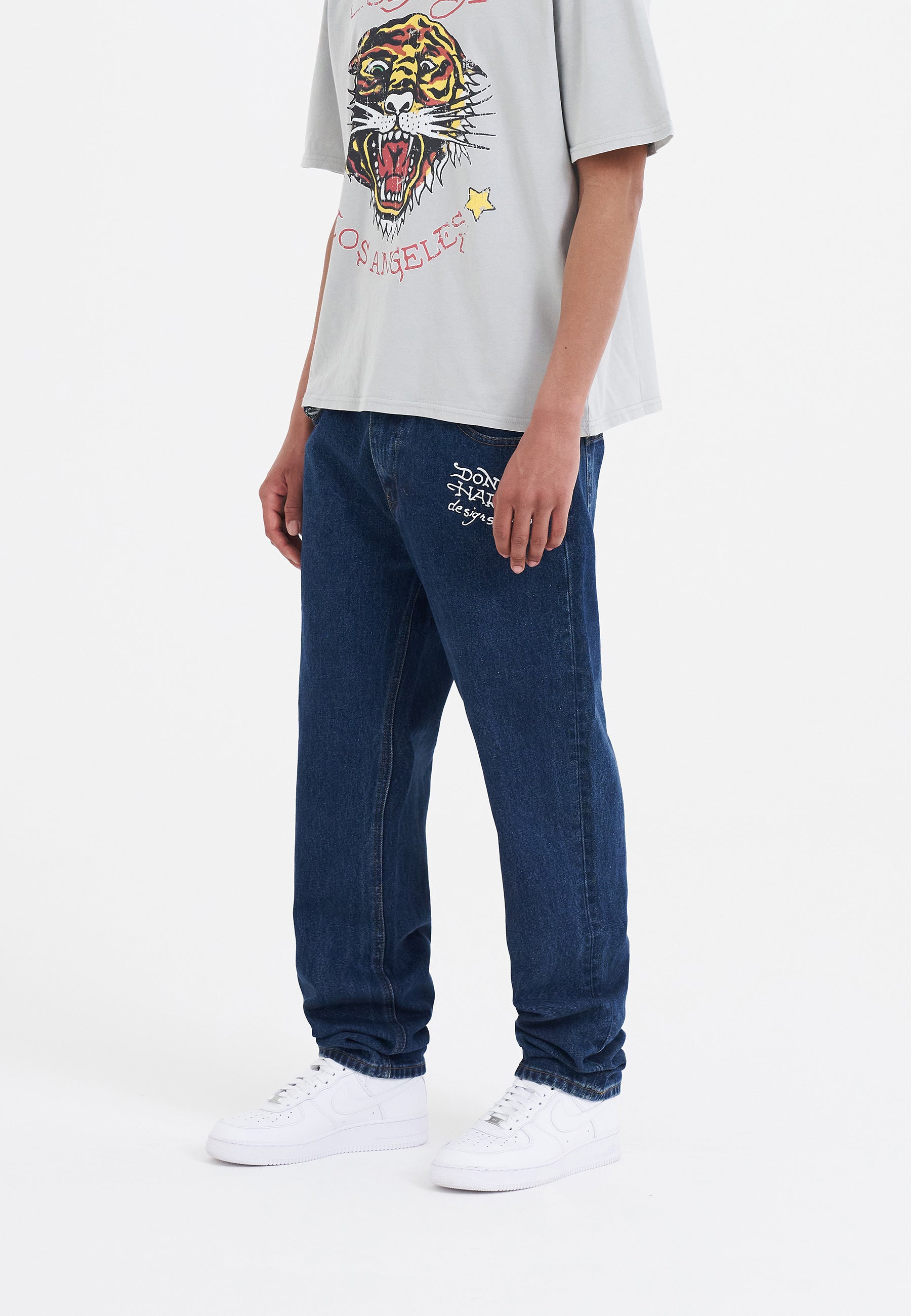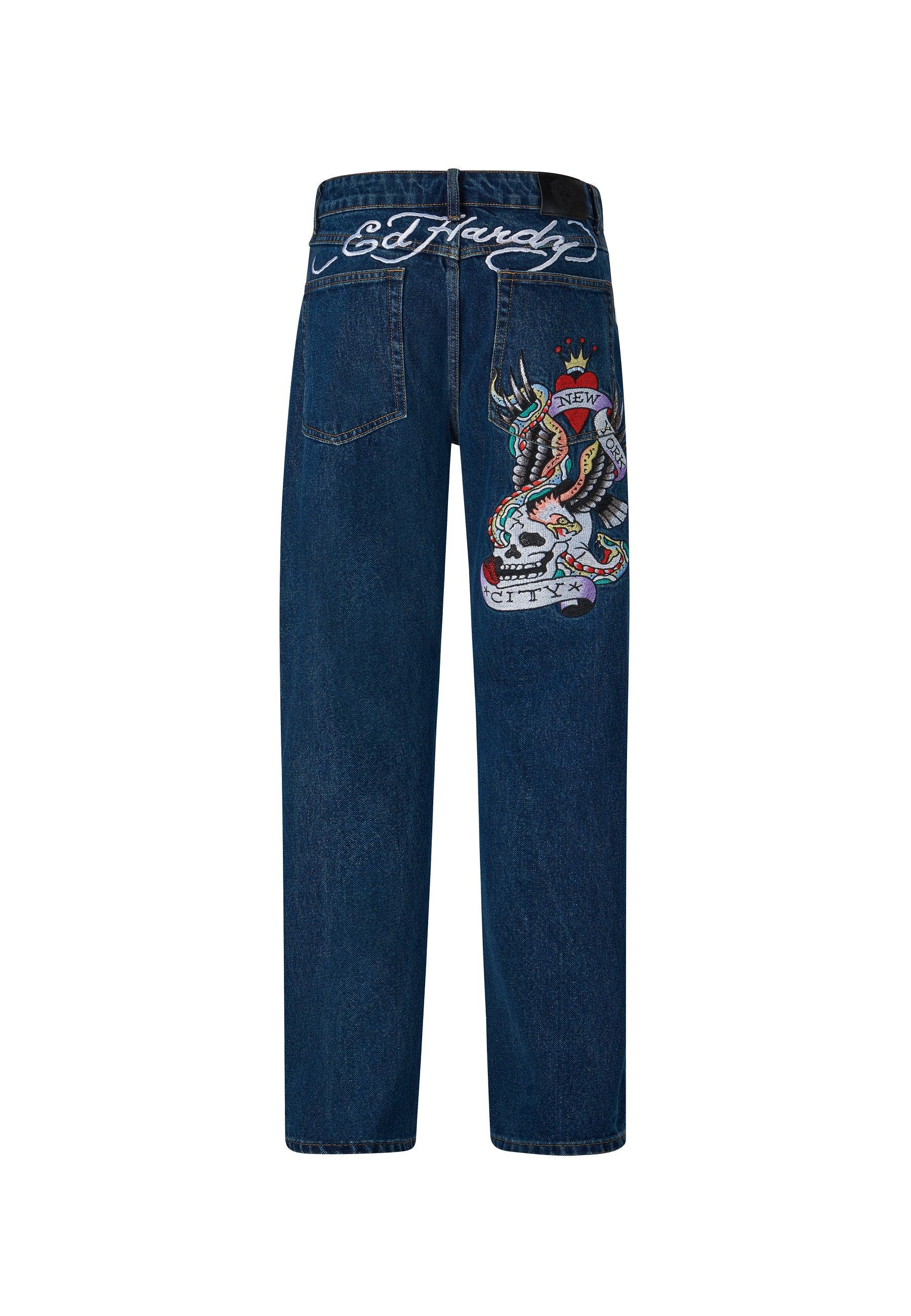 Herre Nyc-Skull Tattoo Graphic Denim Bukser Jeans - Indigo