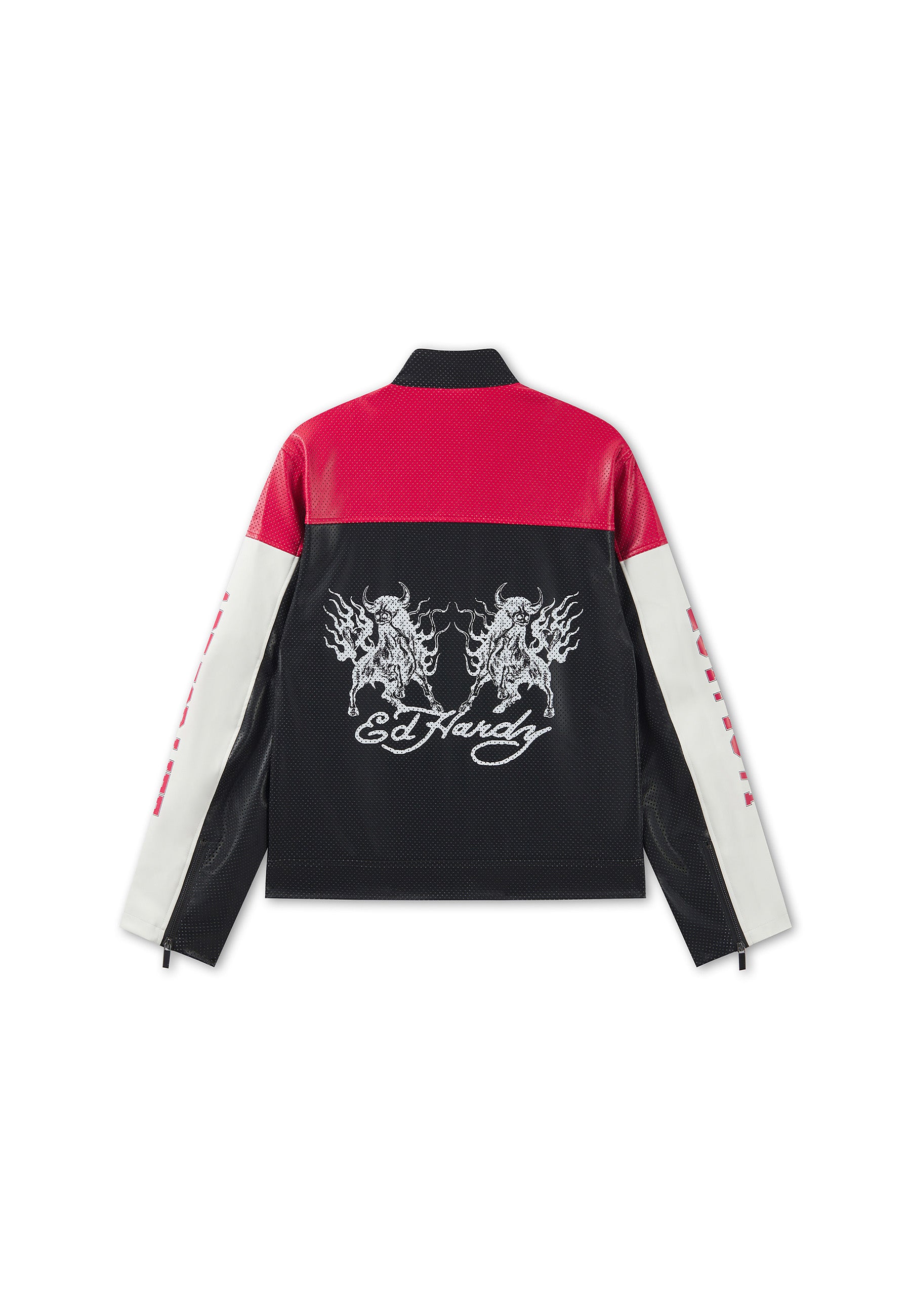 Womens Art For Life Regular Perforated Moto Jacket - Red / Black