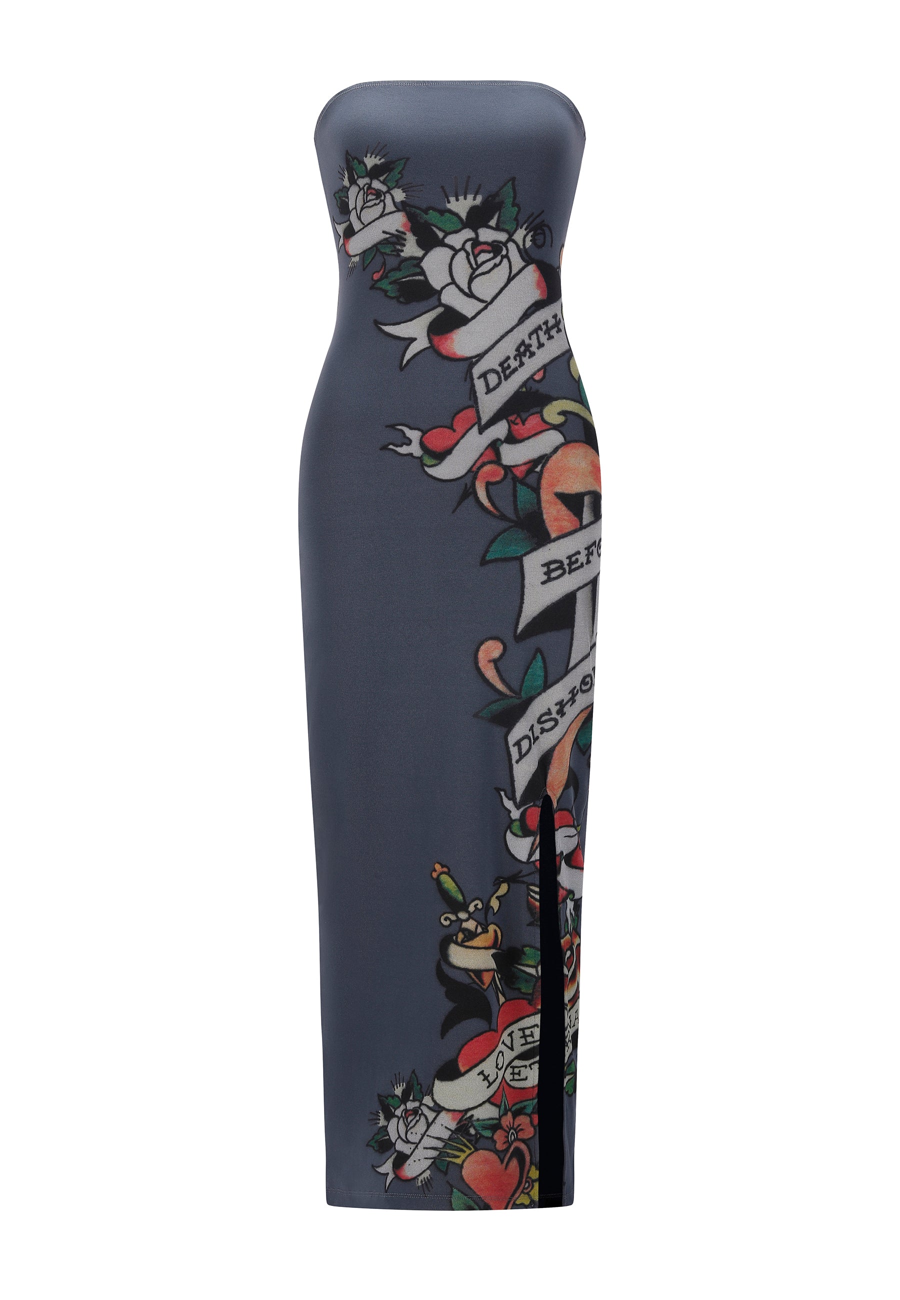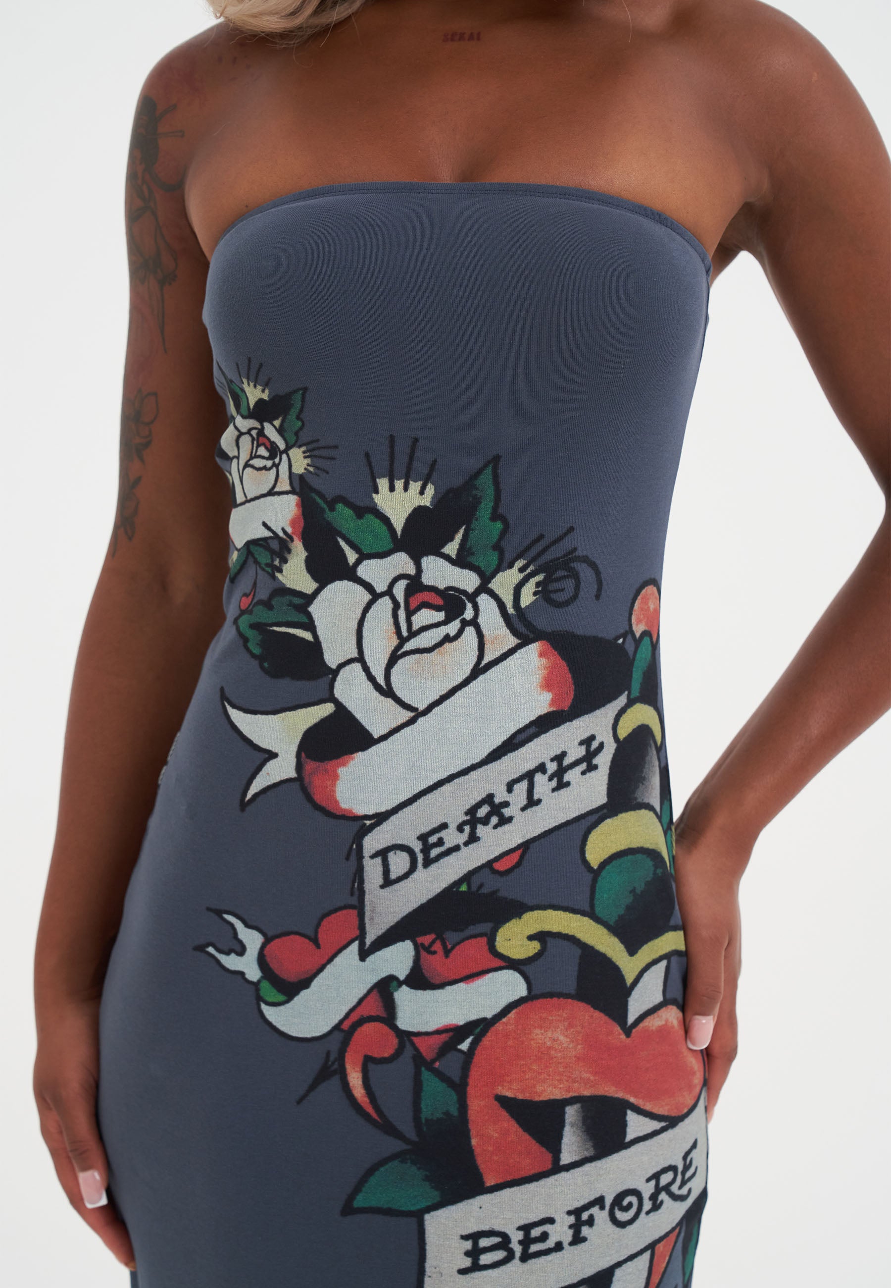 WOMENS DEATH BEFORE DISHONOR BANDEAU DRESS in Charcoal
