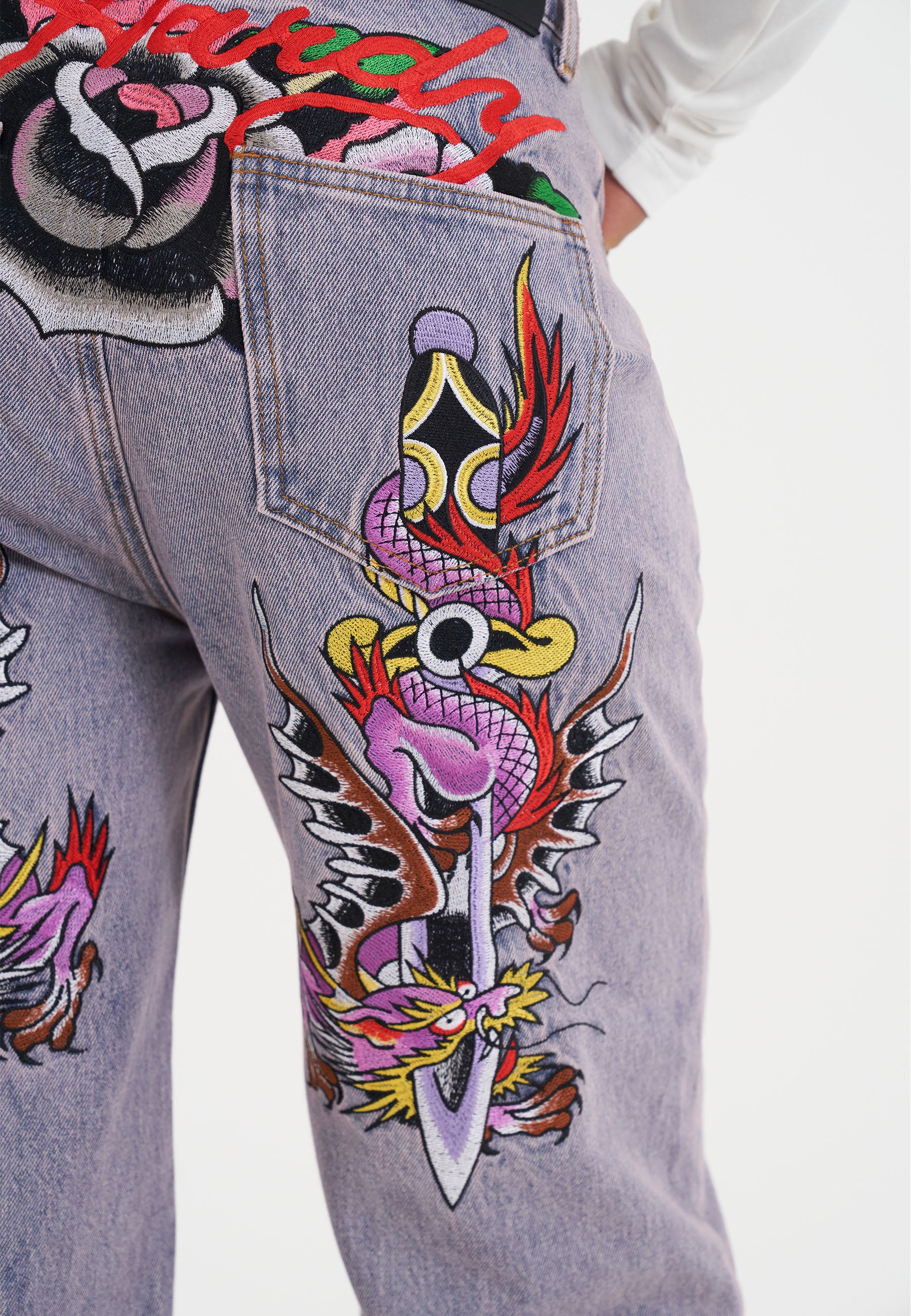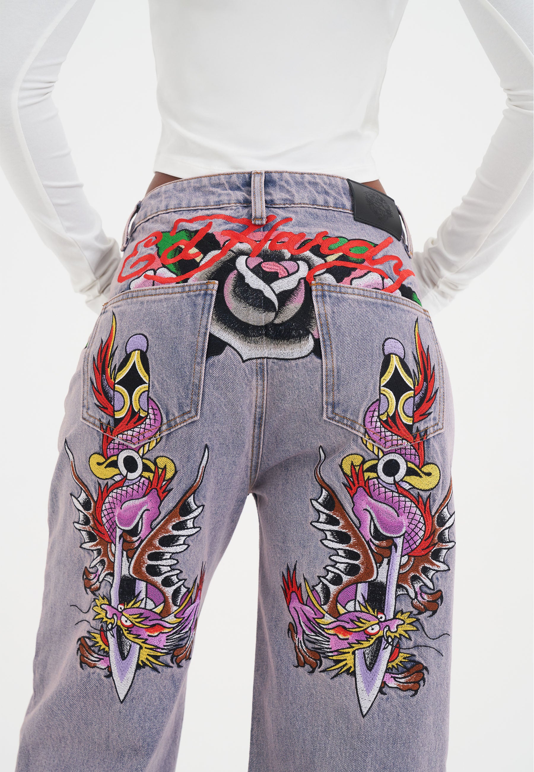 Womens Dragon And Sword Relaxed Jeans - Purple