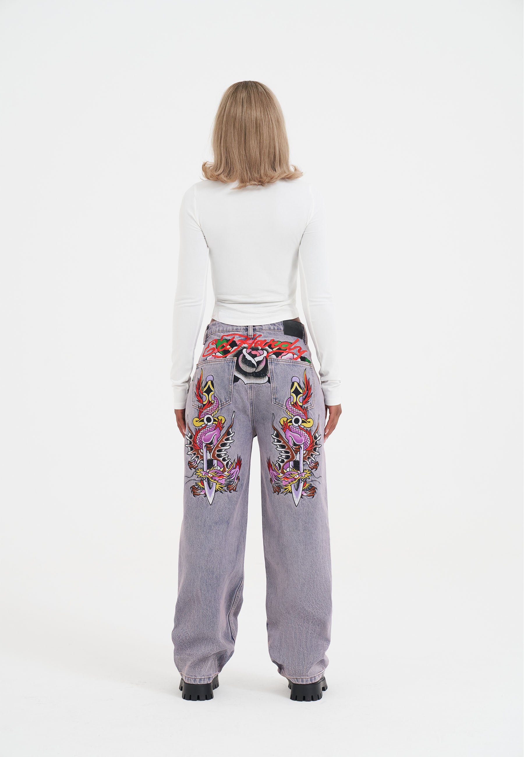 WOMENS DRAGON AND SWORD RELAXED JEANS in Purple