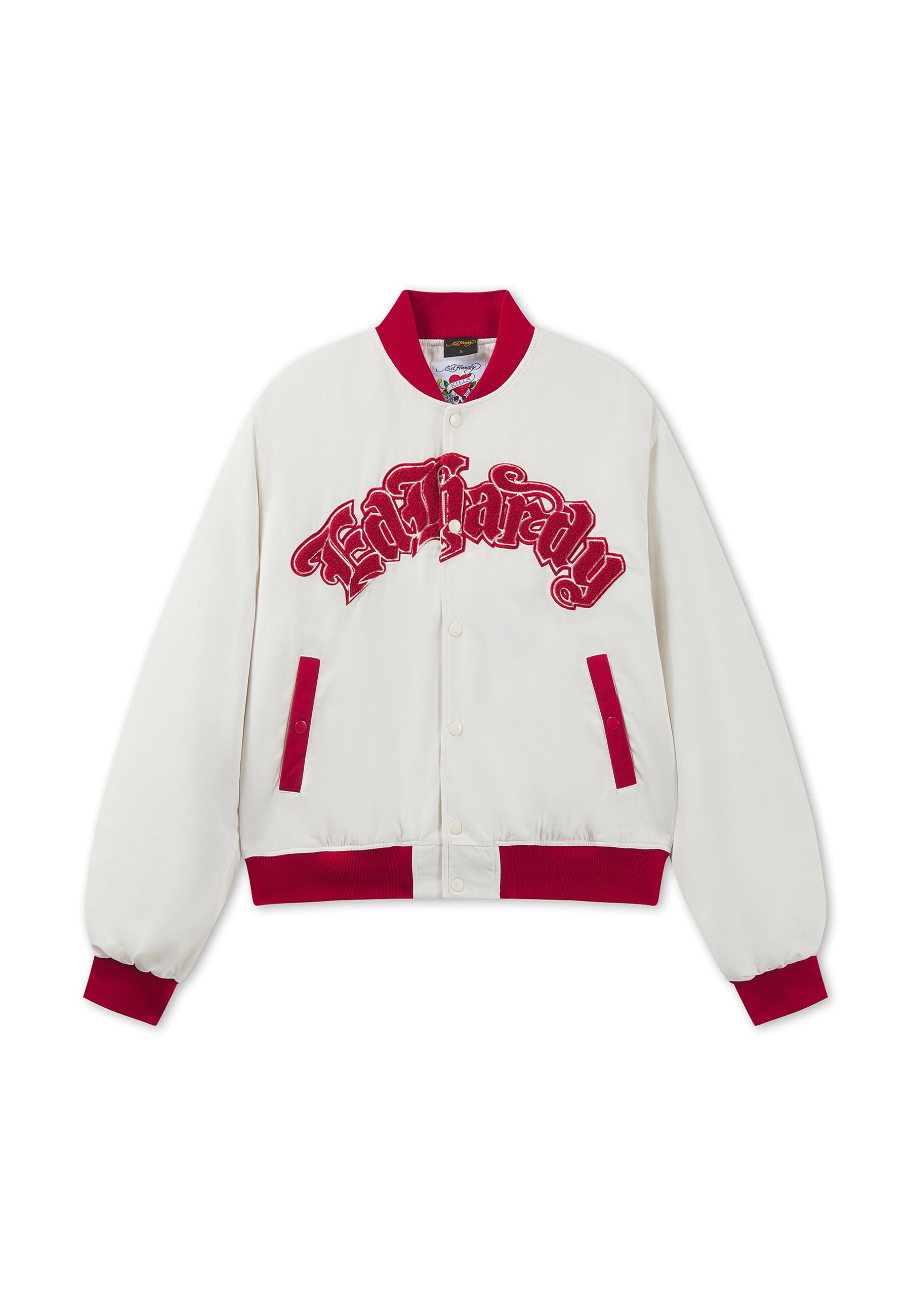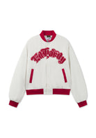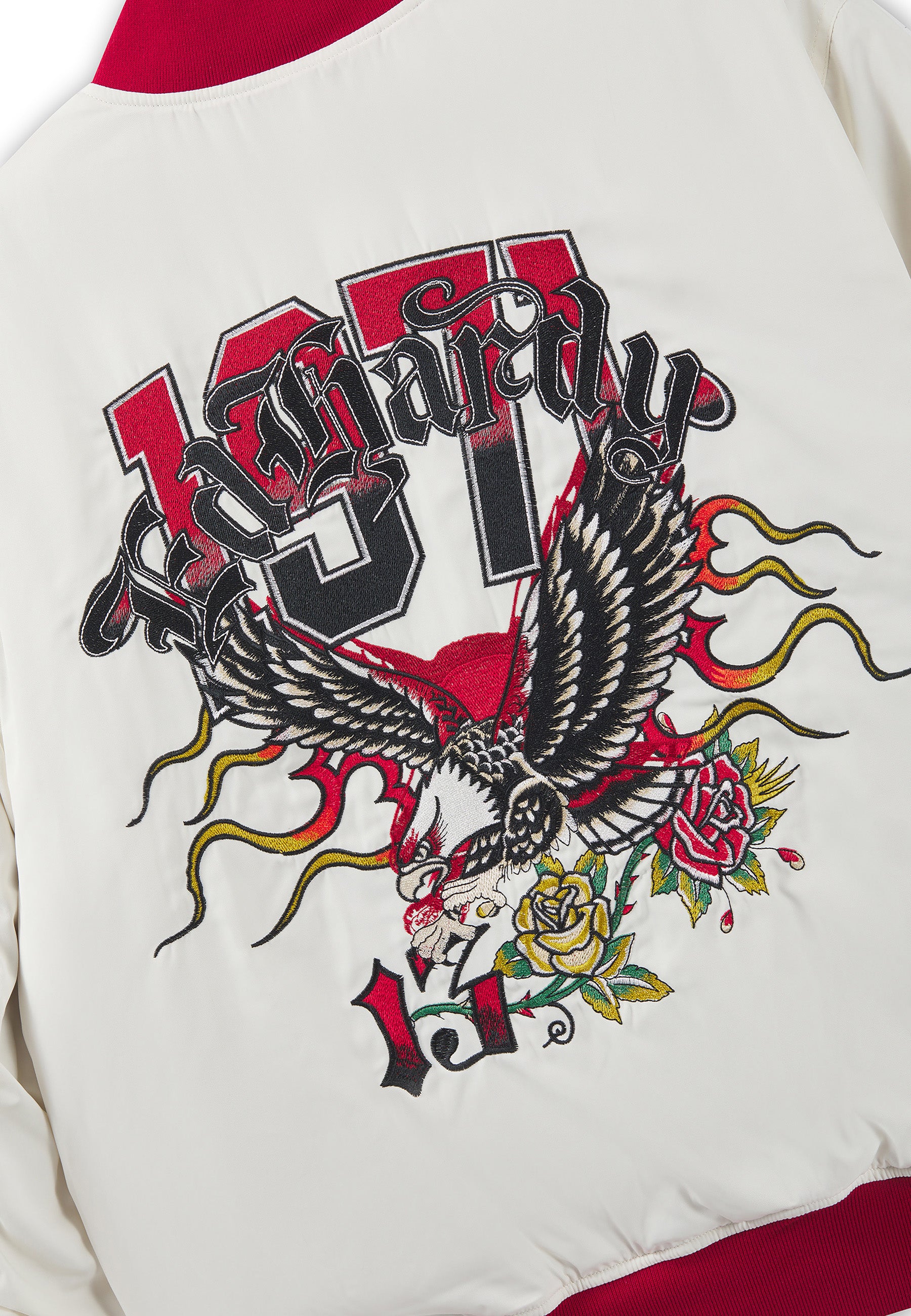 Womens Gothic Flaming Eagle Relaxed Bomber Jacket - Ecru