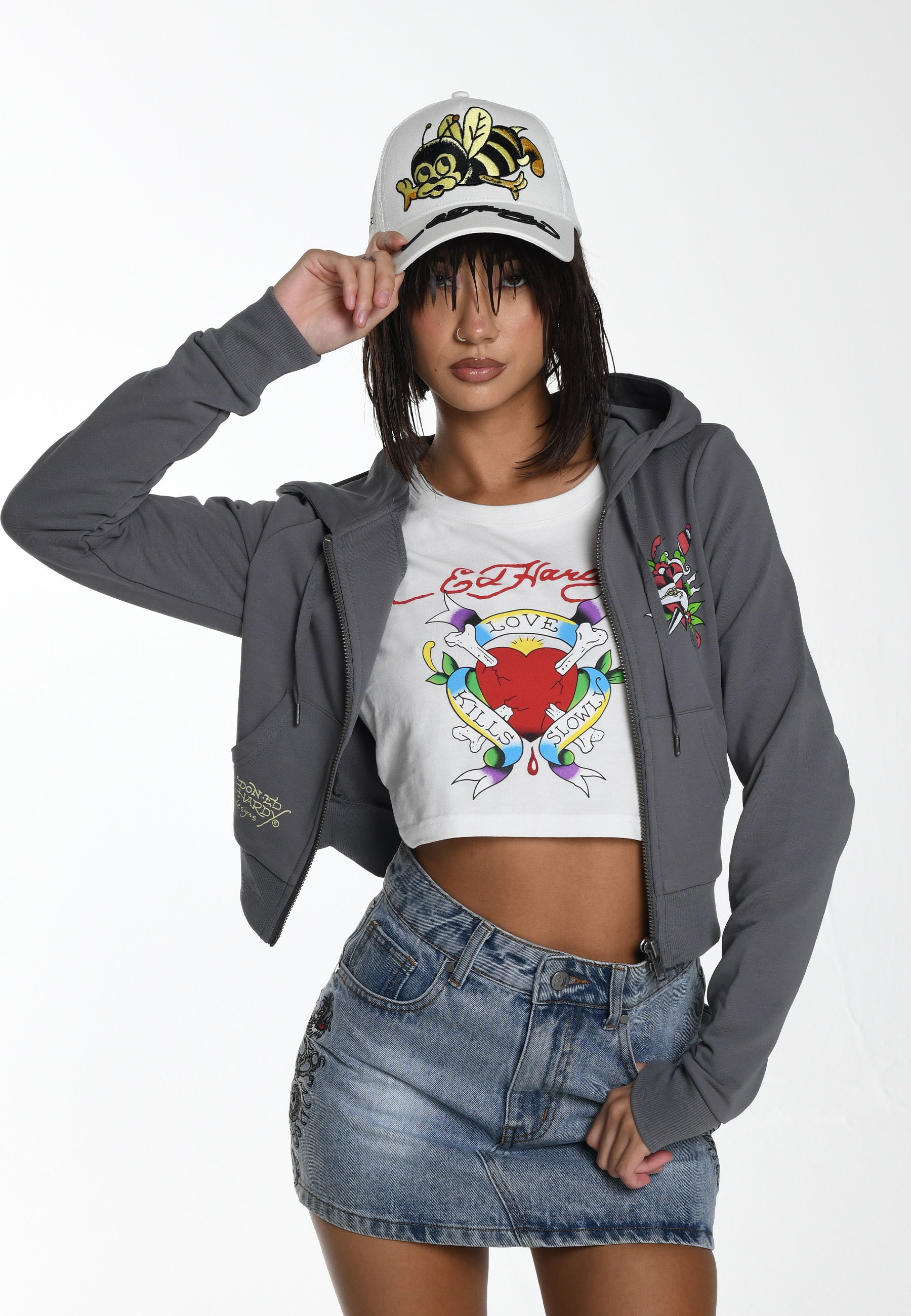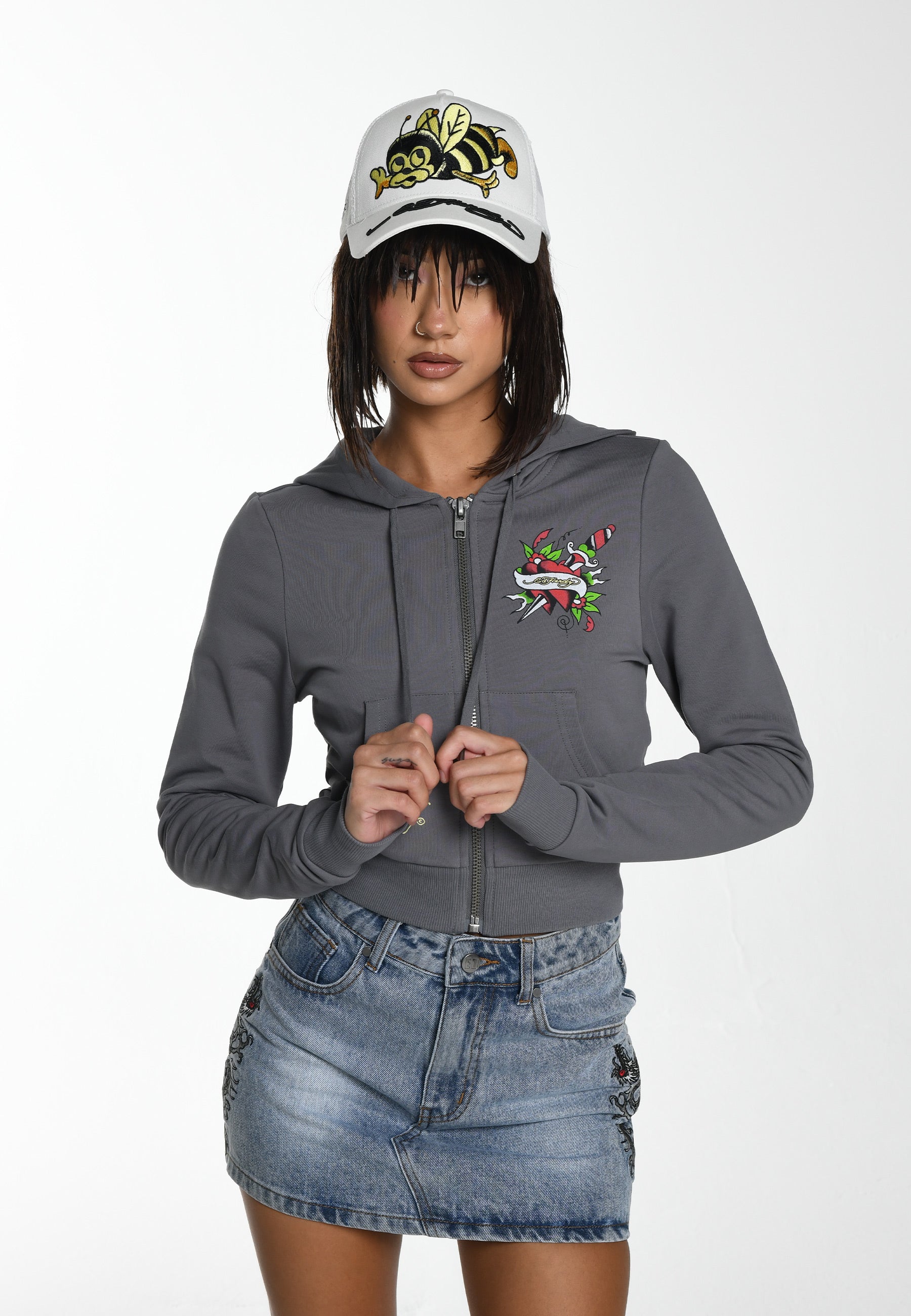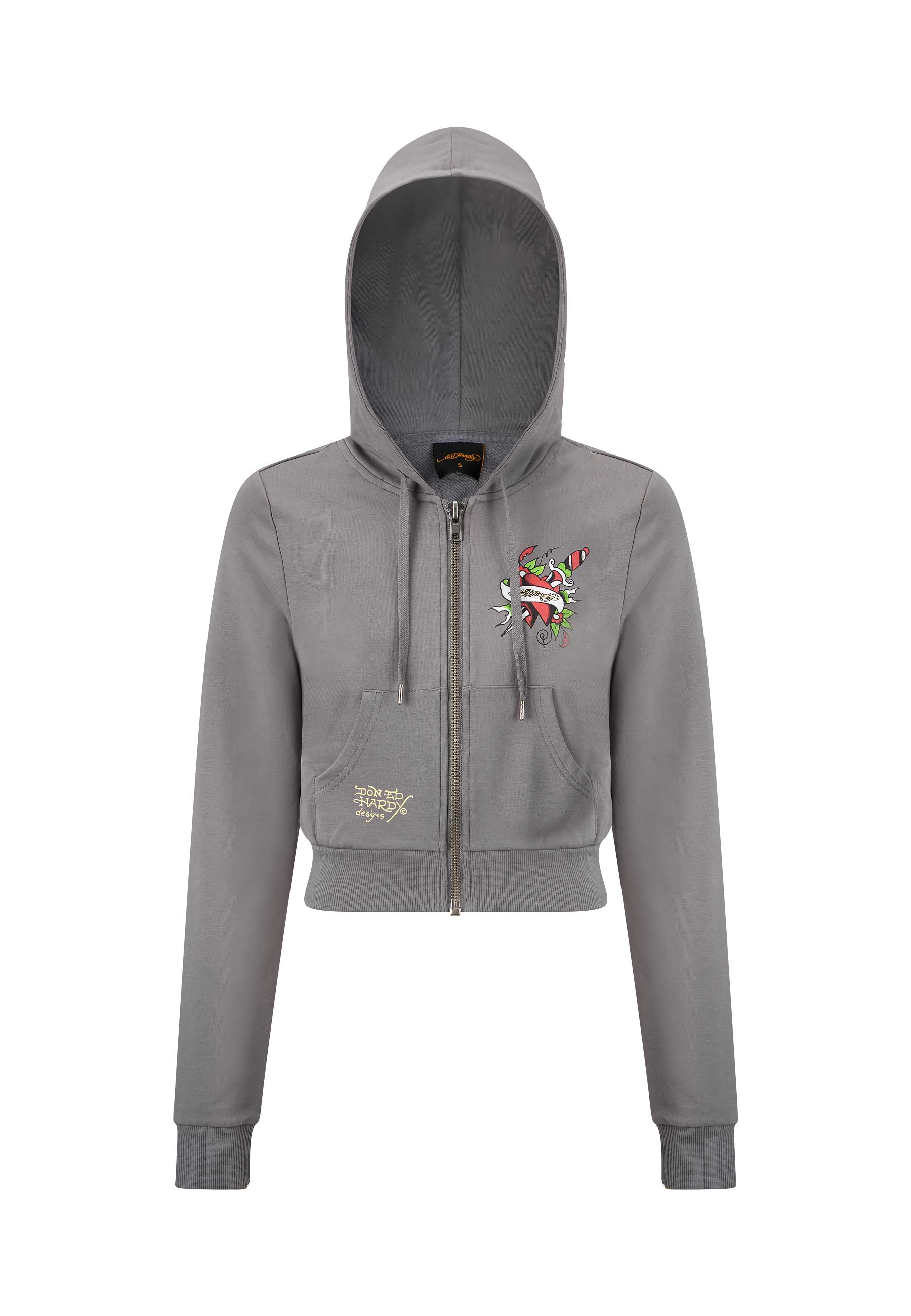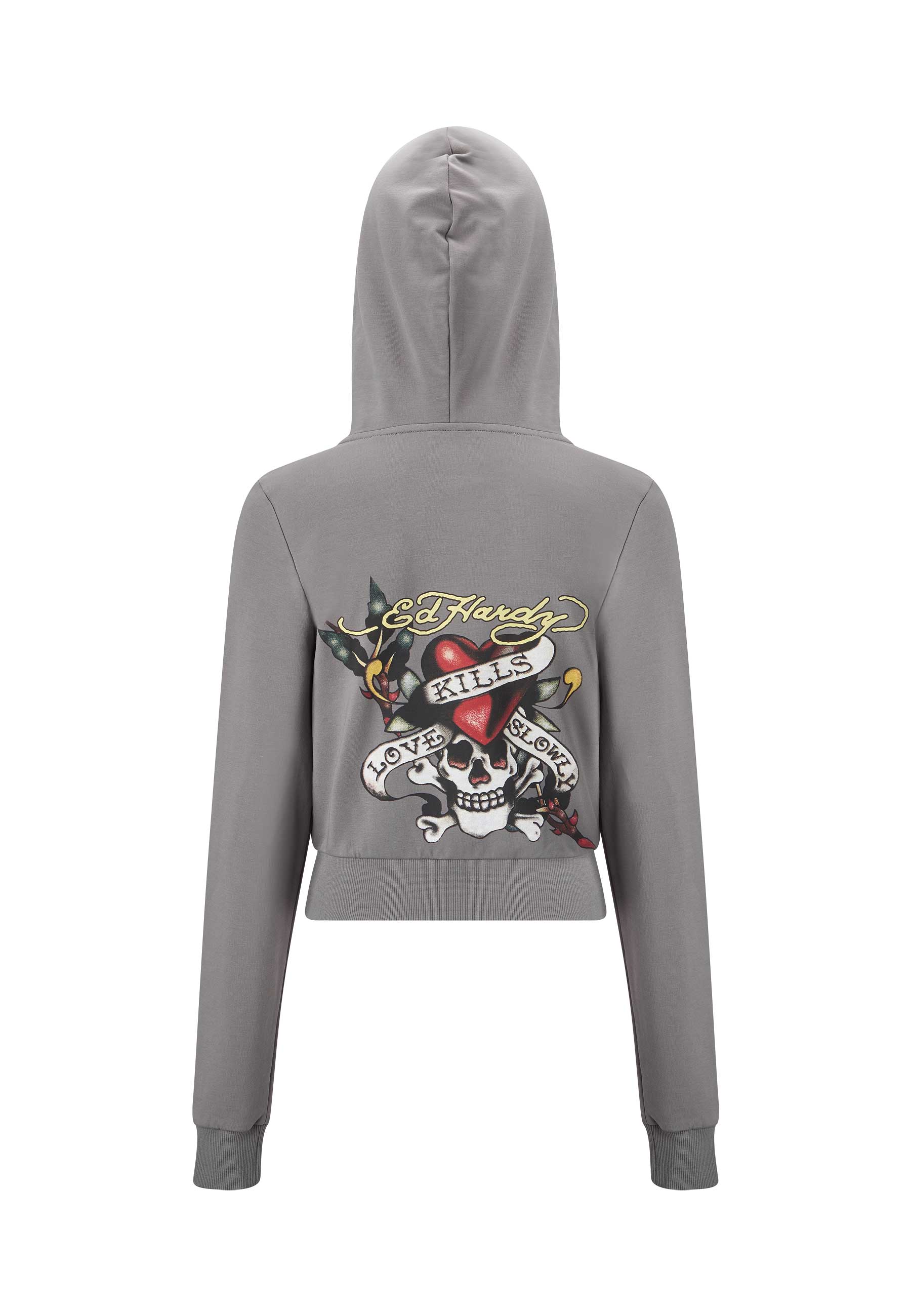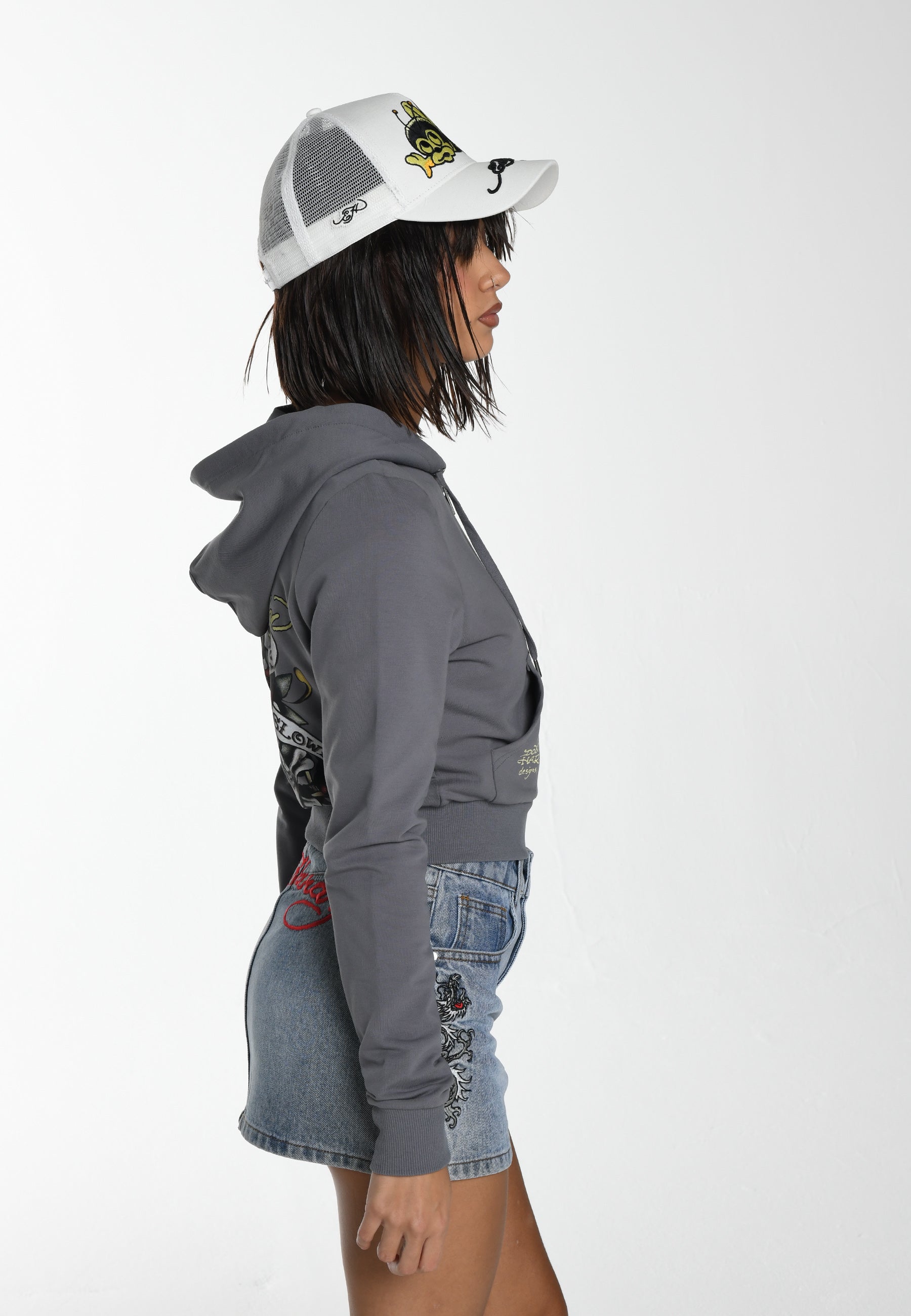 Womens Lks Graphic Cropped Zip Thru Hoodie - Grey