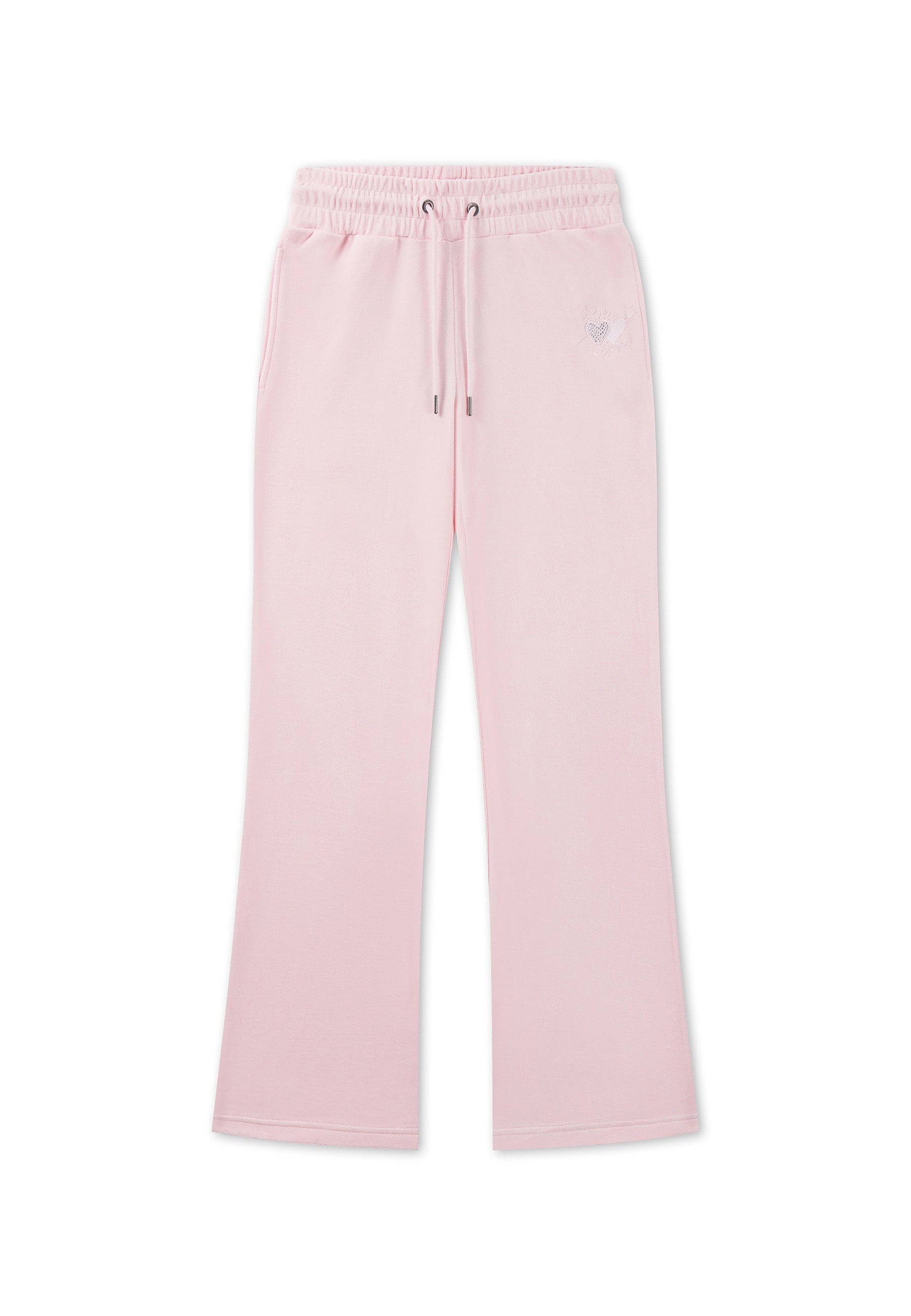 Womens Love And Thorns Diamante Velour Flared Joggers - Pink