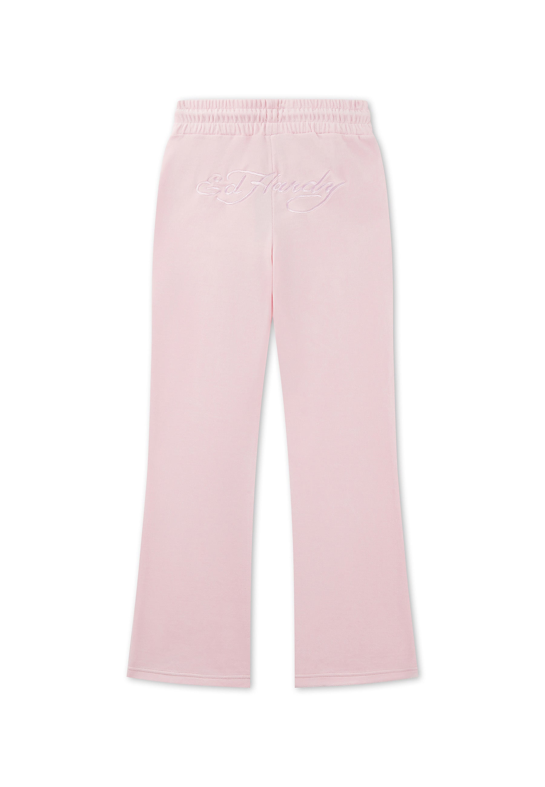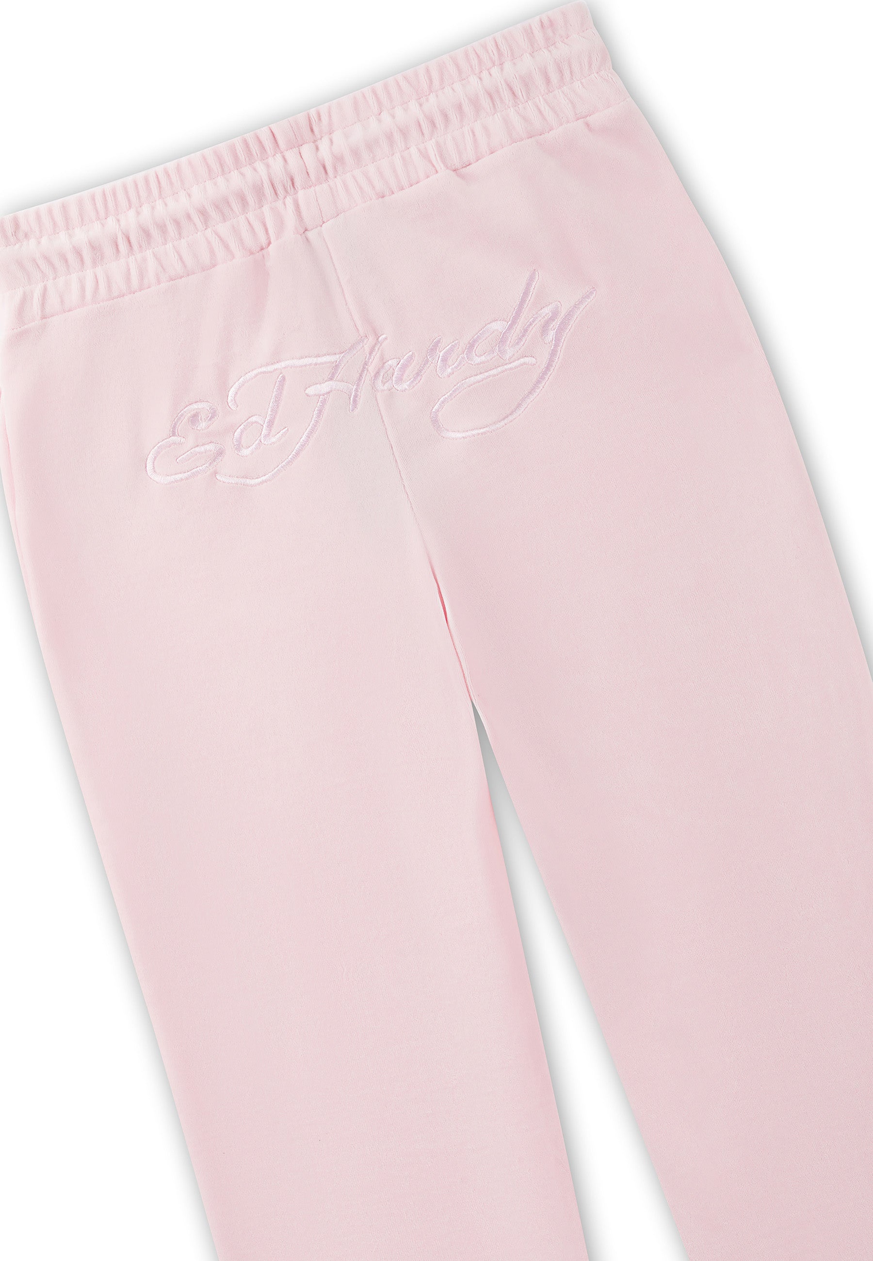 FLARED NO WASH 80% COTTON 20% POLYESTER VELOUR 270GSM ED HARDY SIGNATURE EMBROIDERY TO BACK HEART GRAPHIC EMBROIDERY WITH HOT FIX CRYSTAL DIAMANTE PLACEMENTS TO FRONT RIGHT LEG