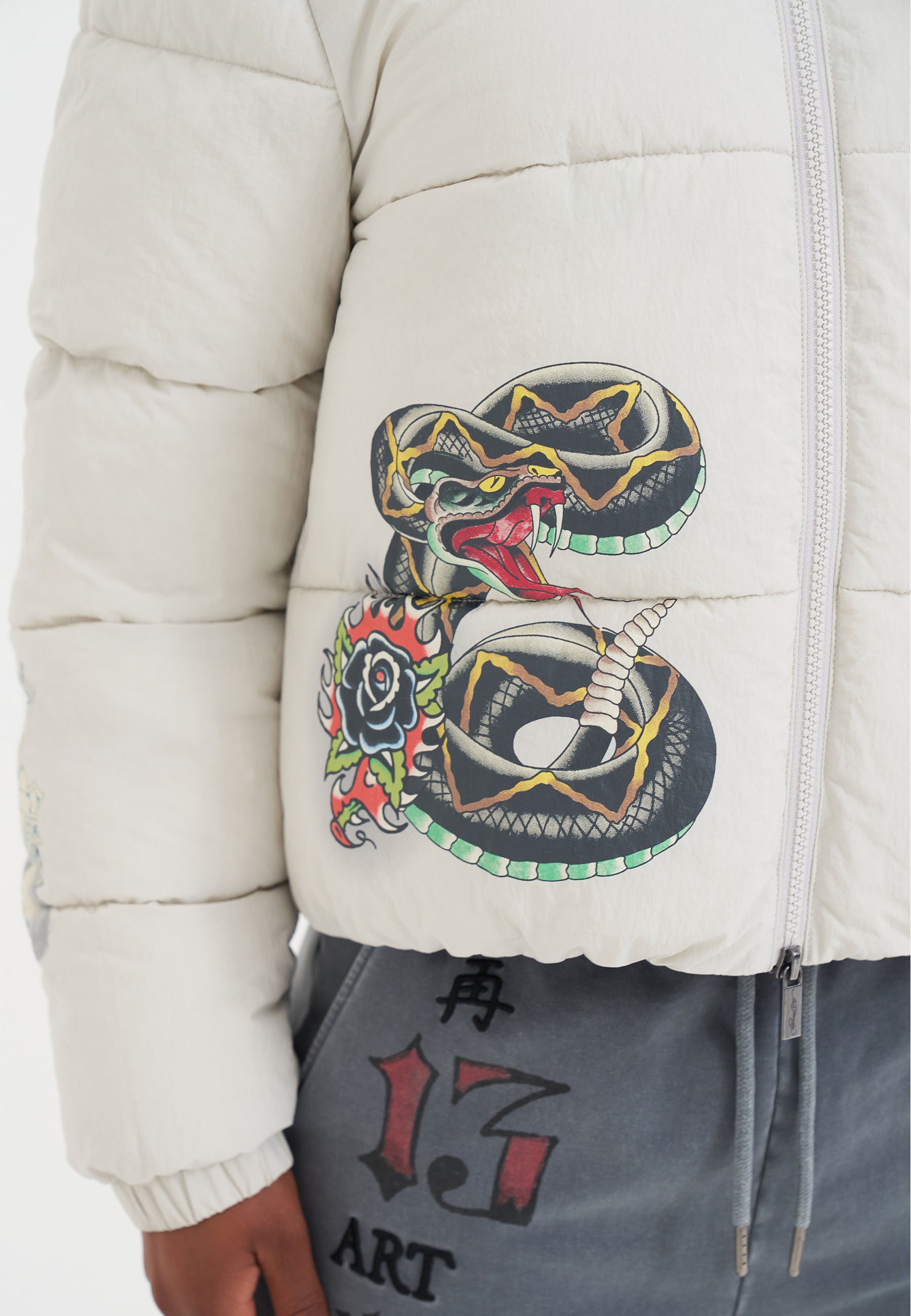 Womens Black Cobra Embossed Vegan Leather Jacket - Black