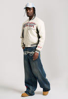 Mens 1971 Panther Pu Varsity Bomber - Ecru / Black