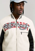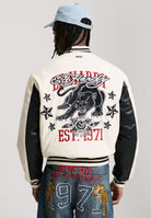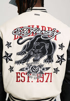 Mens 1971 Panther Pu Varsity Bomber in Ecru / Black