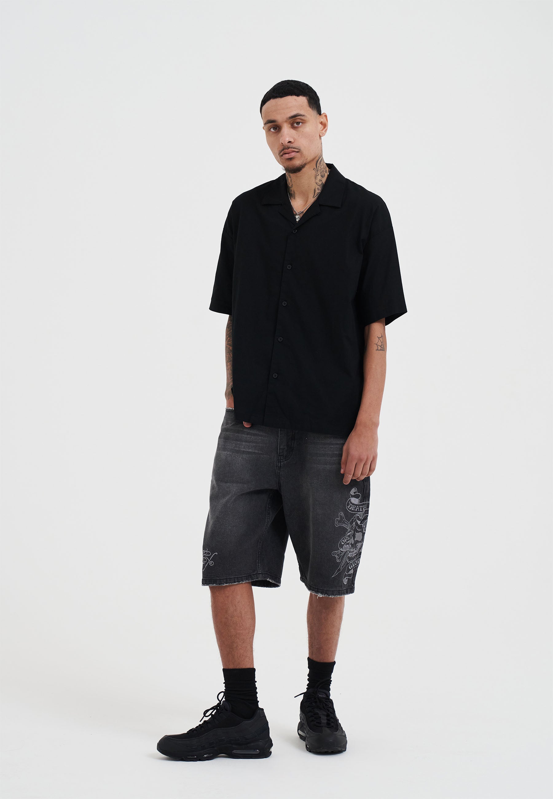 SNAKES AND SKULL FLAMES PRINTED CAMP SHIRT
