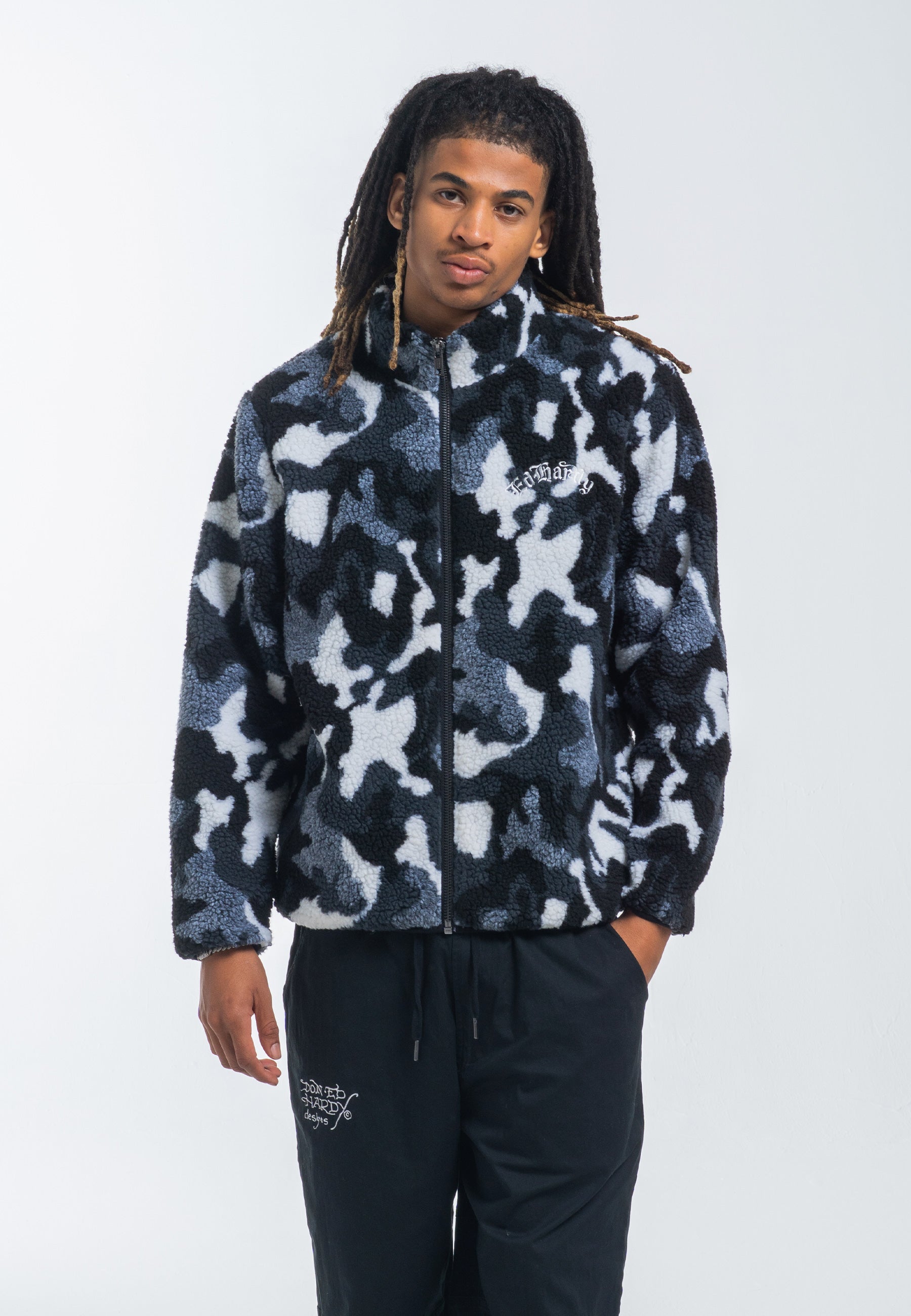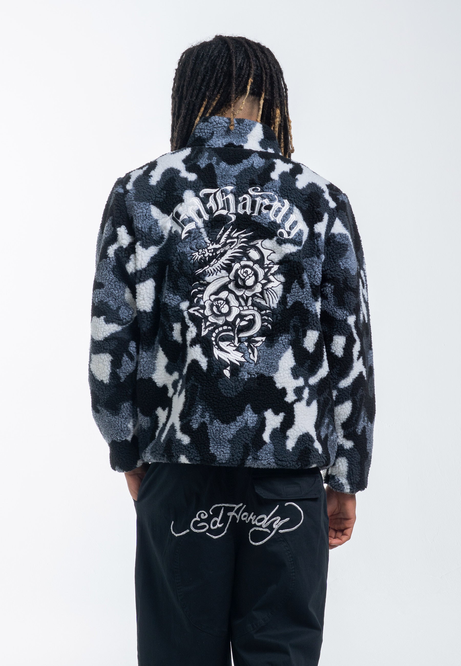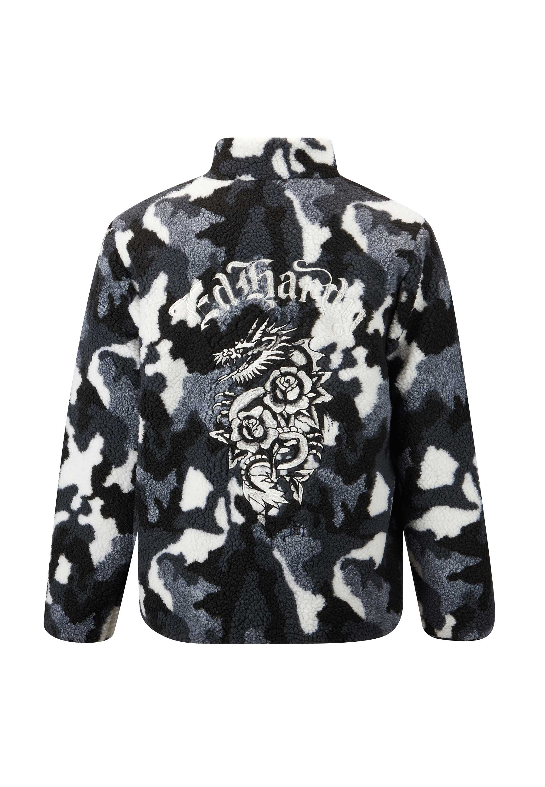 Męska kurtka polarowa Dragon & Rose Camo Zip Thru Borg - szary moro