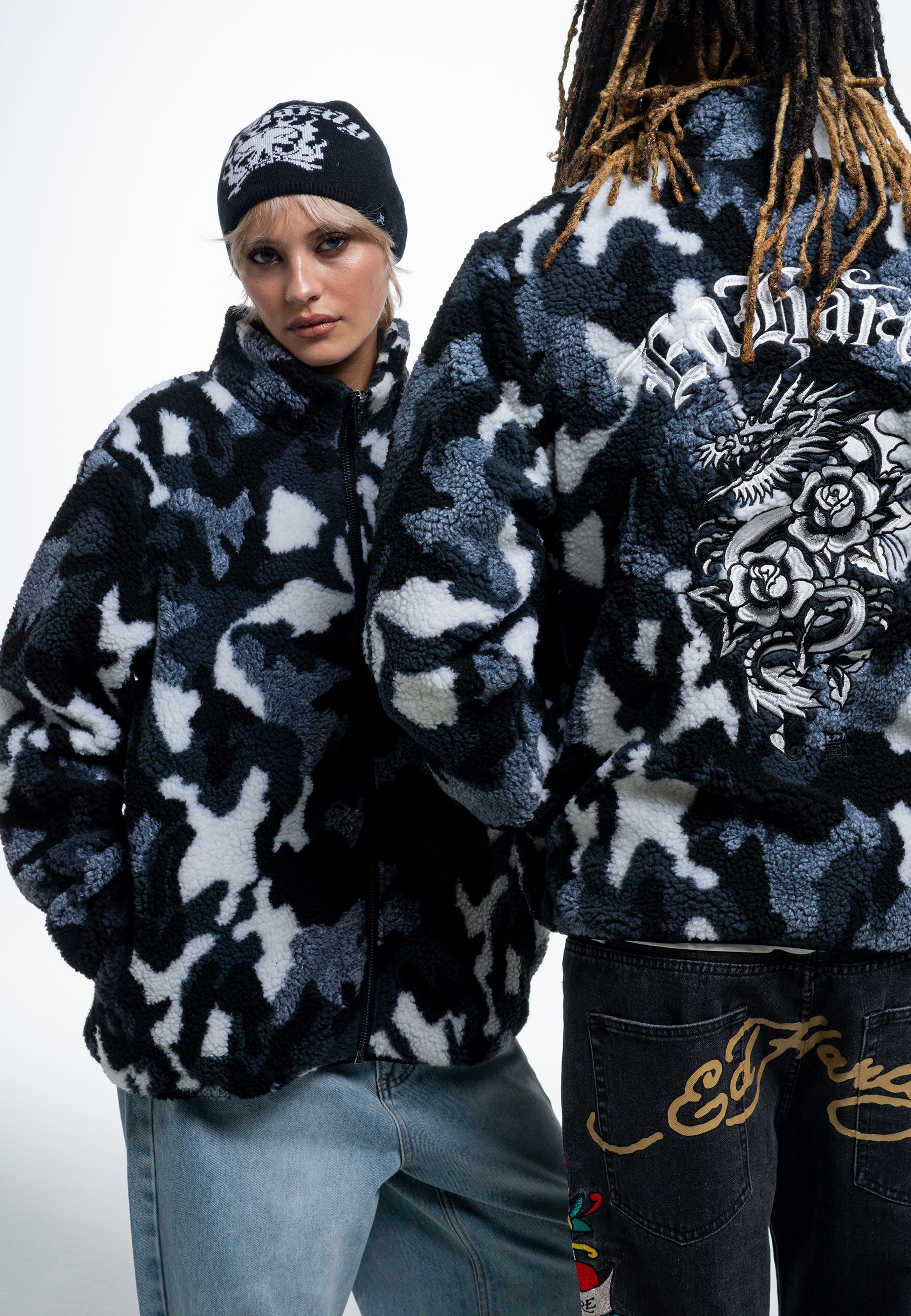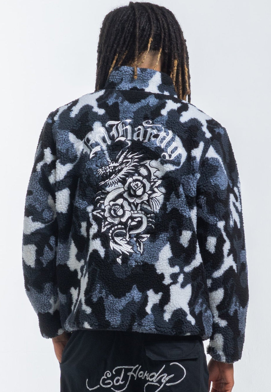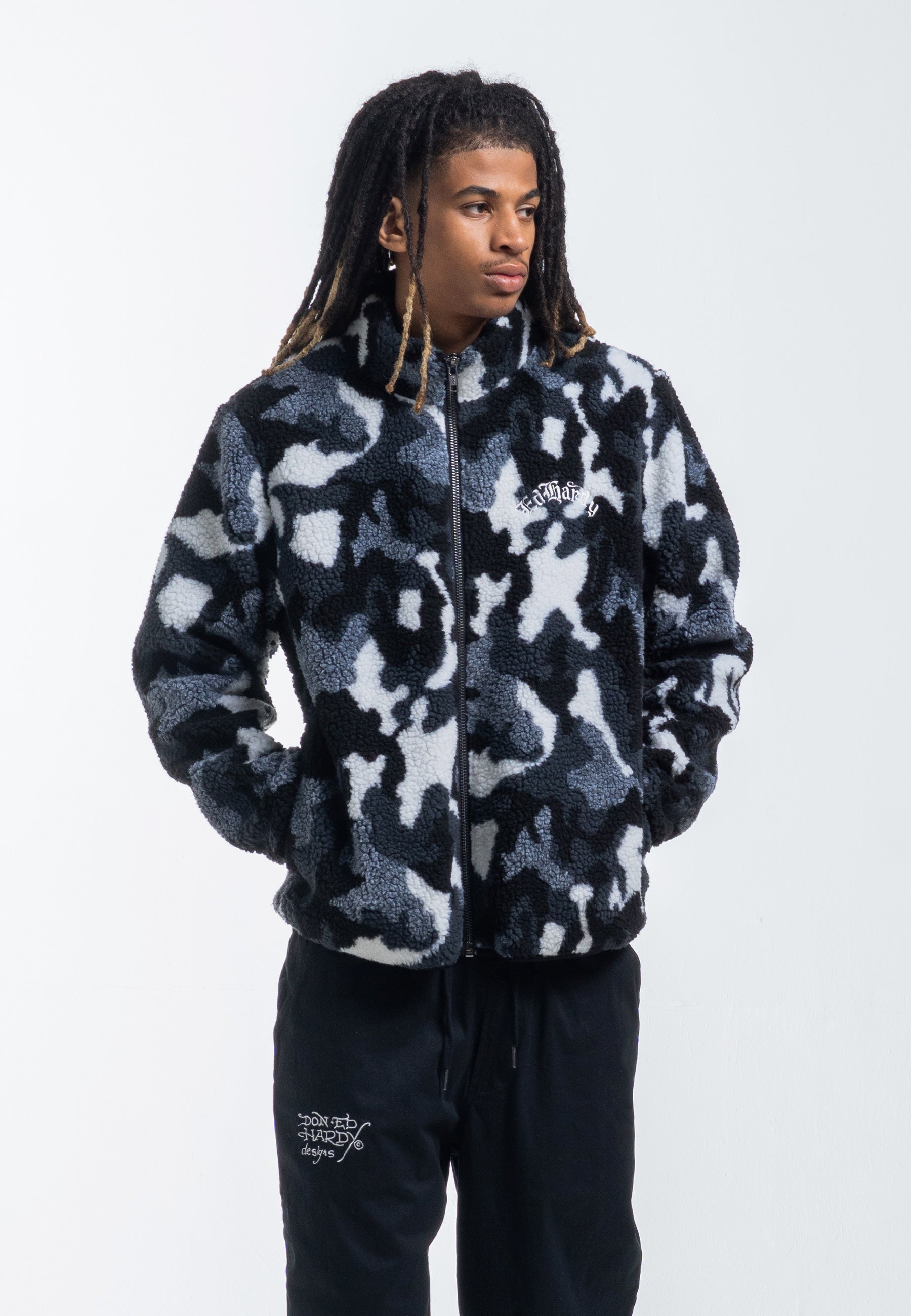 Męska kurtka polarowa Dragon & Rose Camo Zip Thru Borg - szary moro