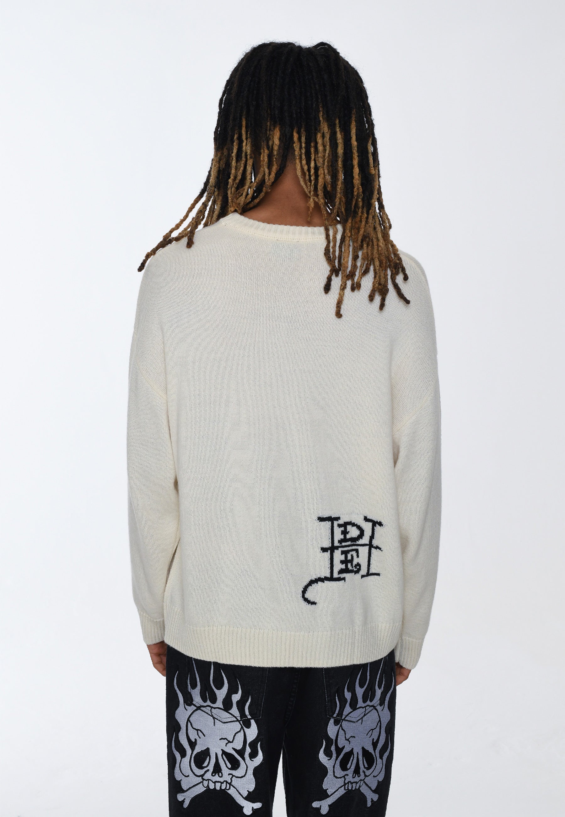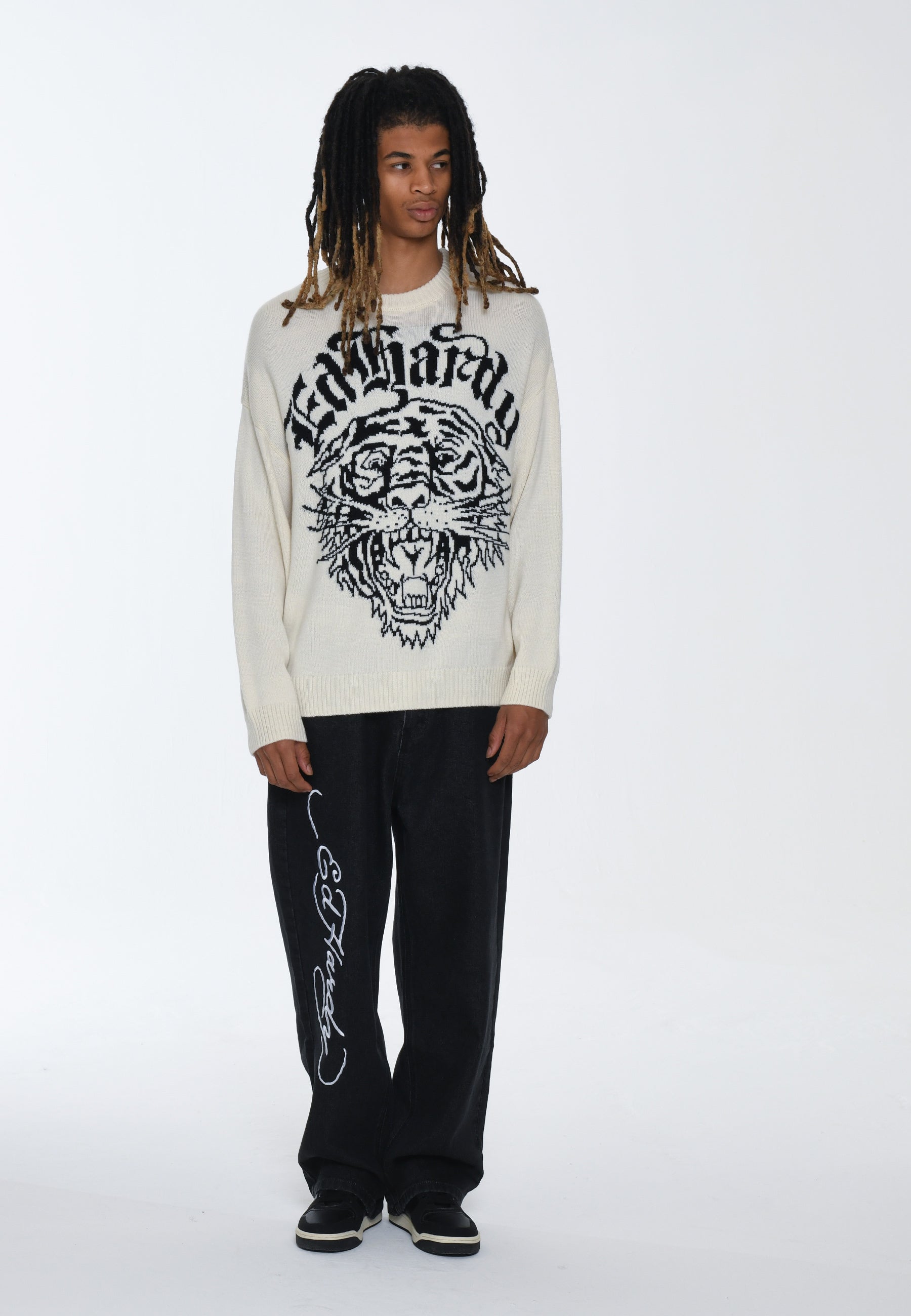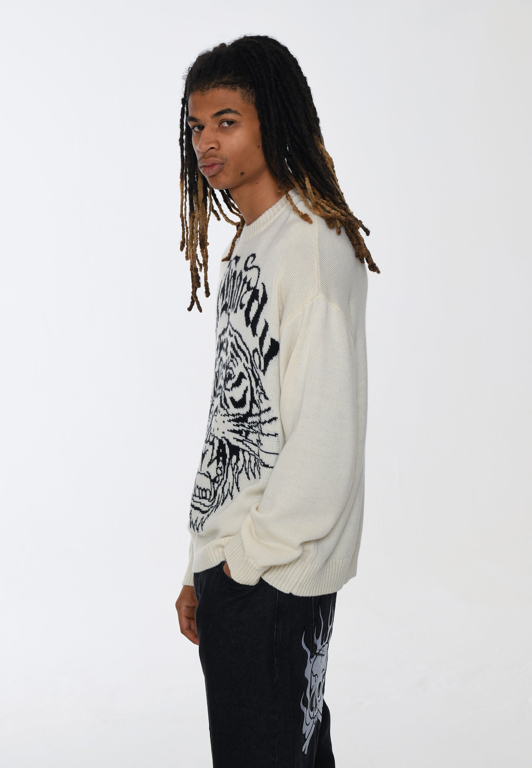 Męski sweter z dzianiny Tiger-Roar Żakardowy - Off White/Black