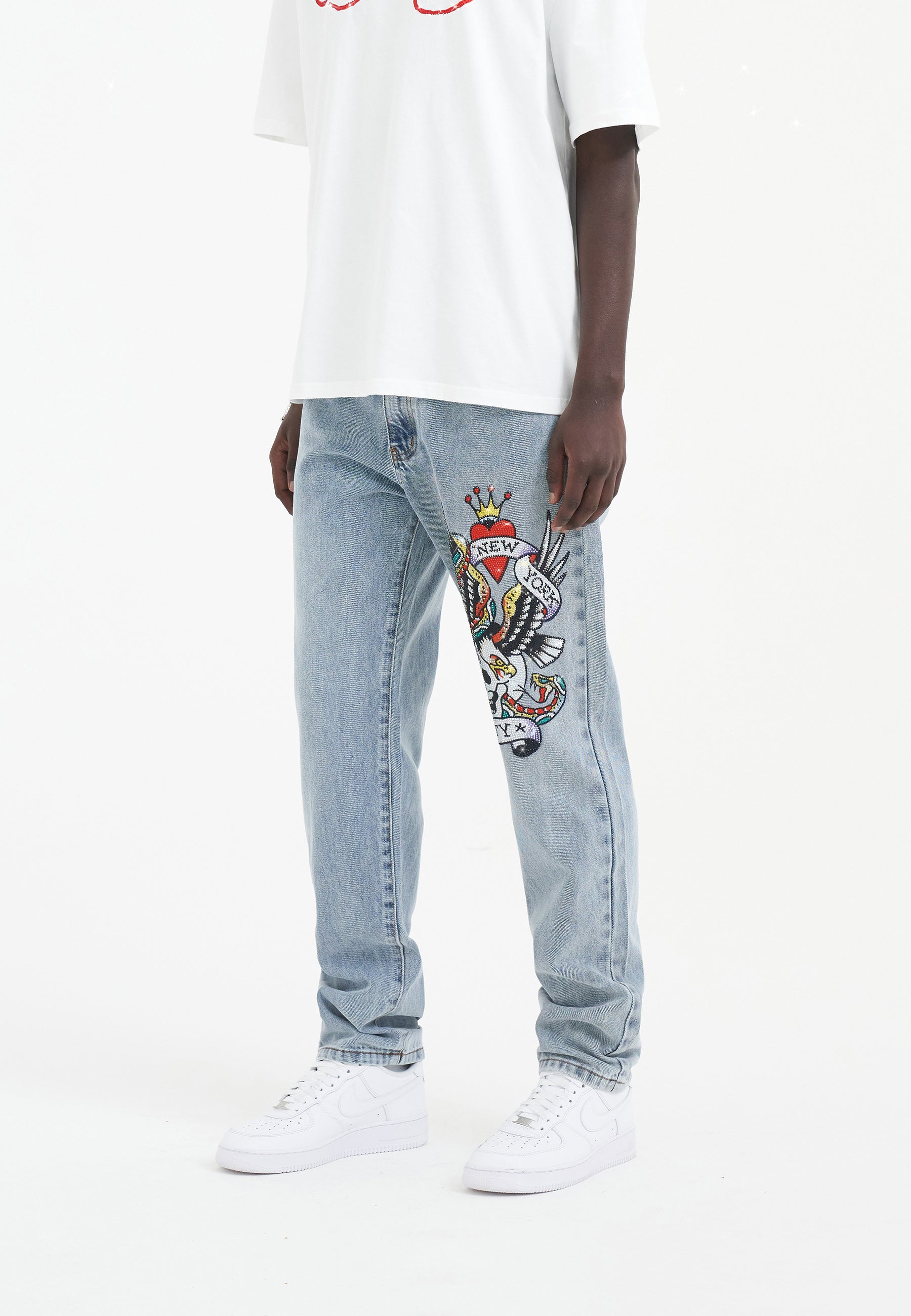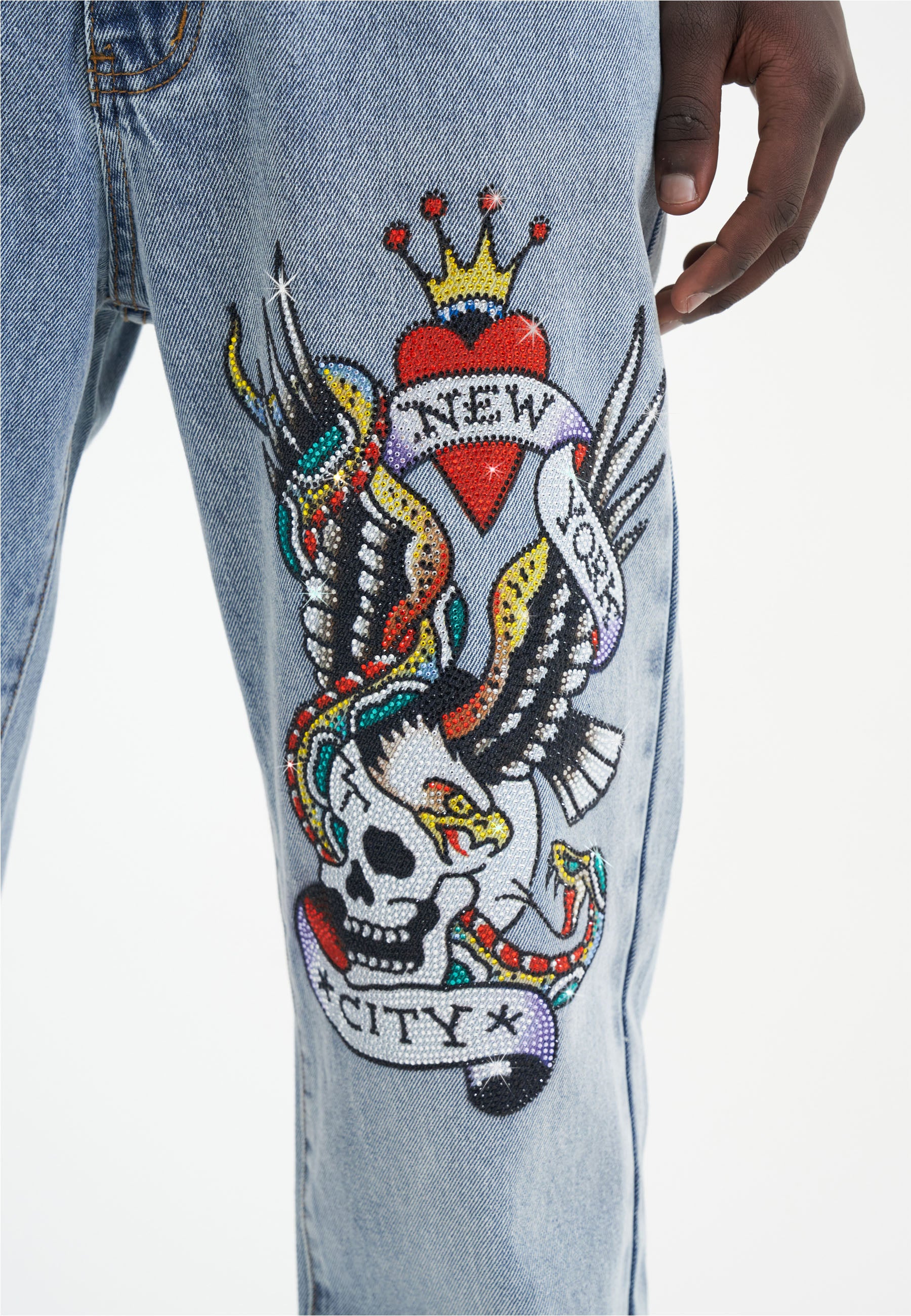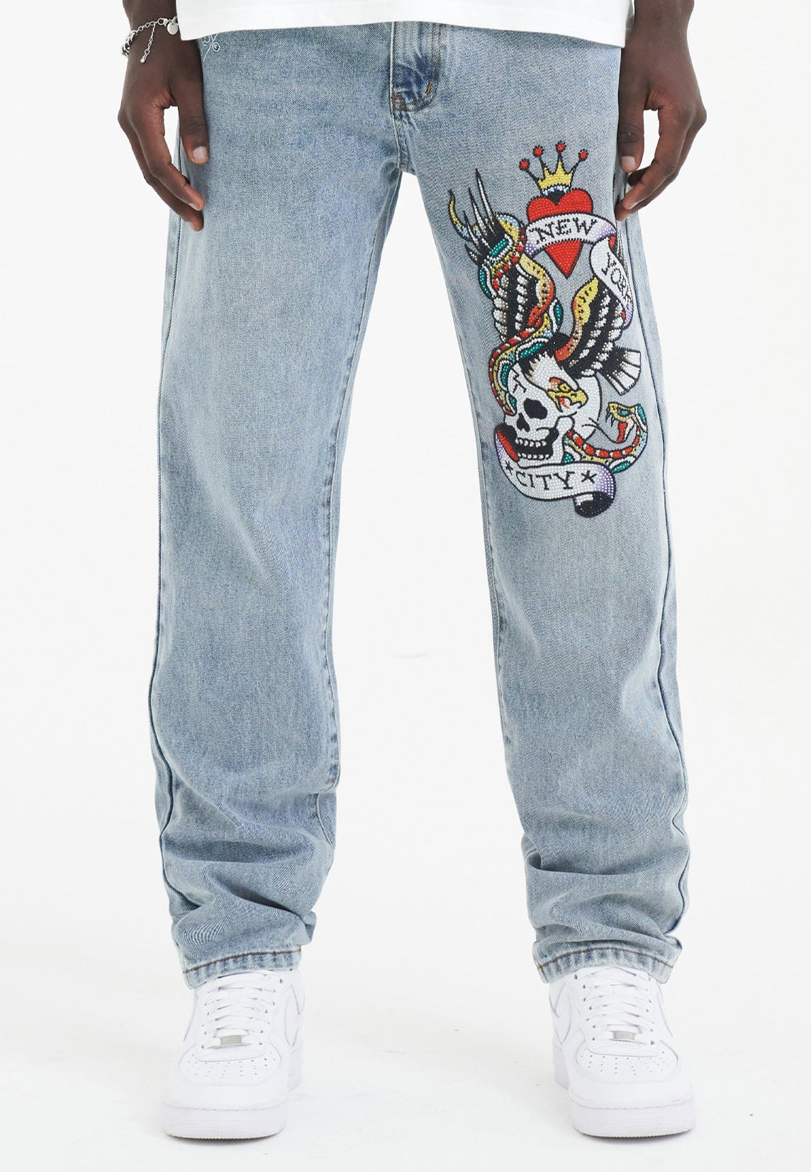 Męskie spodnie dżinsowe Nyc-Skull Diamante – wybielacz