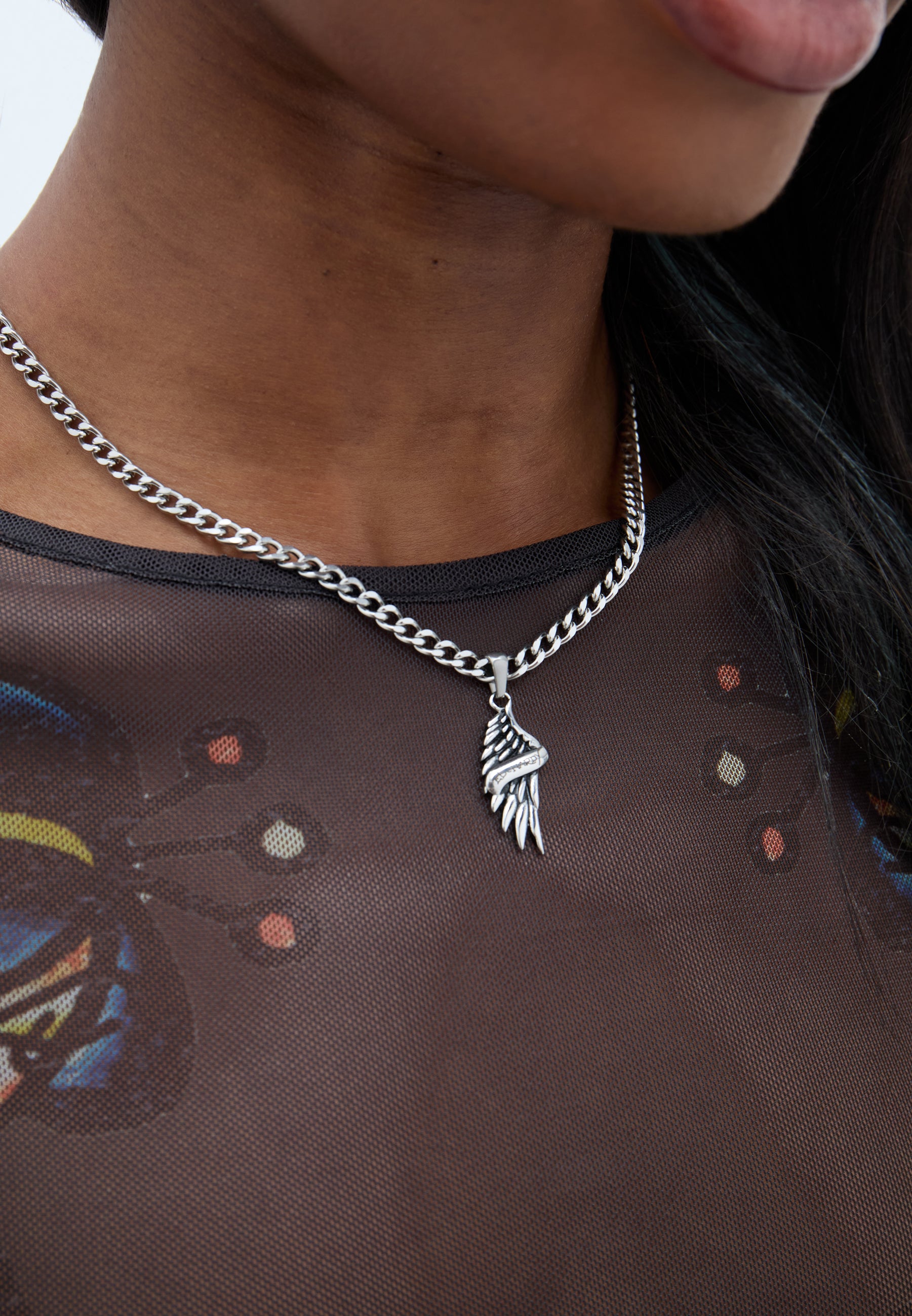 Ed Hardy Angel Wing Pendant Necklace - Silver