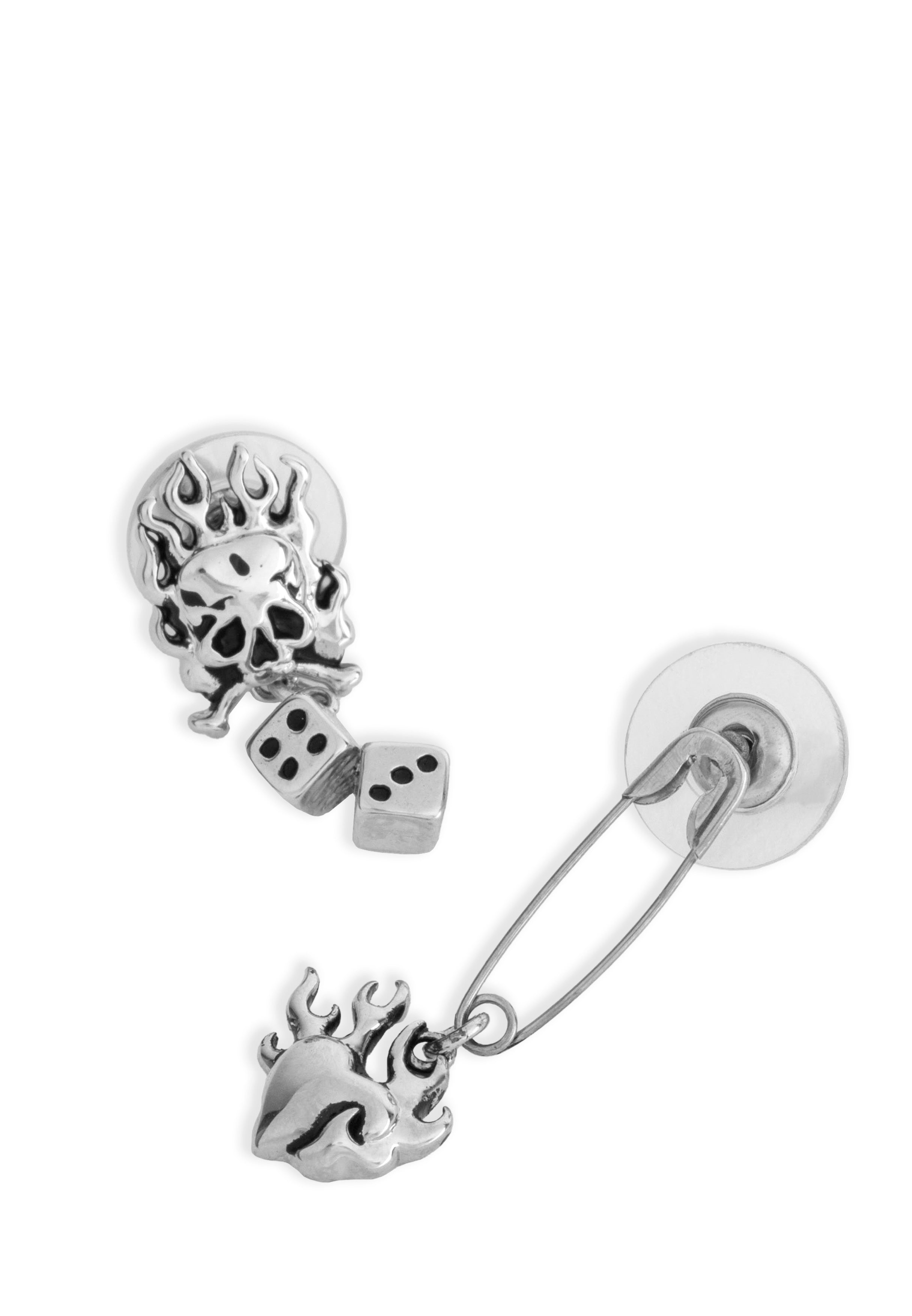 Ed Hardy Flaming Skull and Dice earring - Silver