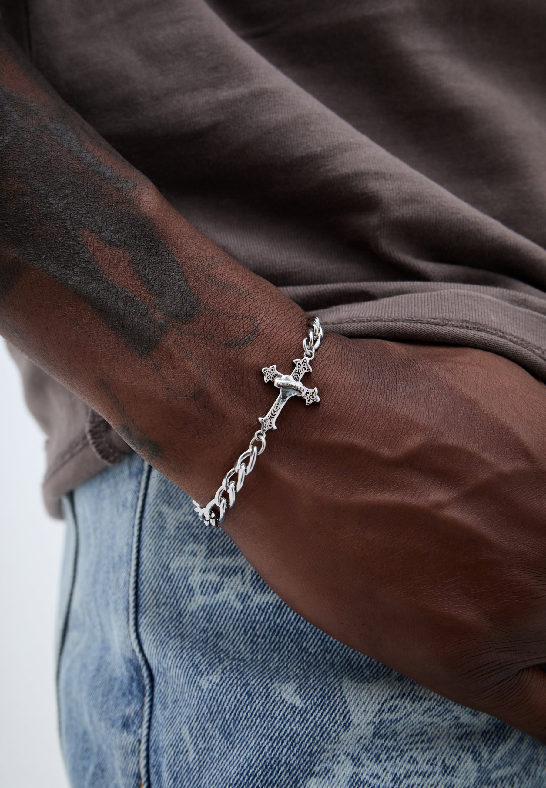 Ed Hardy Los Angeles Cross Chain Bracelet - Silver