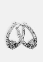 Ed Hardy custom cast textured hoops with Don Ed Hardy 'Love Kills Slowly' Skull and Heart design, hand finished in a silver finish with antiqued engraved detailing.