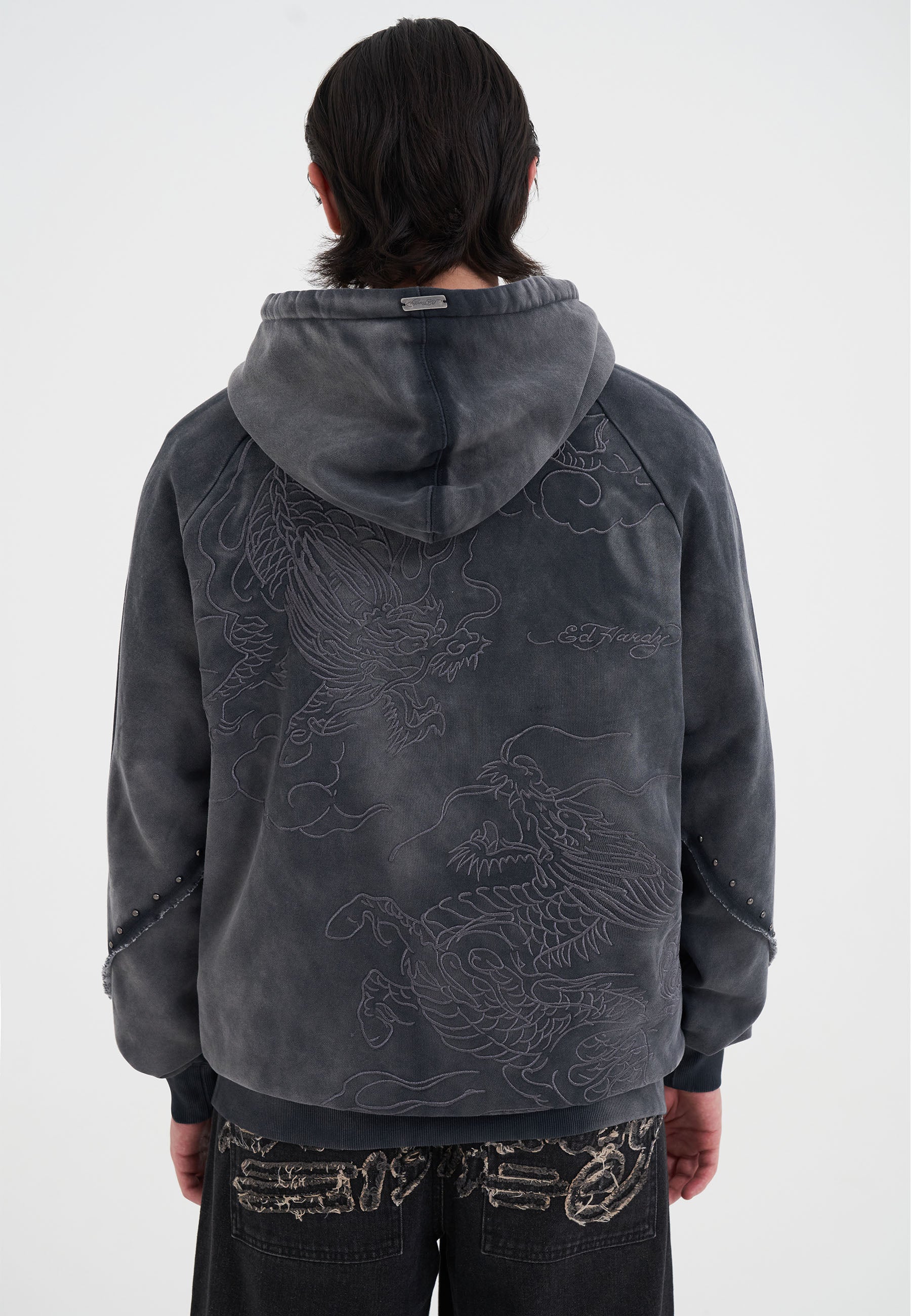 - Ed Hardy embroidery at chest