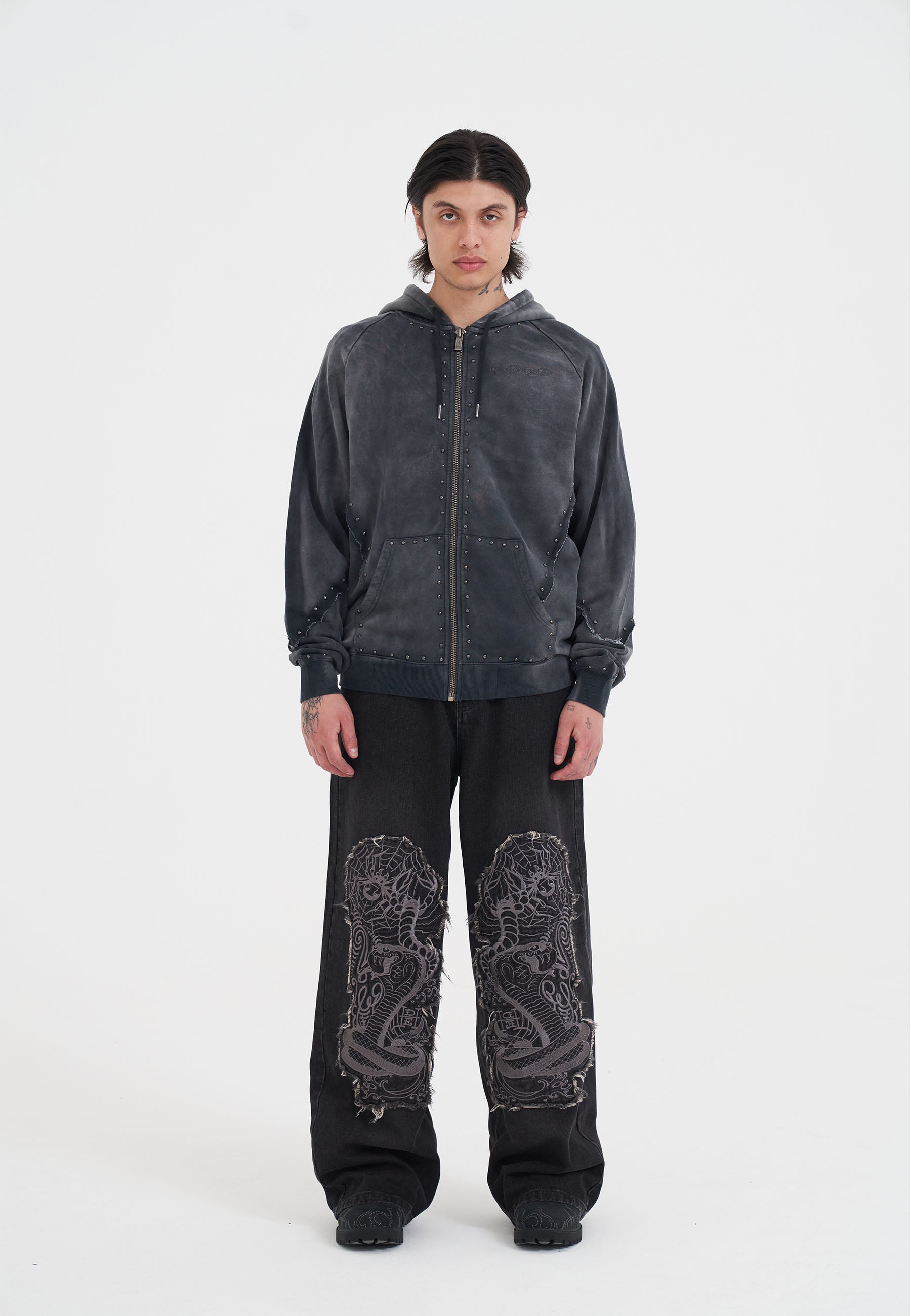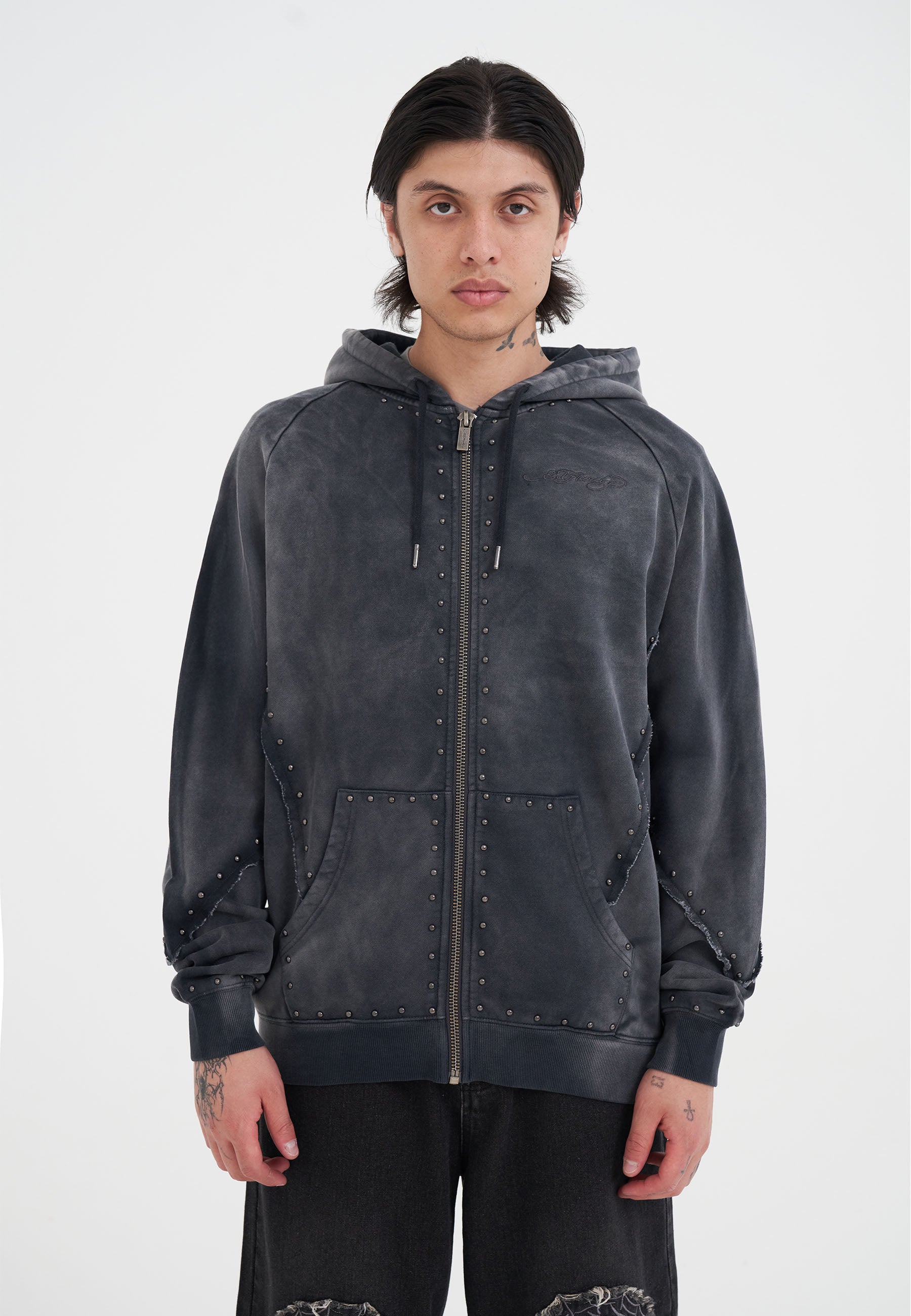 Mens Drag Battle Stud Zip Thru Hoodie in Black