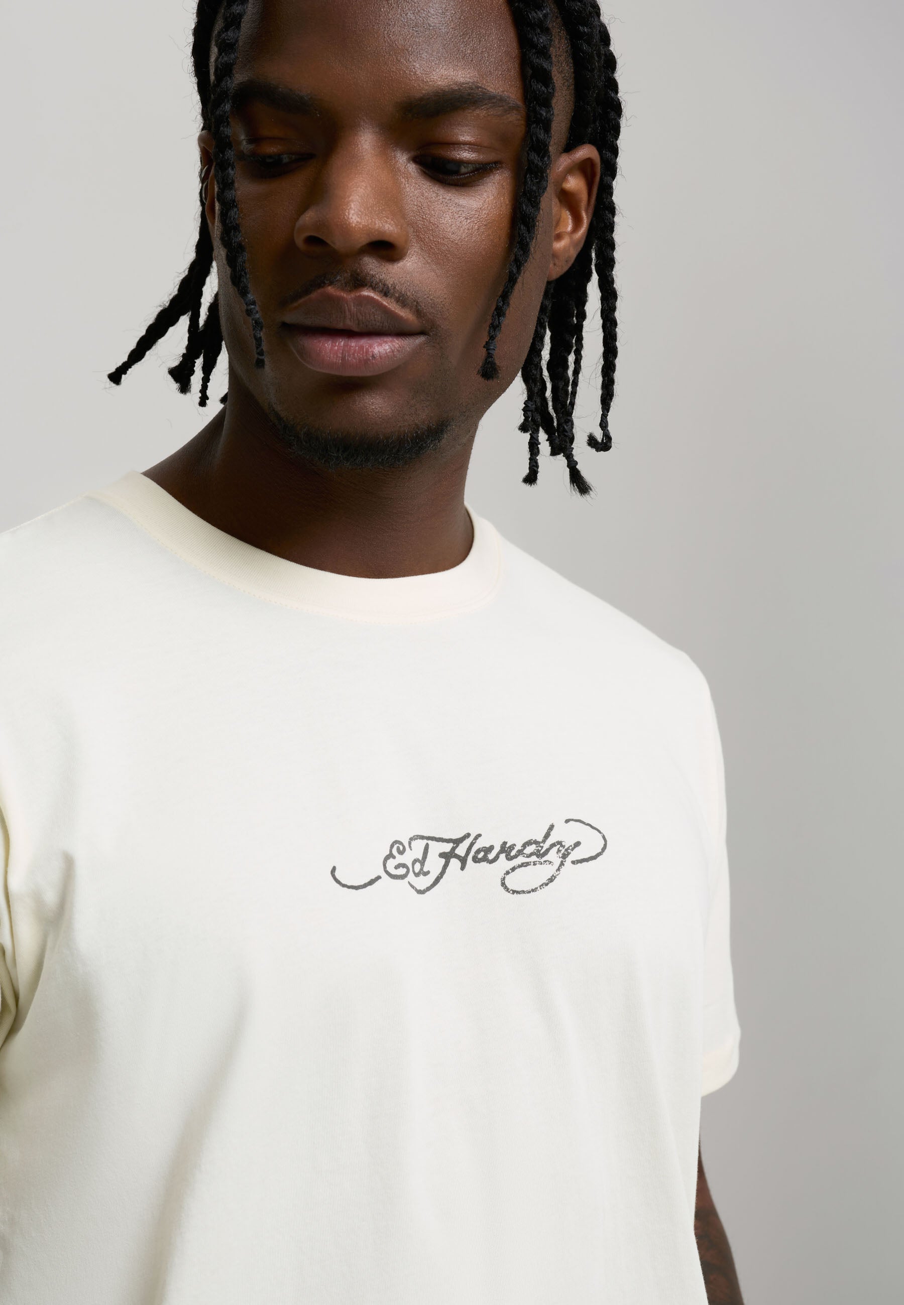 Mens Dragon Panther Graphic Regular T-Shirt - Ecru