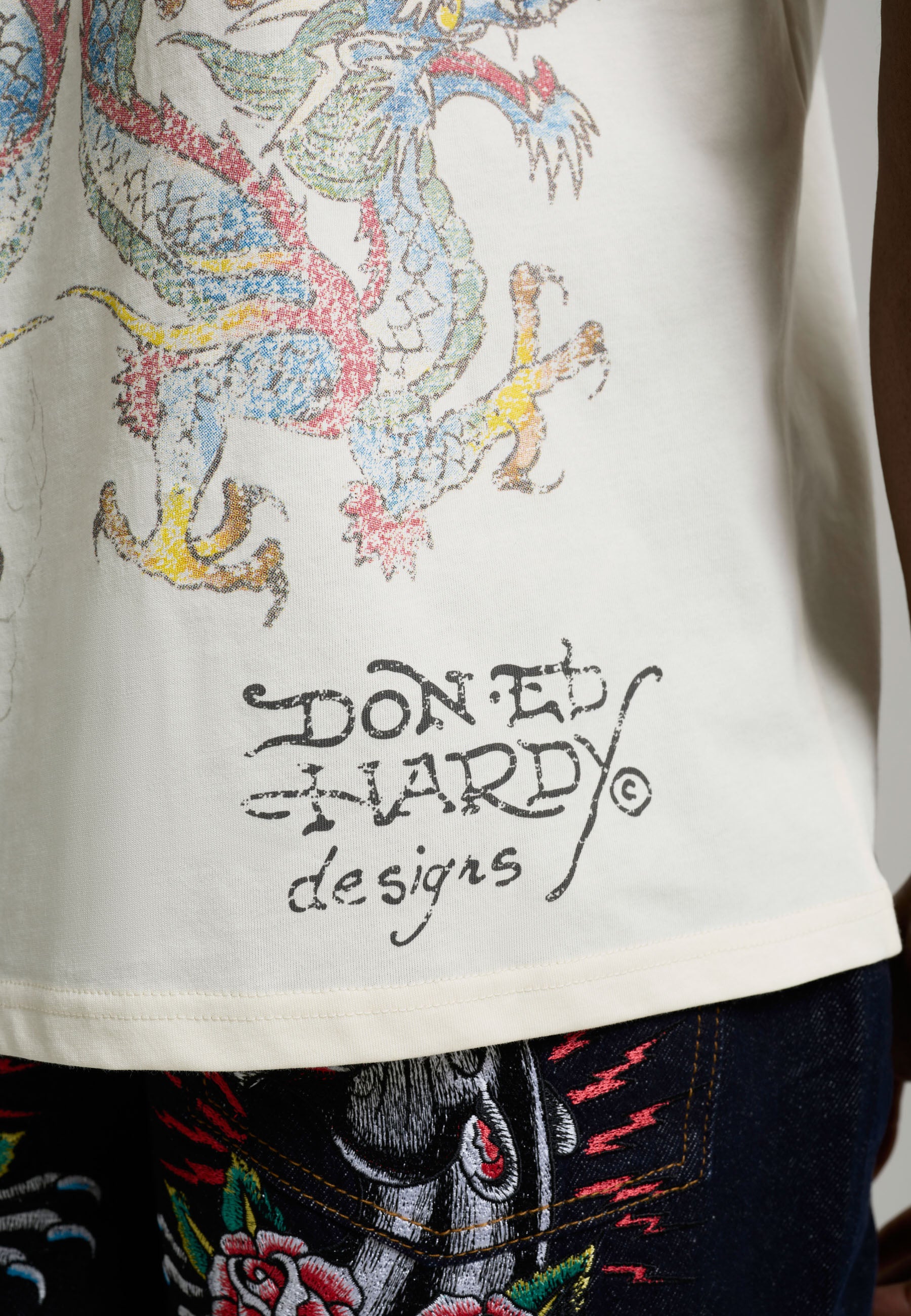 Mens Dragon Panther Graphic Regular T-Shirt in Ecru