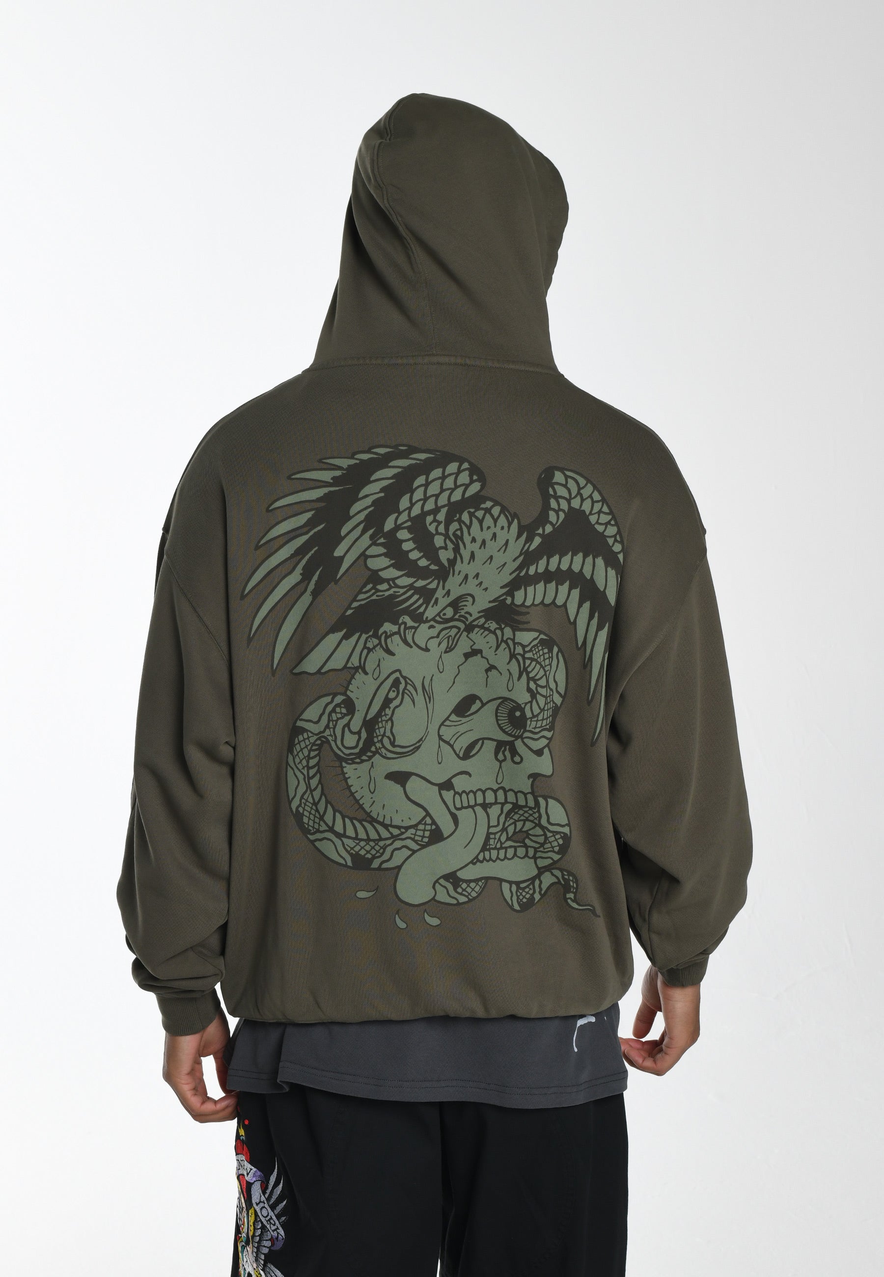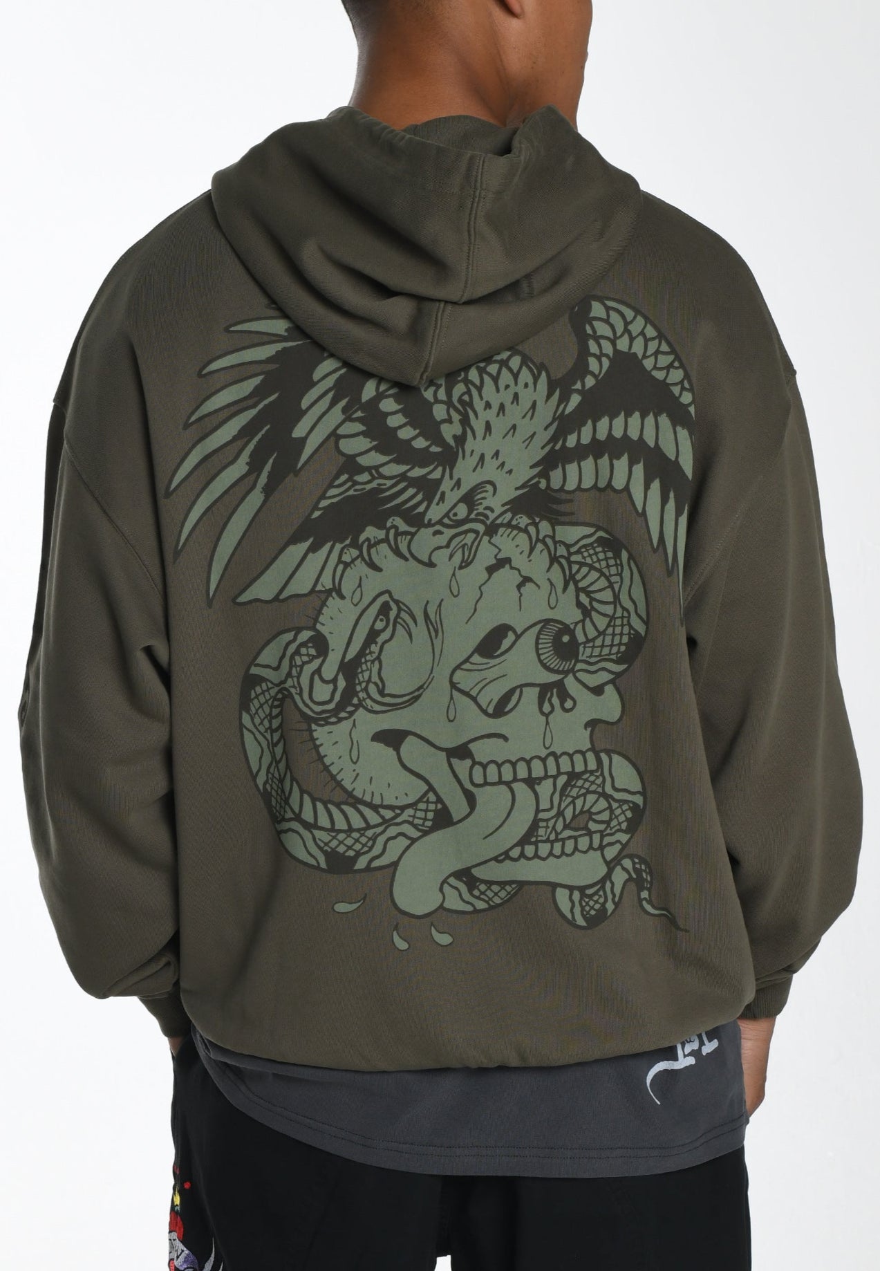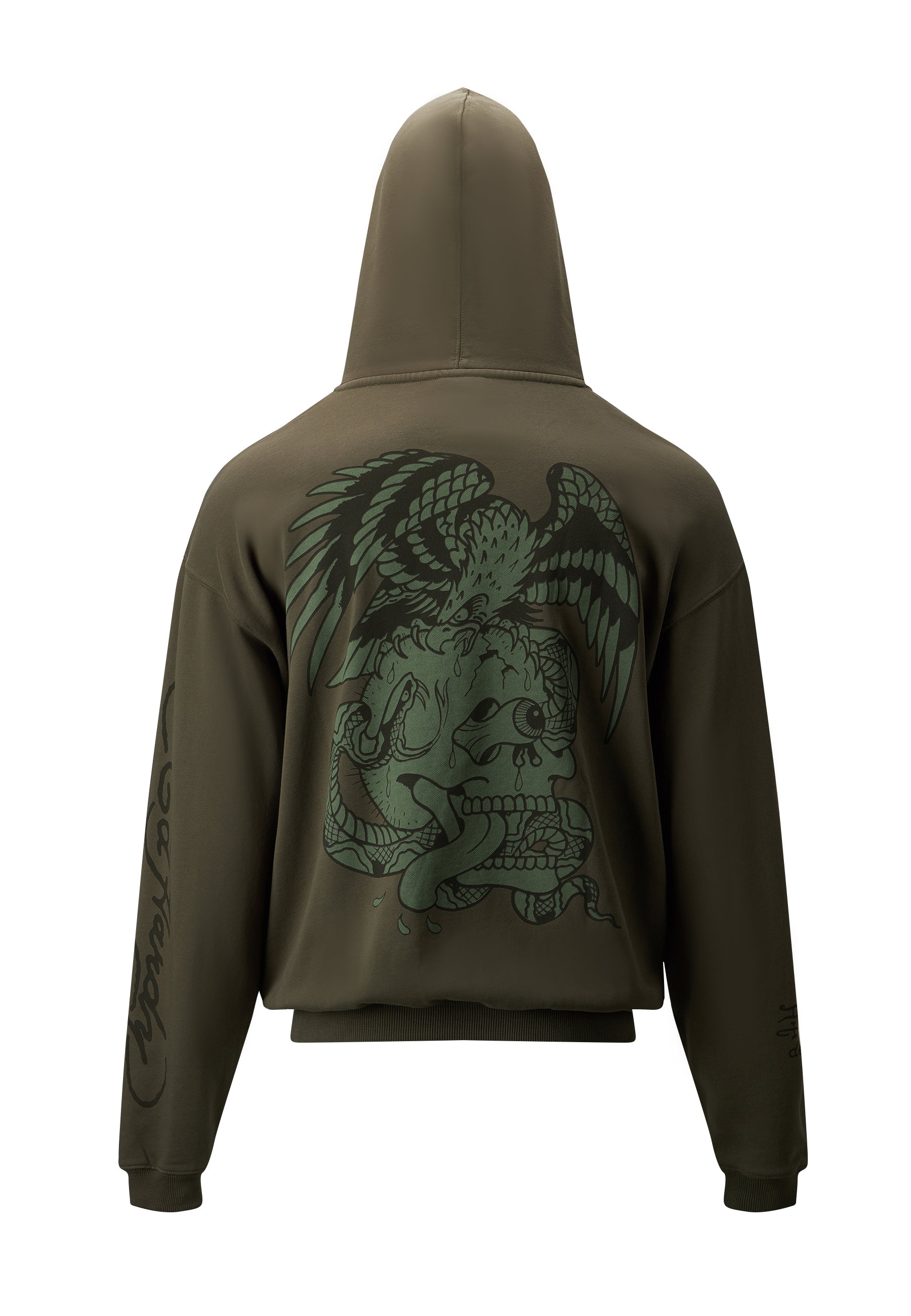 A new-season essential, The Eye Ball Hoodie offers superior comfort in 100% cotton, featuring a faded-green skull graphic on the back and a subtle Ed Hardy monogram on the chest.