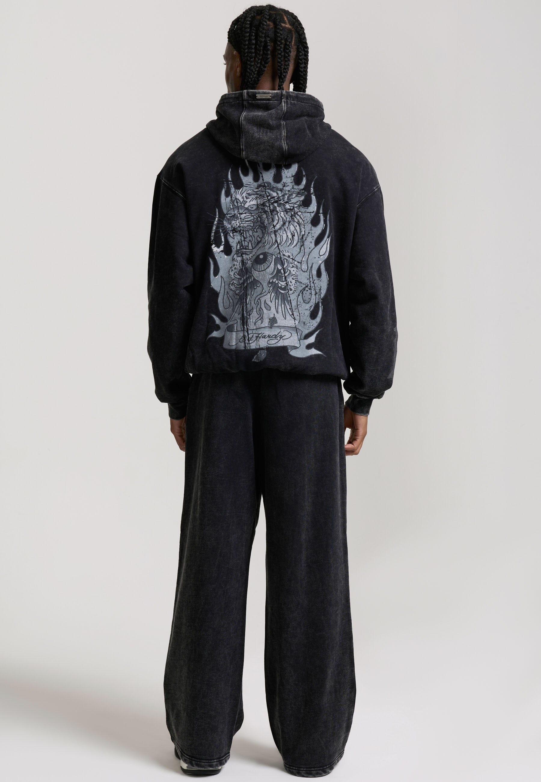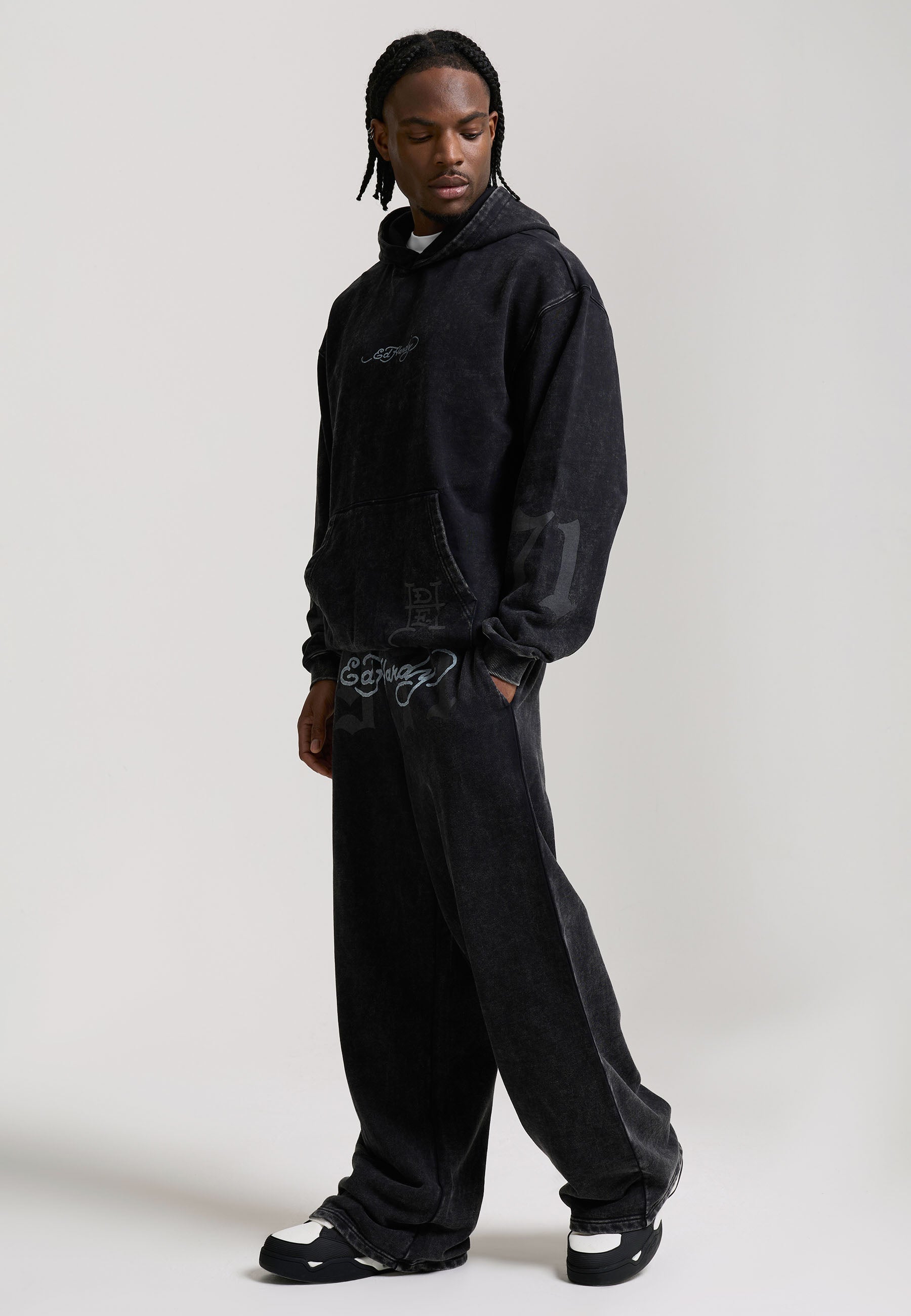 Mens Flaming 1971 Relaxed Washed Straight Leg Joggers - Black