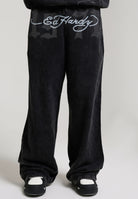 Mens Flaming 1971 Relaxed Washed Straight Leg Jogger in Black