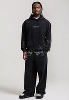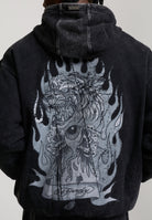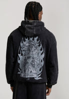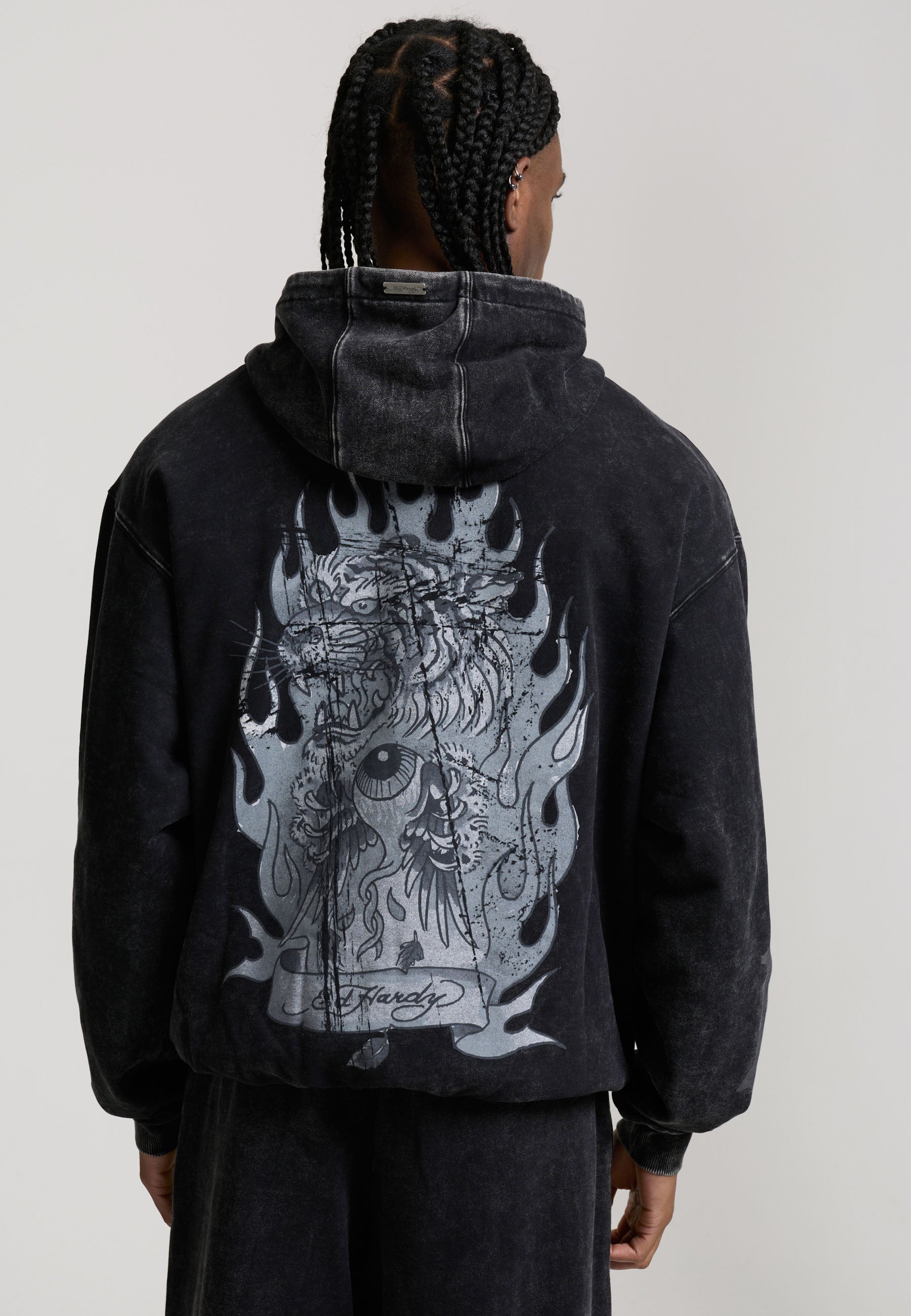 Mens Flaming Tiger Relaxed Hoodie in Black