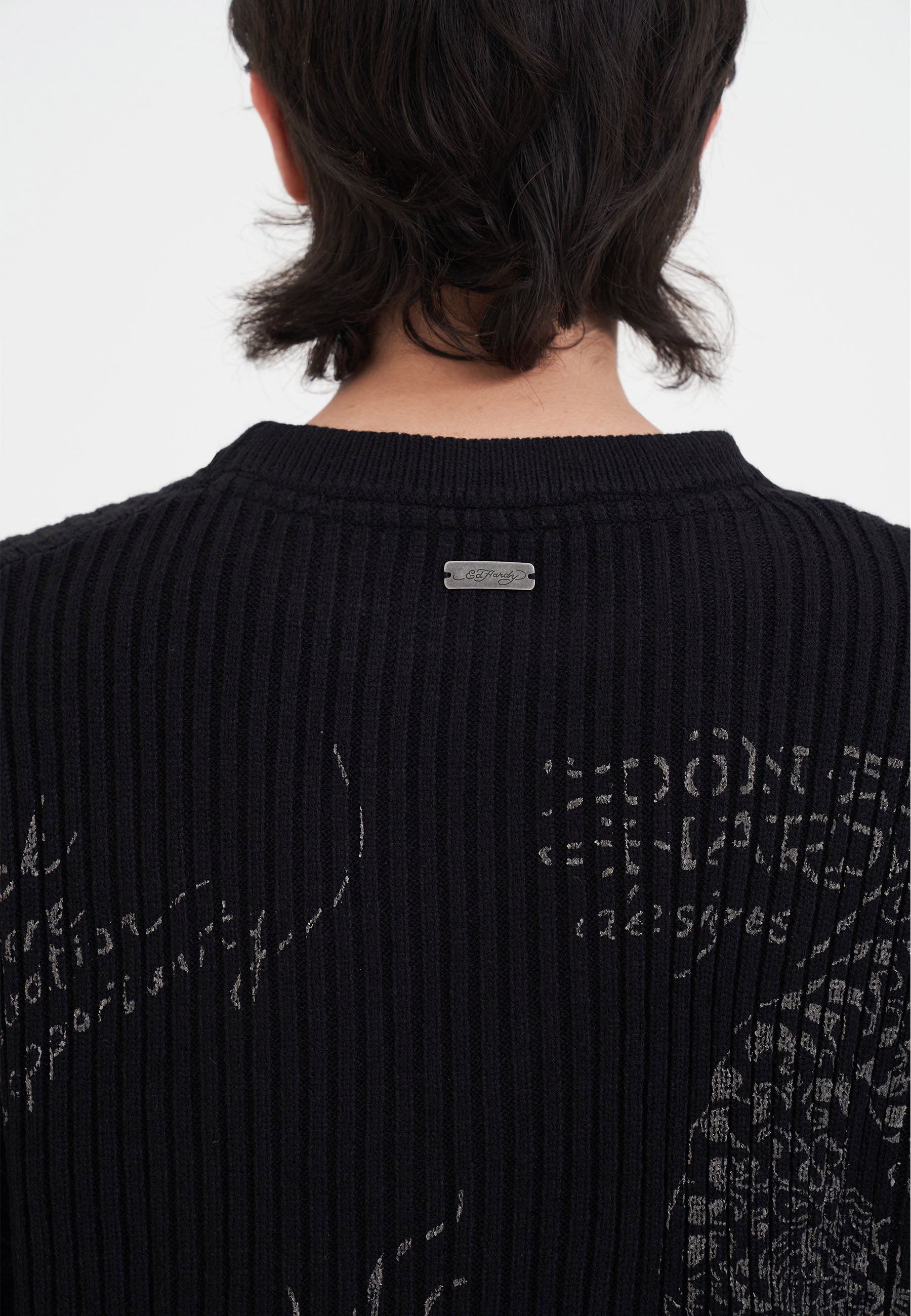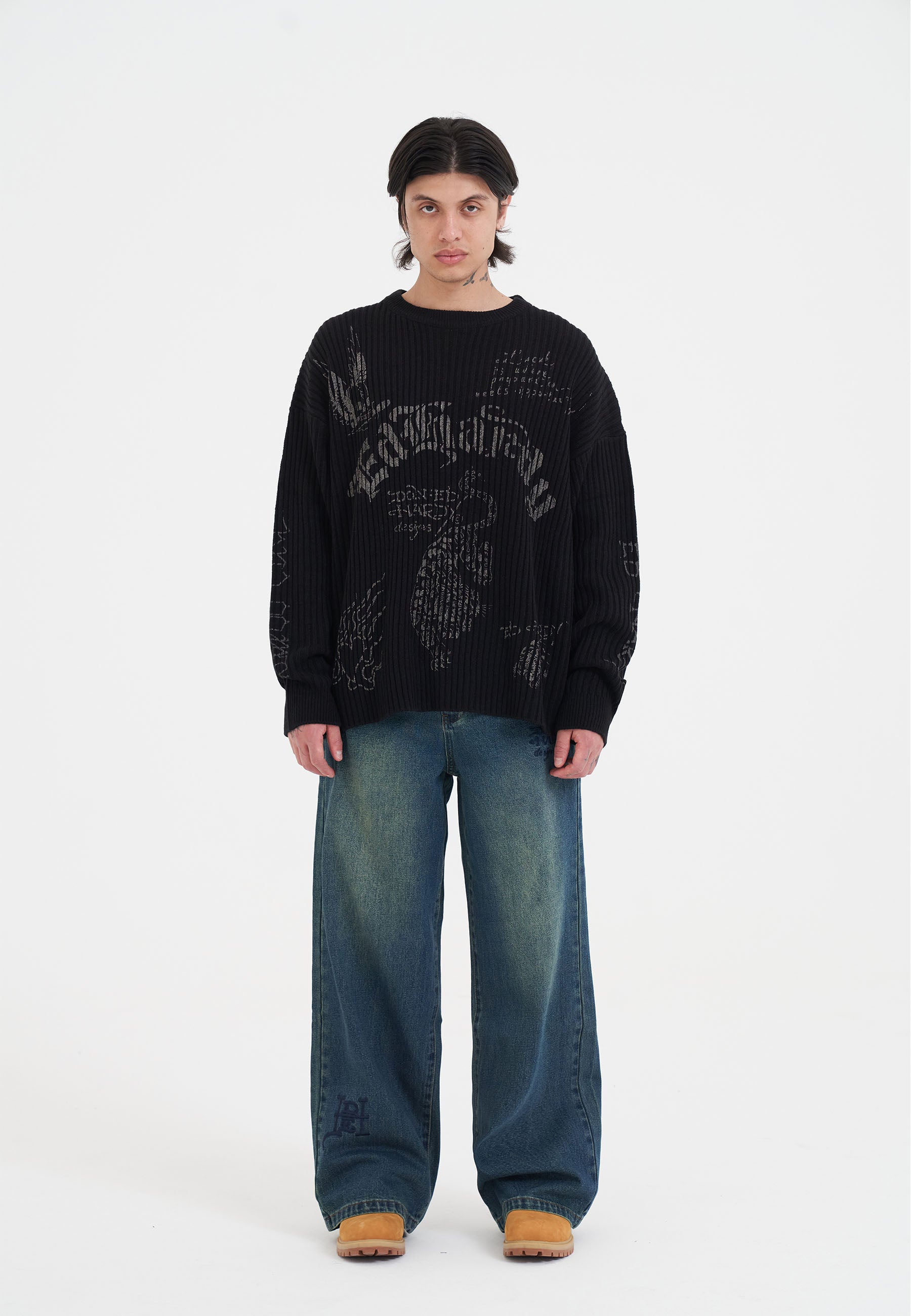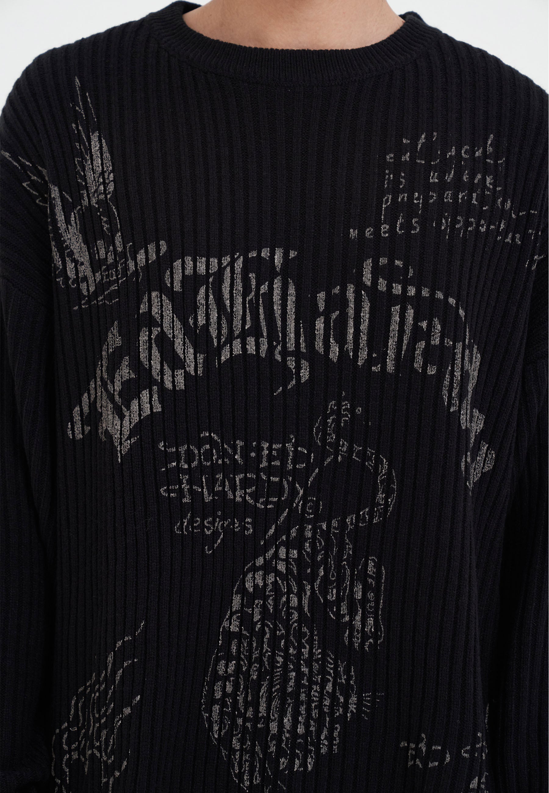MENS GOTHIC RIBBED KNIT CREW JUMPER in Black
