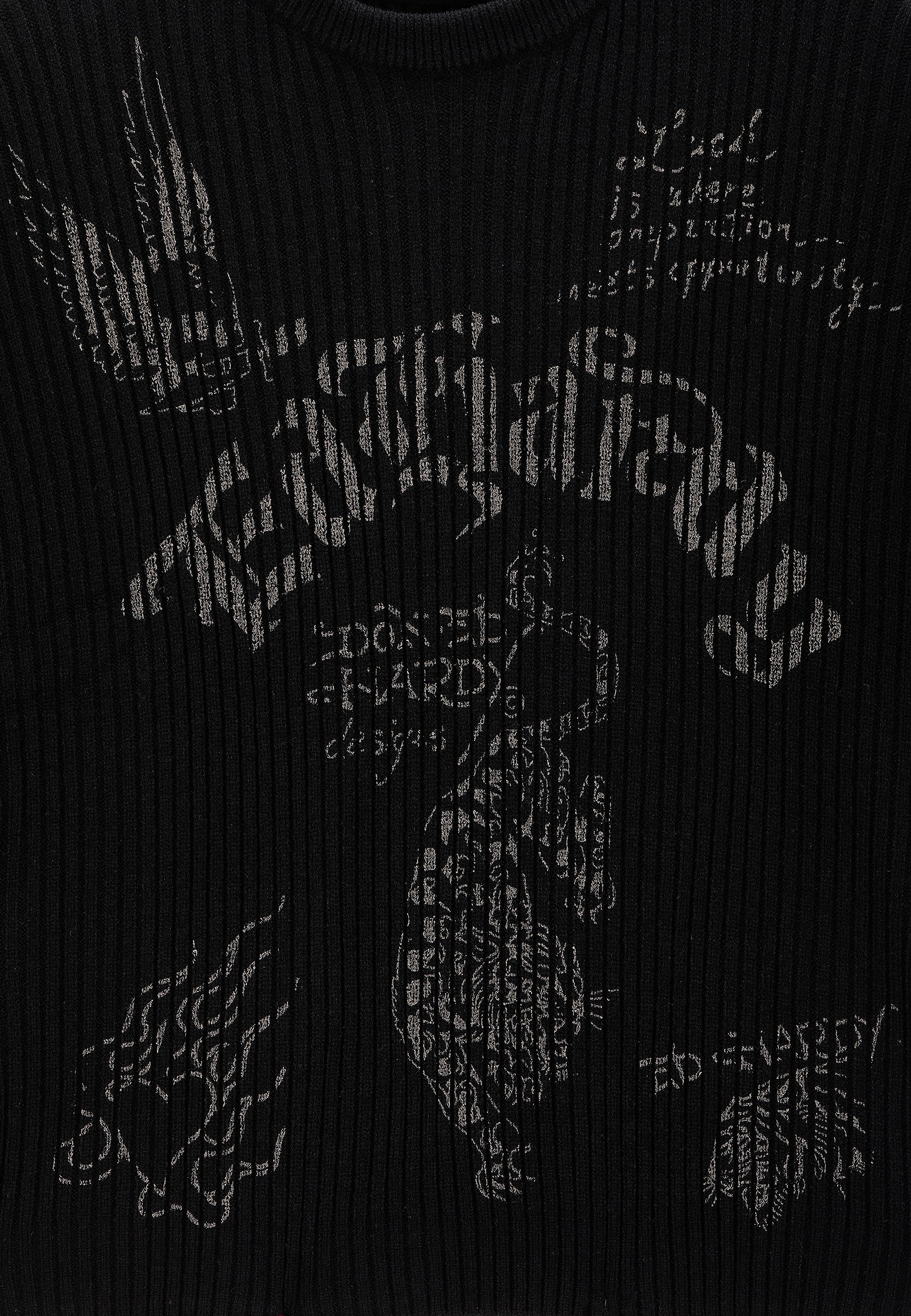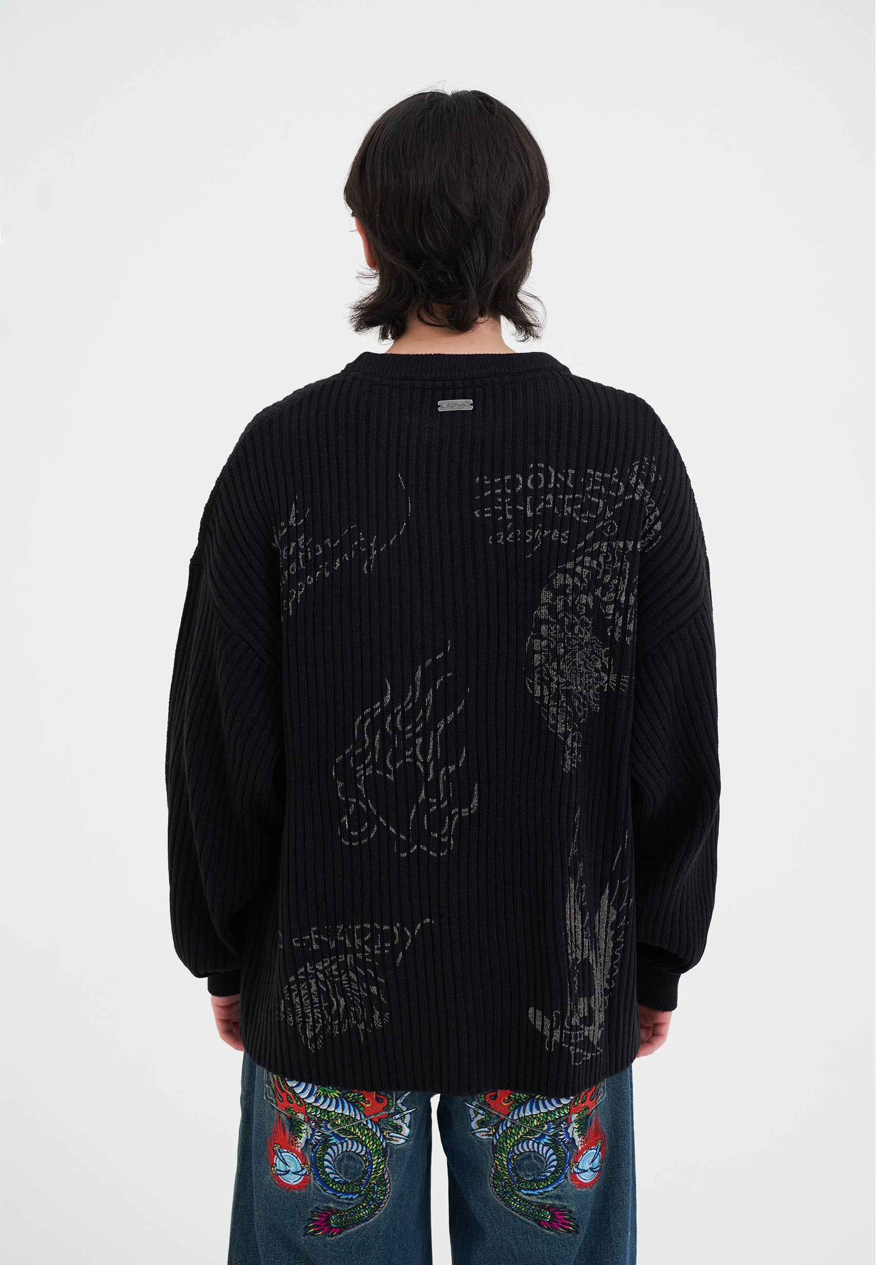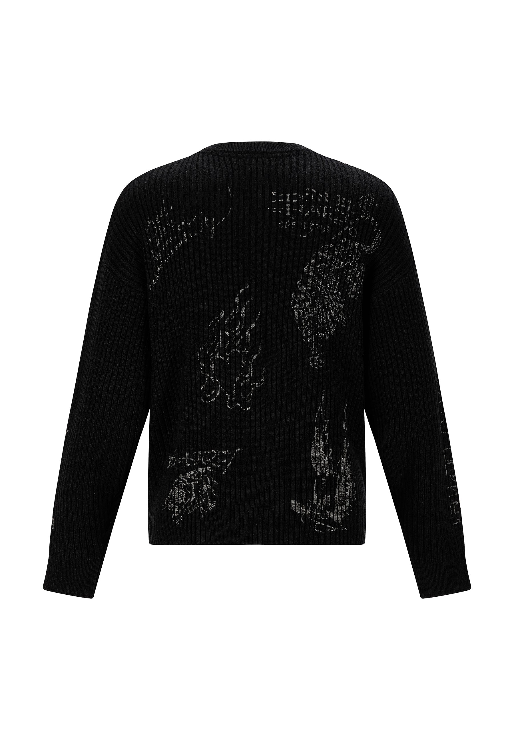 MENS GOTHIC RIBBED KNIT CREW JUMPER in Black