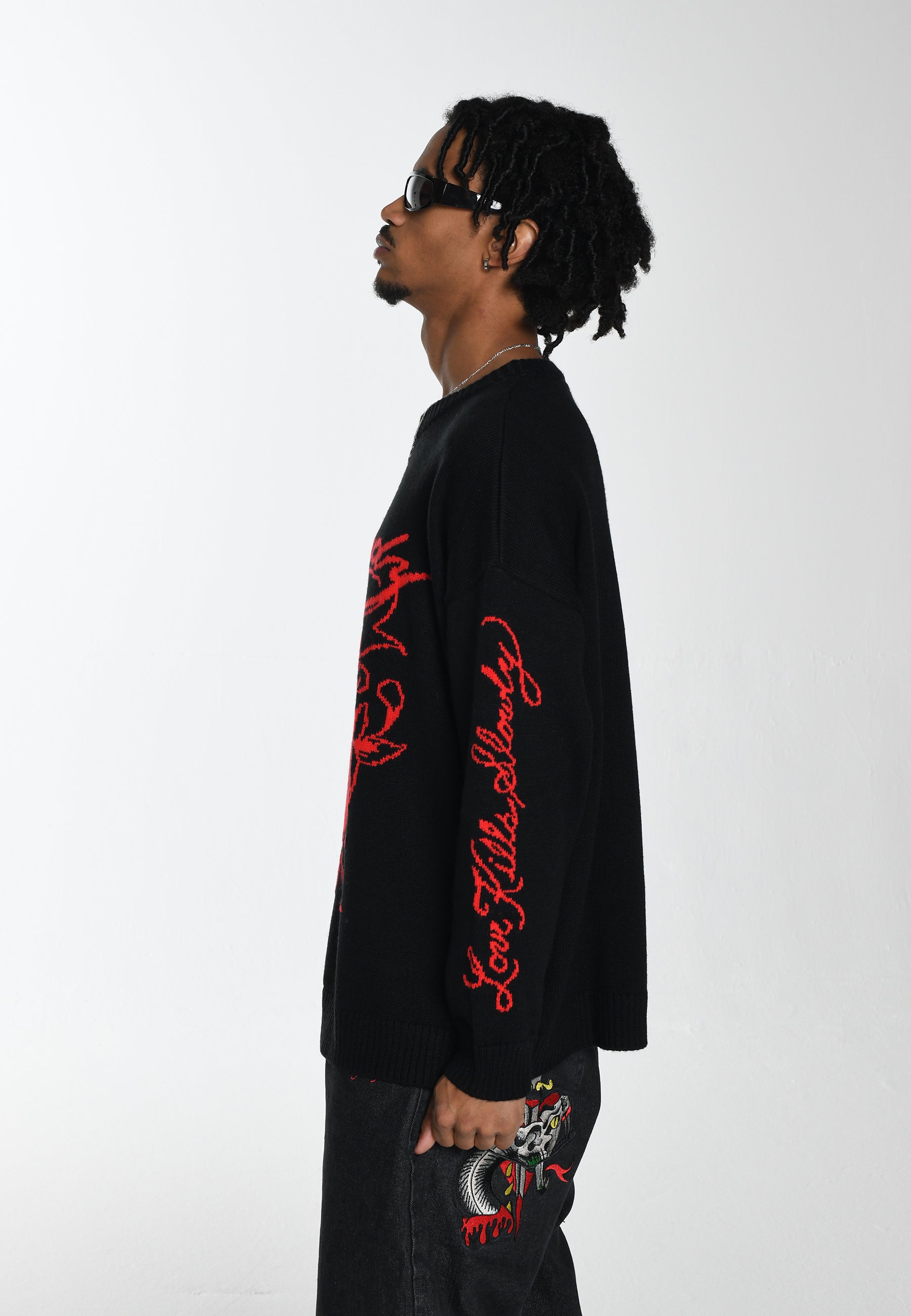 Mens Love Kill La Jaquard Knitted Jumper - Black