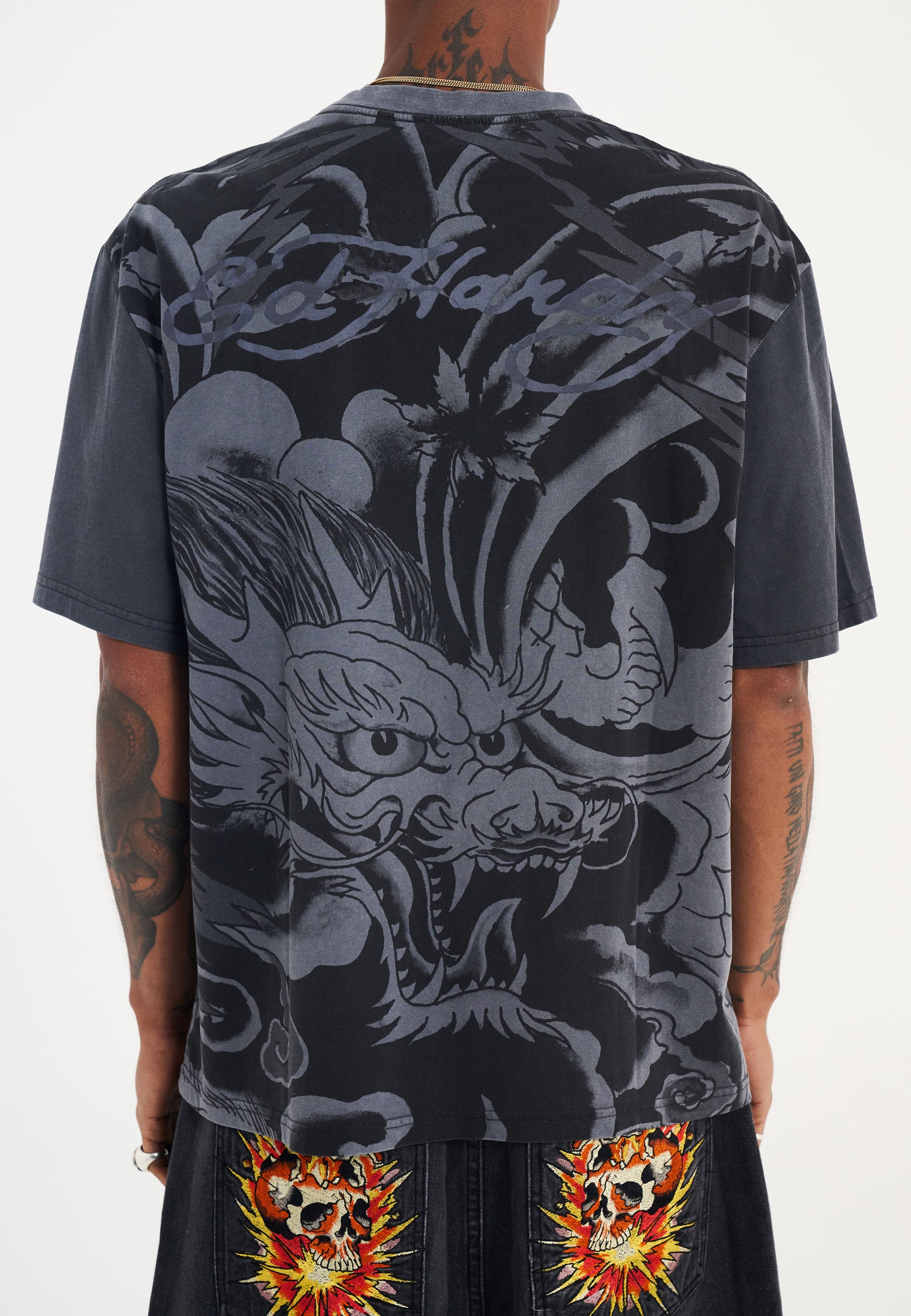 Defined by its all-over tonal photographic print, this tee features Ed's contrast signature on the back and a tonal E.D.H logo on the front, making it unmistakably Ed Hardy.