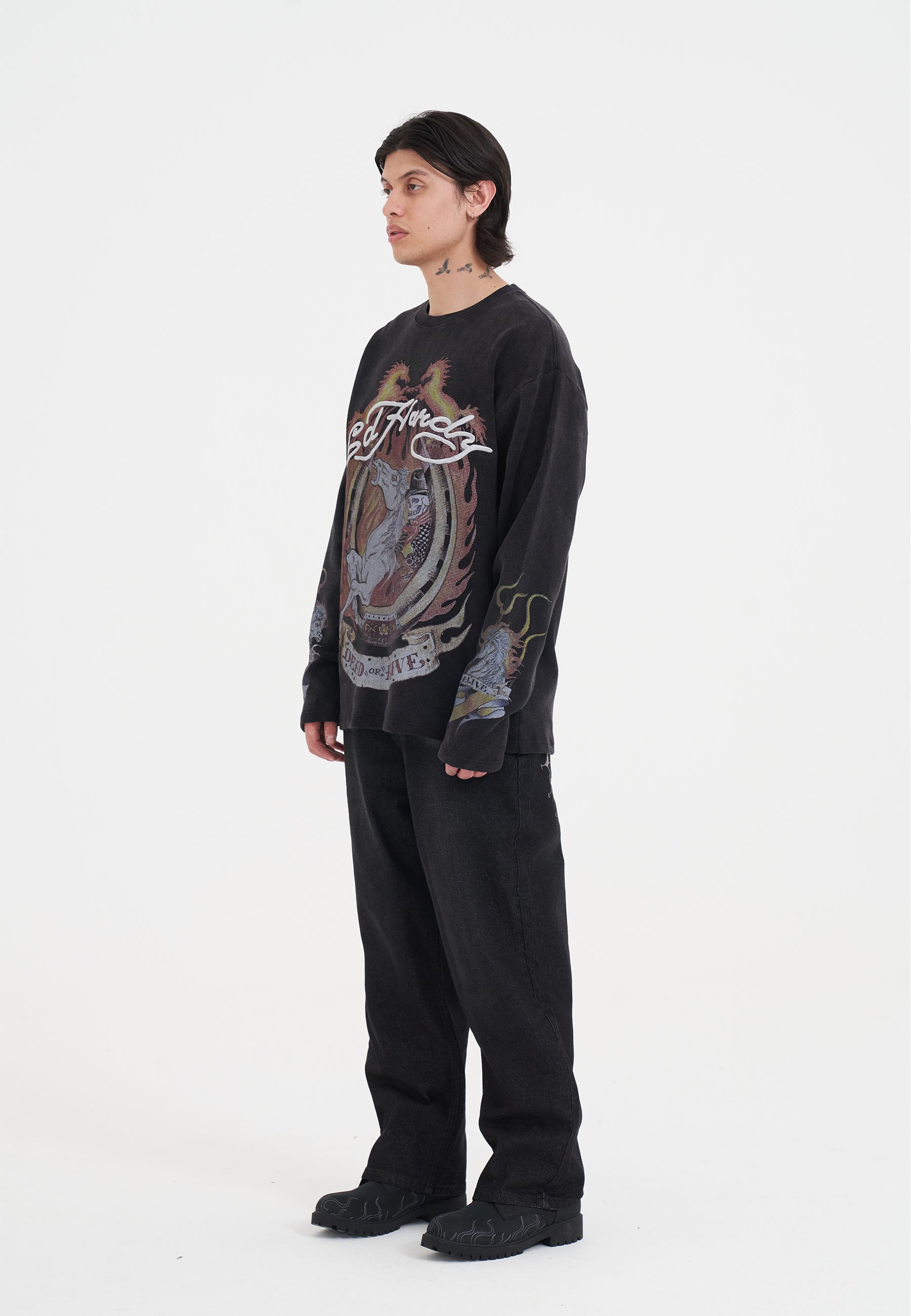 - ED HARDY EMBROIDERY AND FADED GRAPHIC AT CENTRE FRONT