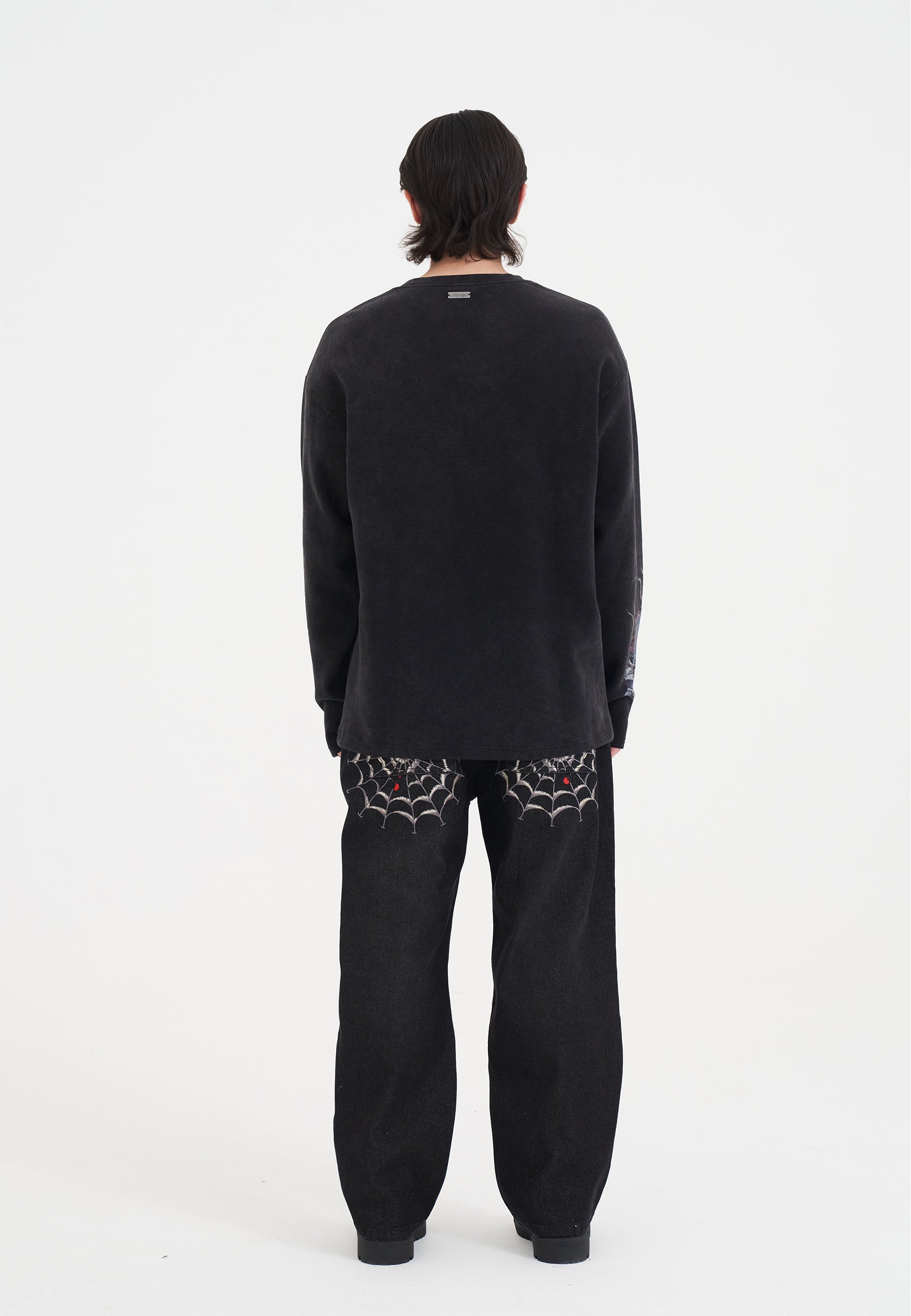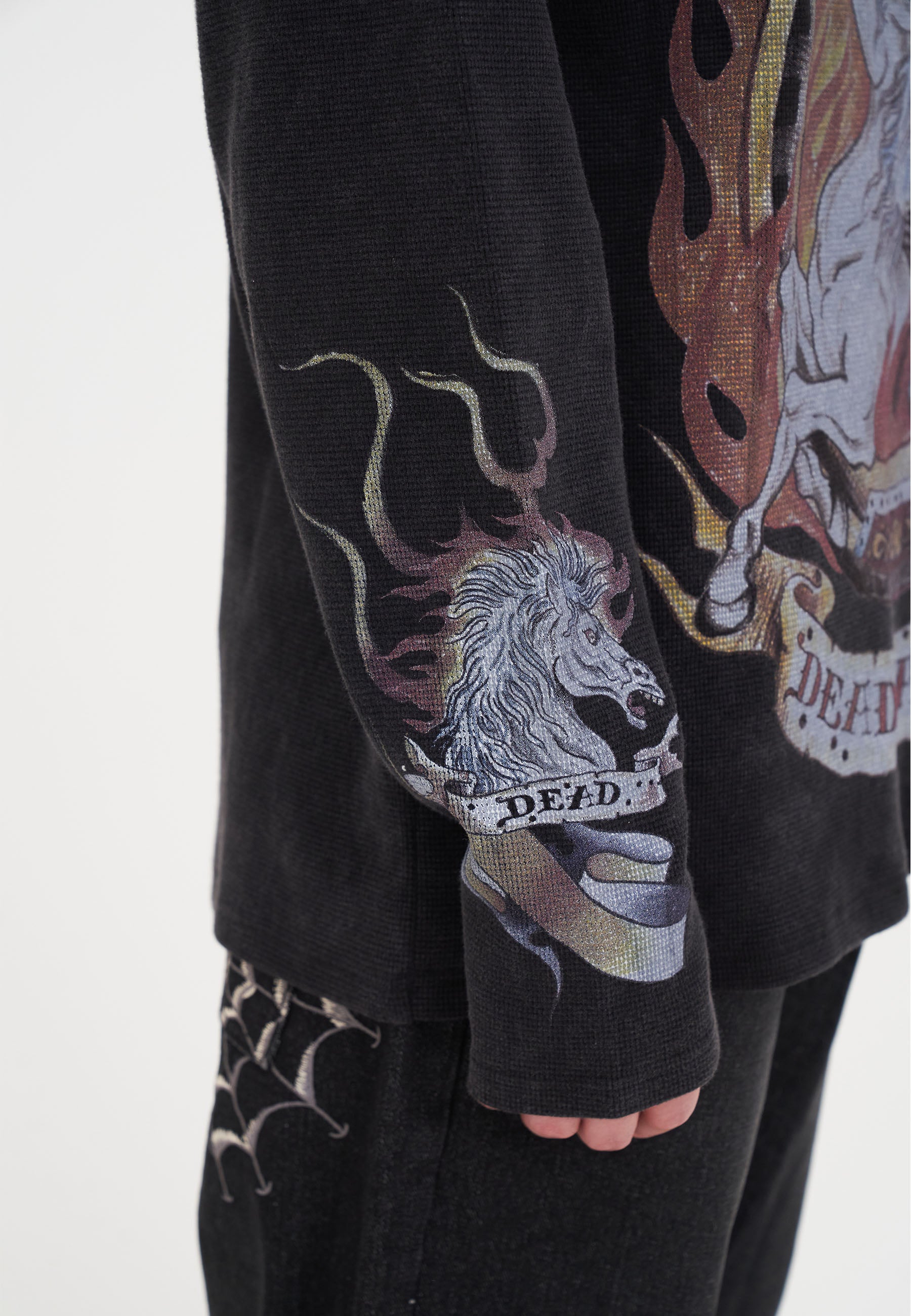 MENS RIDE INTO HELL WAFFLE LONG SLEEVE T-SHIRT in Black