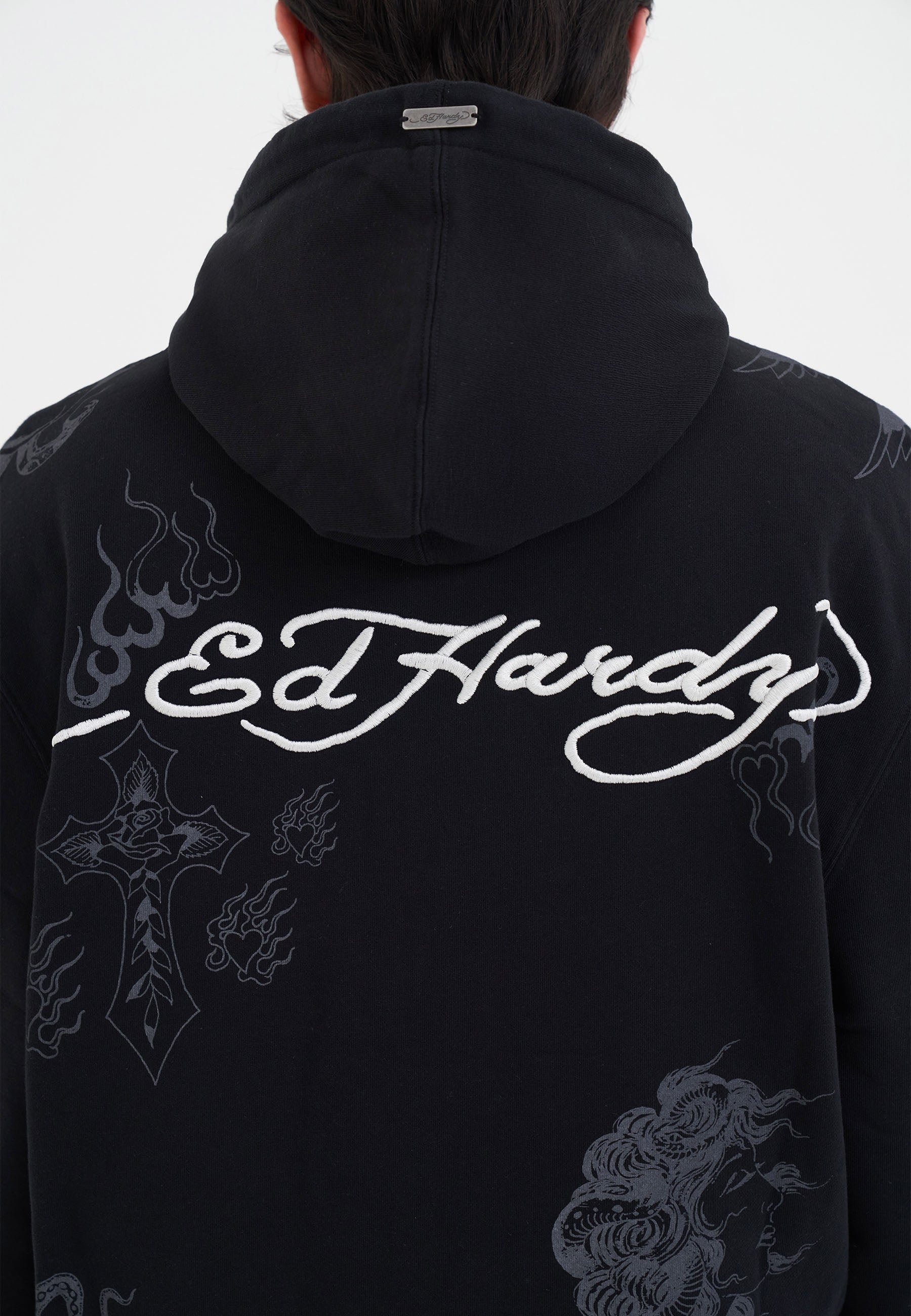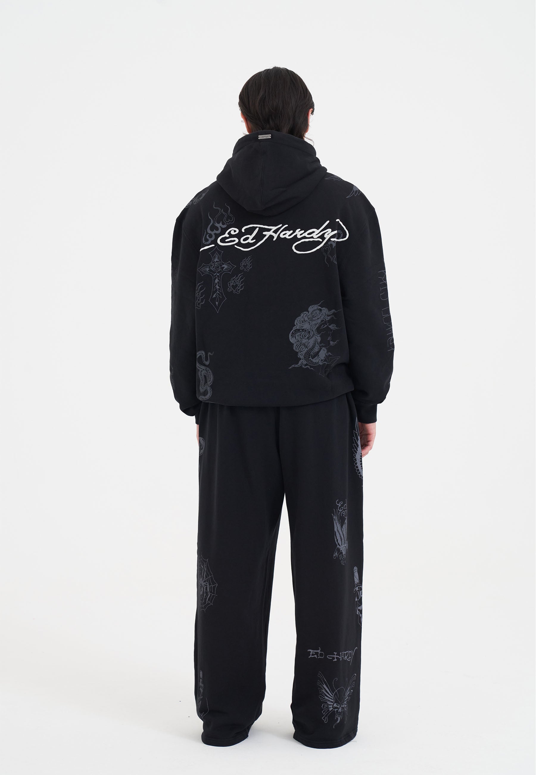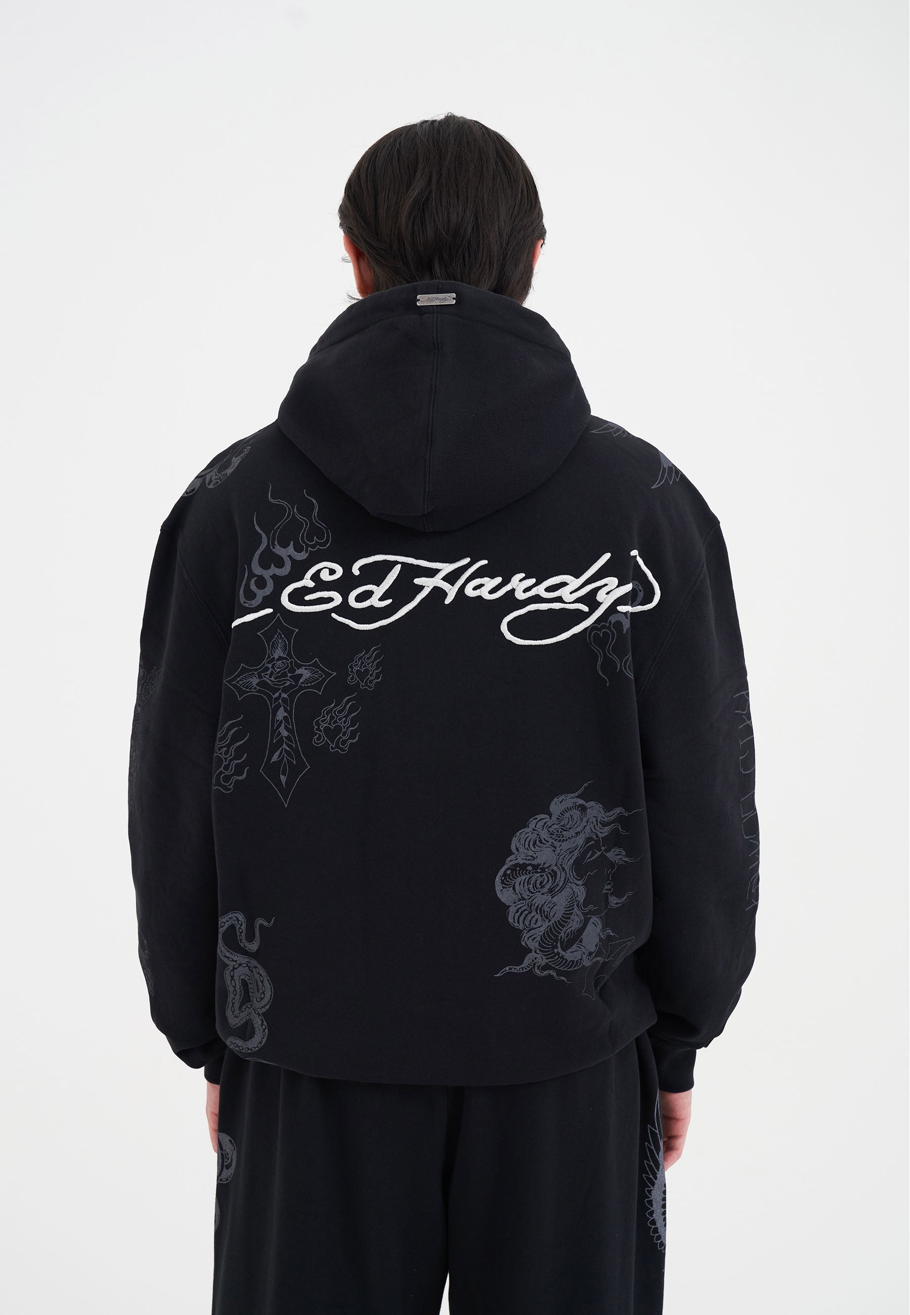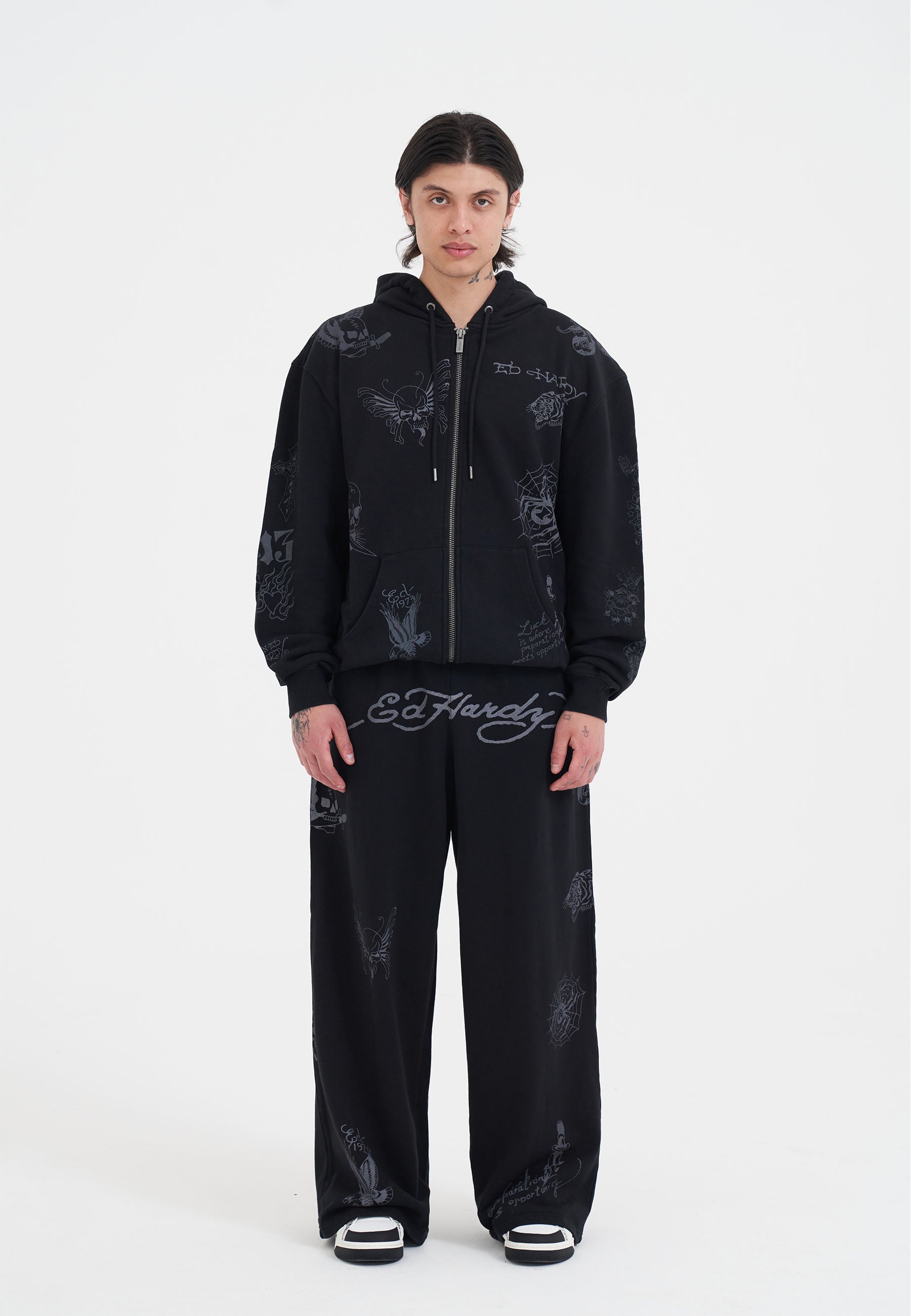 MENS TATTOO CLUB ZIP THRU HOODIE in Black