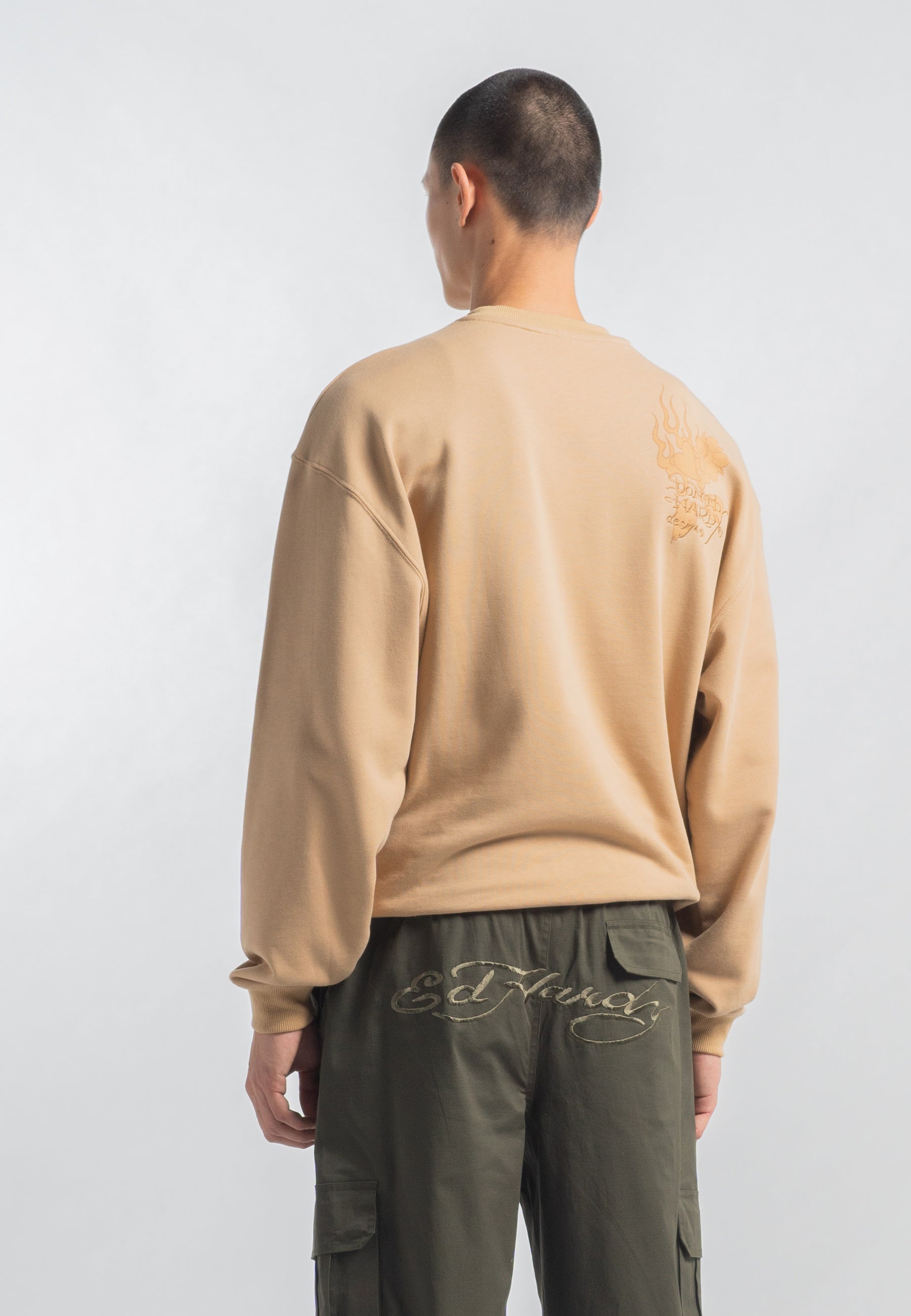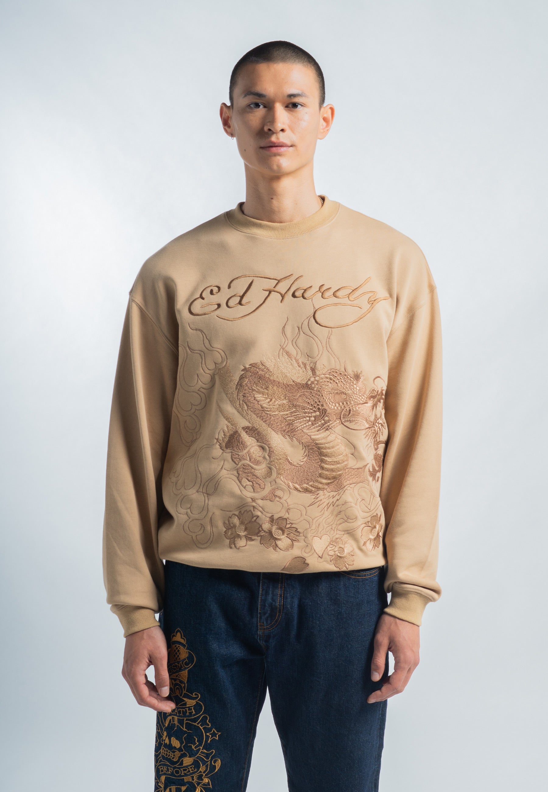 This jumper, featuring vintage-inspired tonal embroidery, pays homage to Ed Hardy's iconic designs.