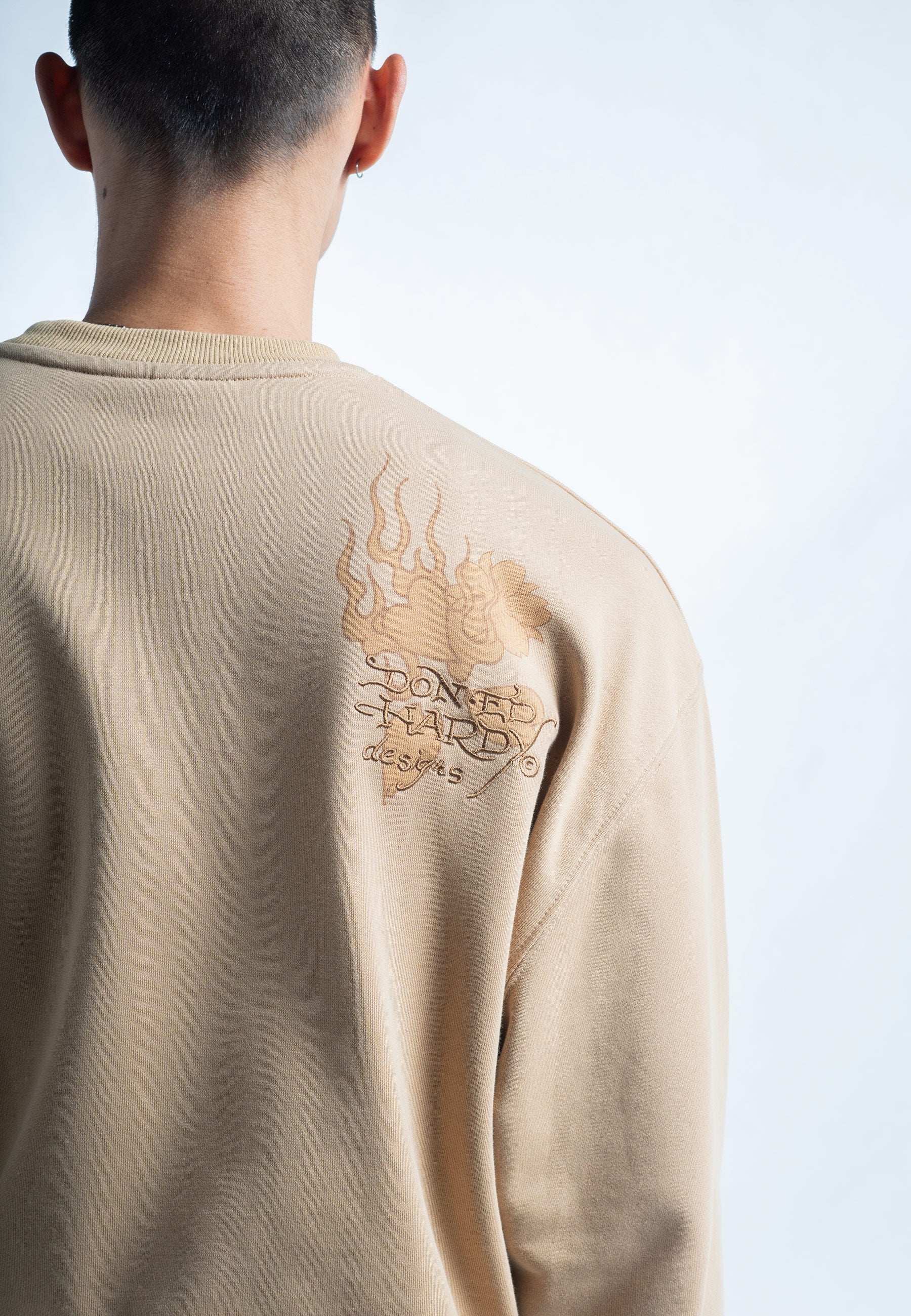 Mens Vintage-Drag-Logo Crew Neck Jumper - Beige